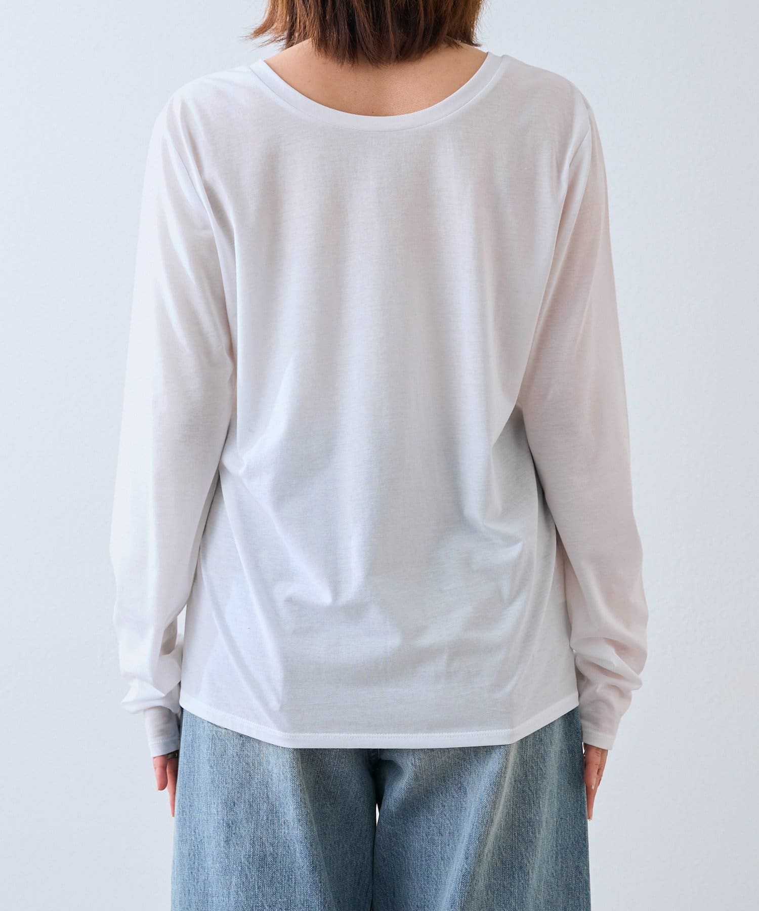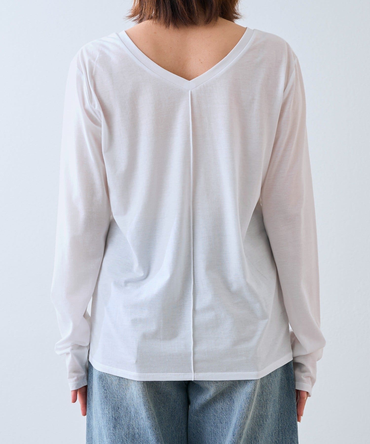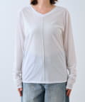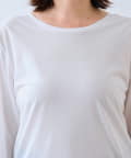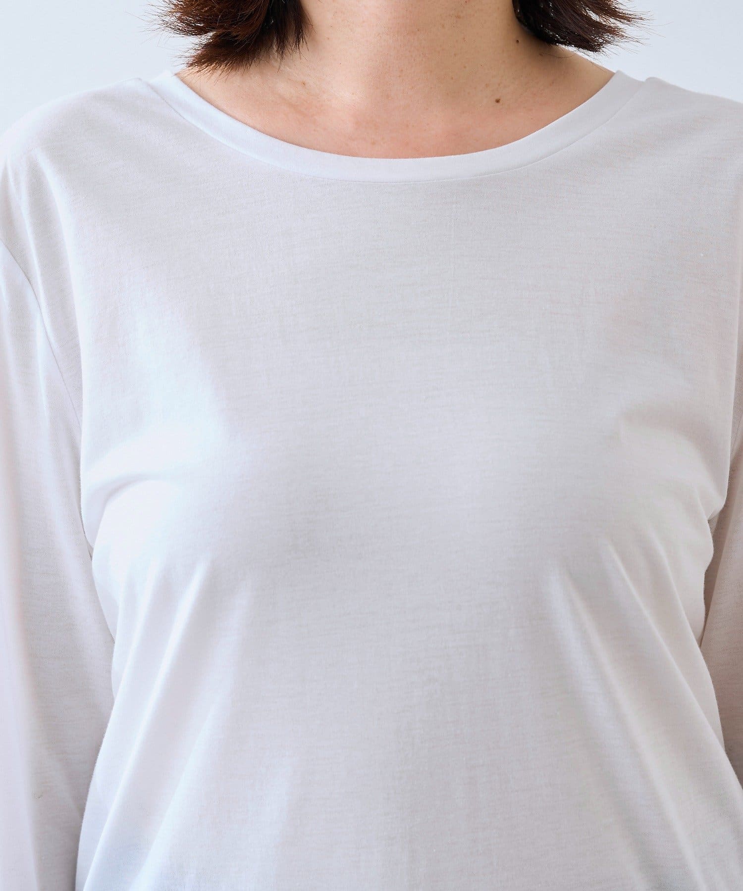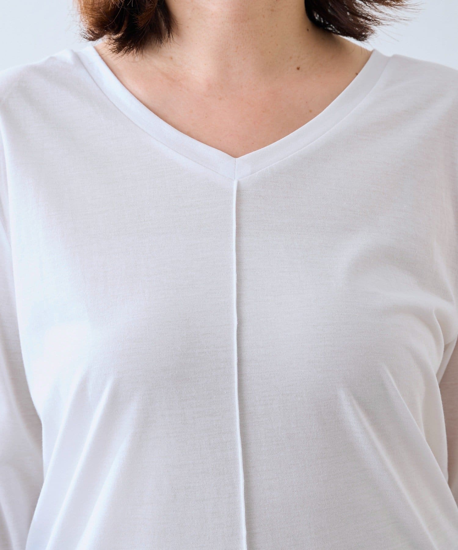 ・程よく横に抜けた衿ぐりでインナーとしてもお使いいただきやすいようにしています