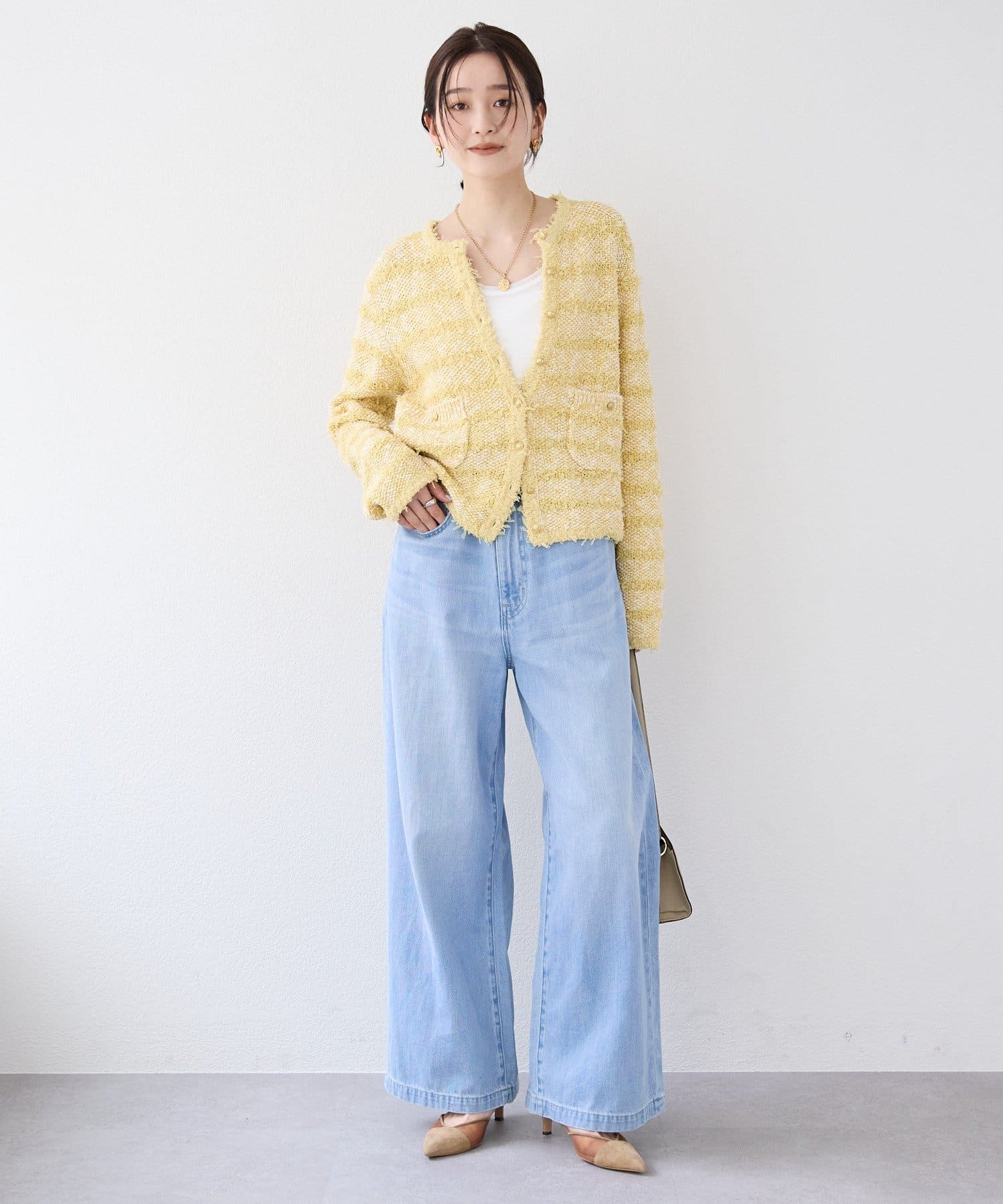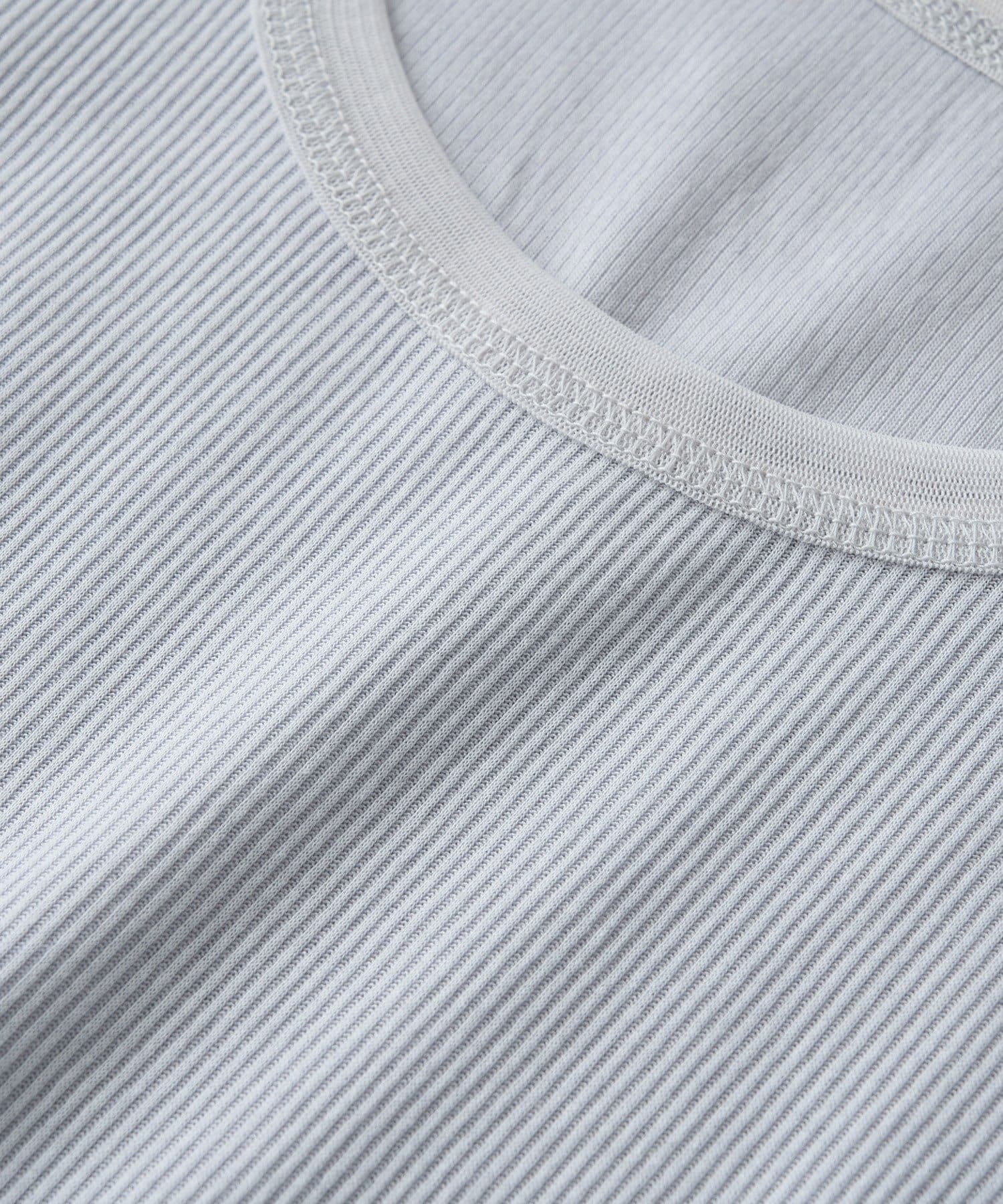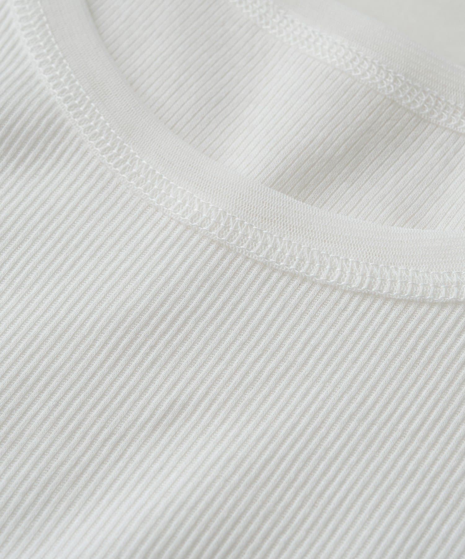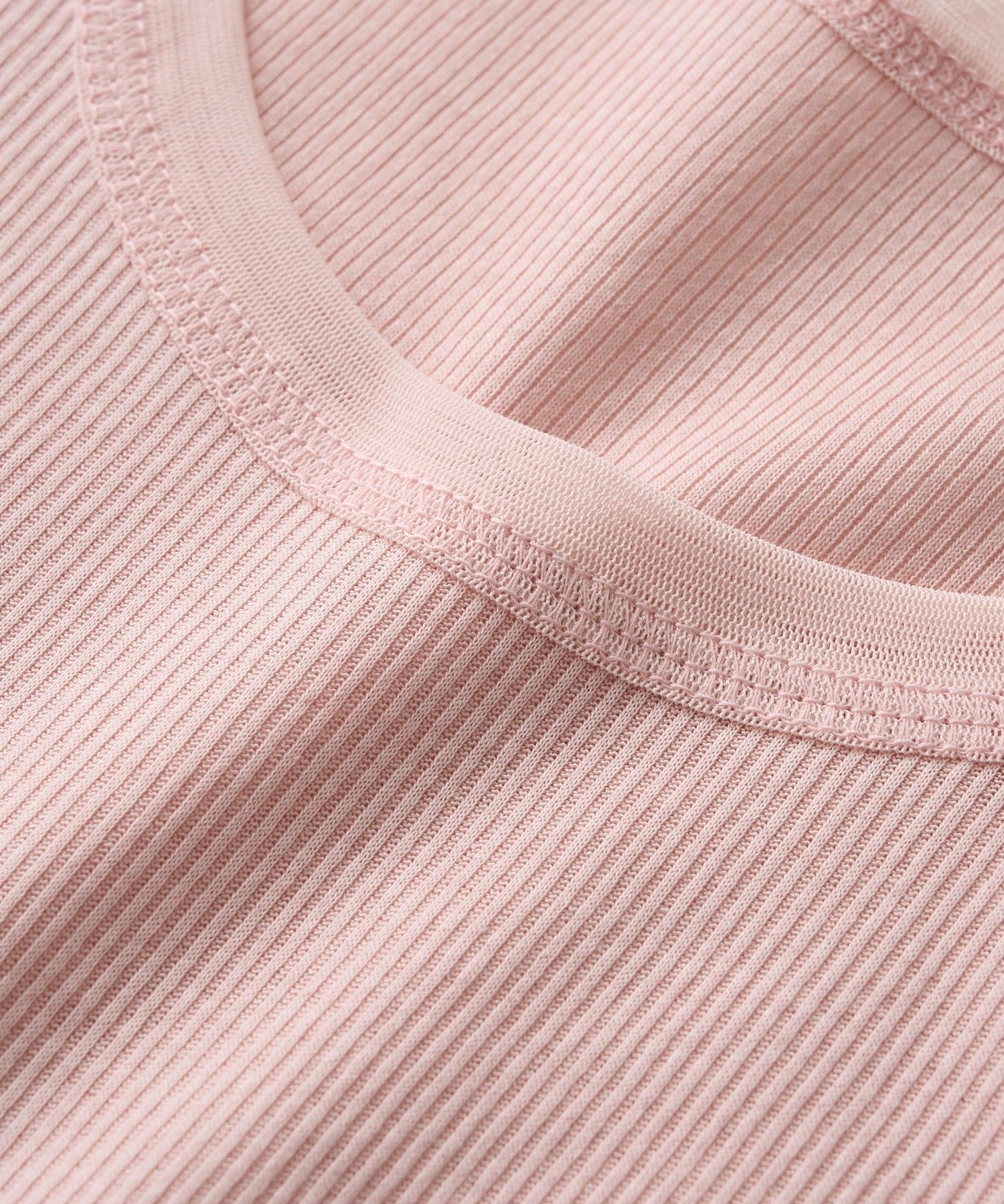 ・伸縮性のあるリブ素材と透明感のあるカラーリングがフェミニンなムードを演出します。