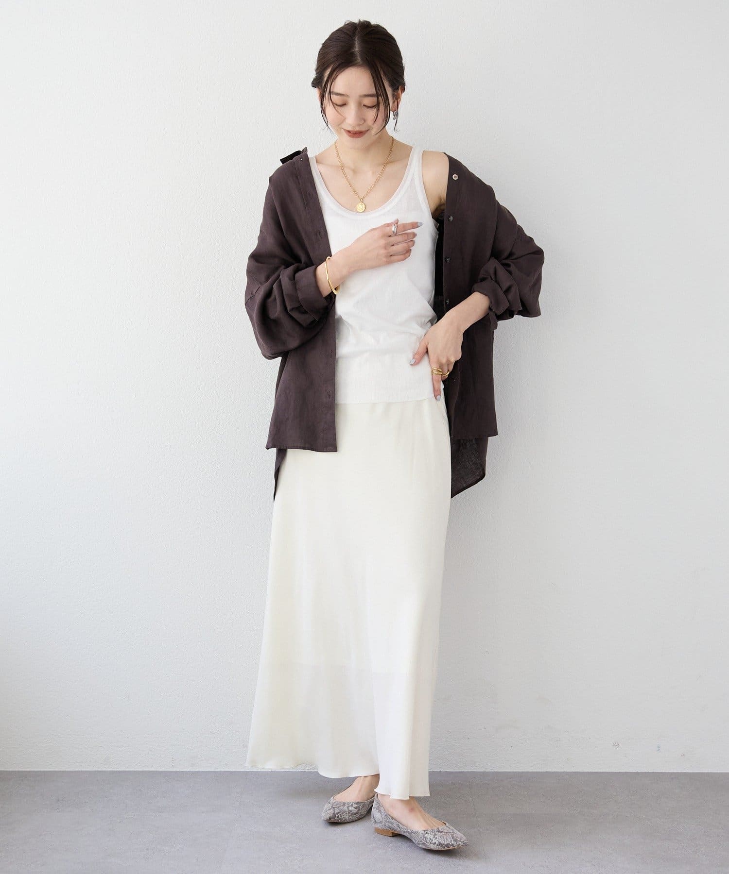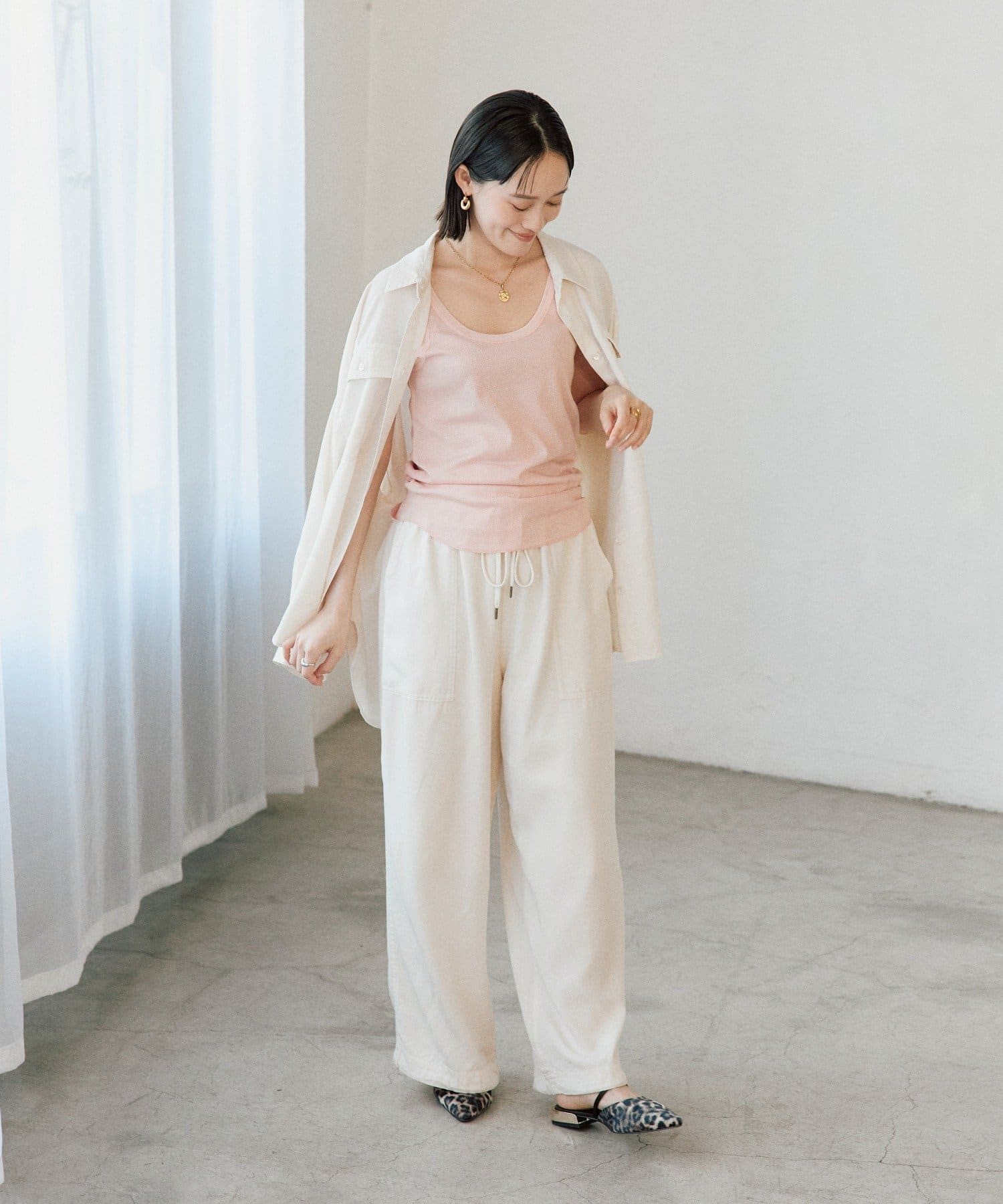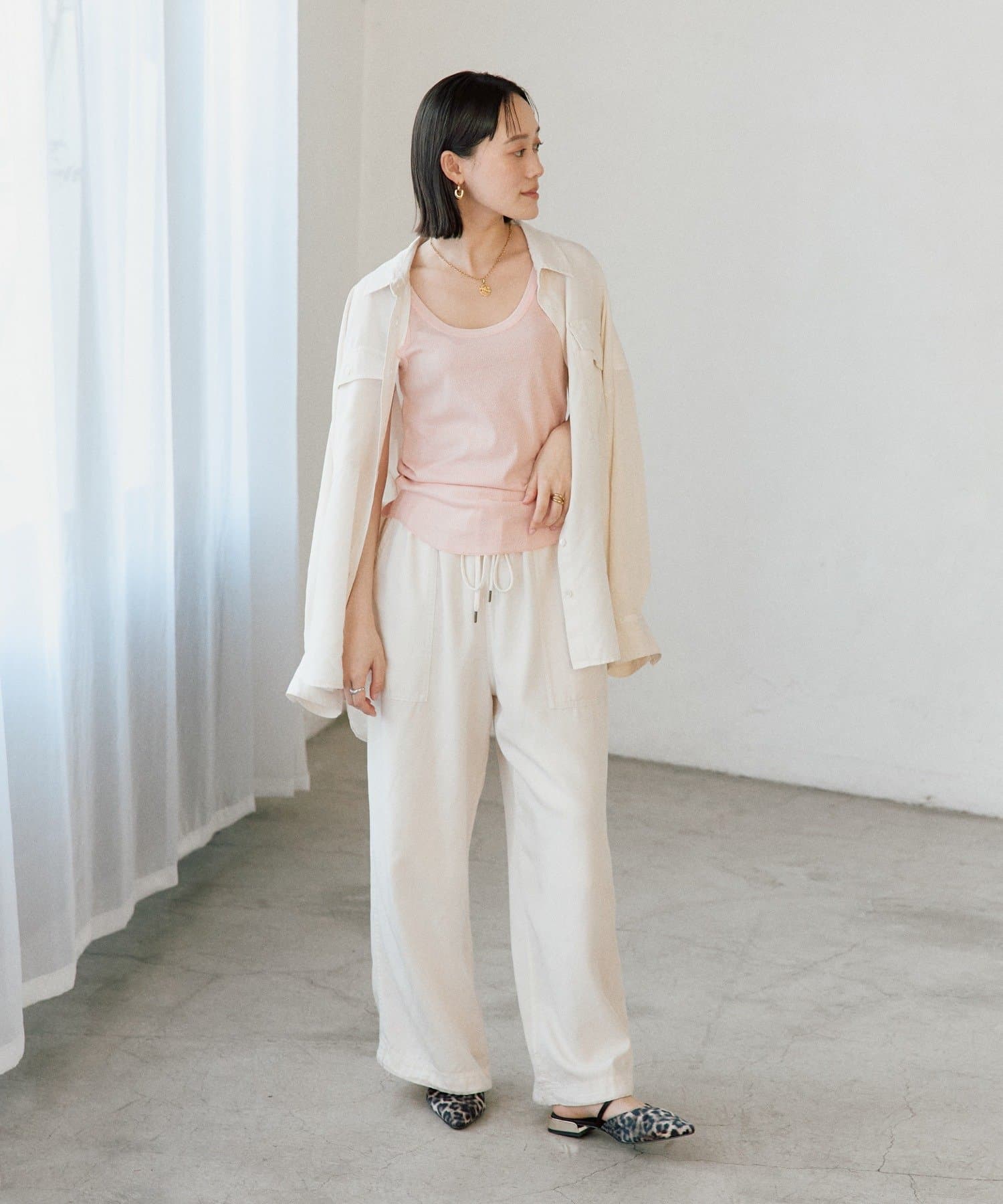 ・セルロース混のクリアな素材感が上品で、ジャケットのインナーにもおすすめです。