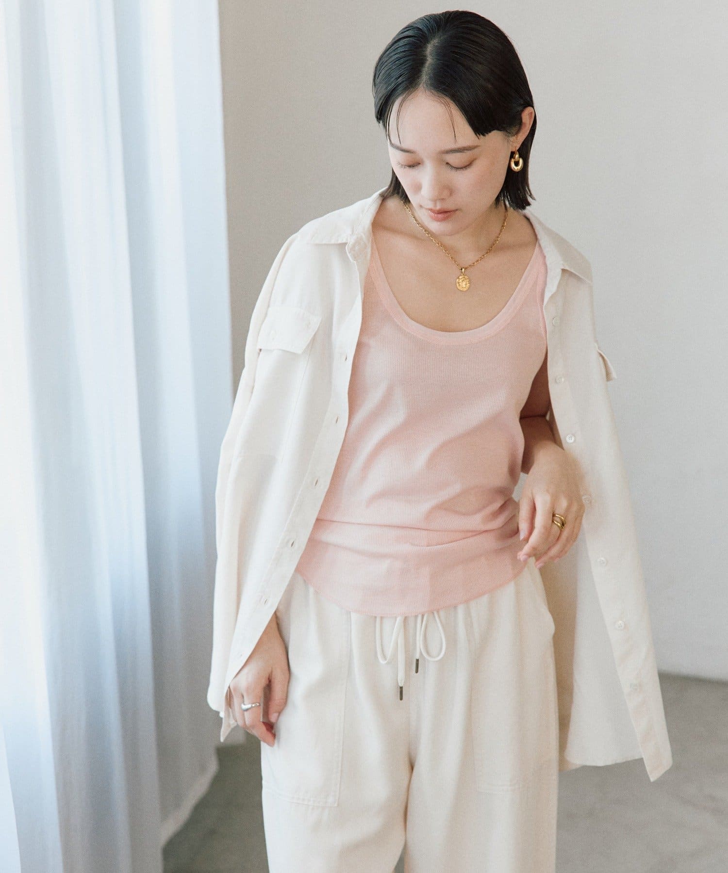 TOP > RIVE DROITE > レディース > トップス > タンクトップ > 予約【フェミニンなムードを演出】チュールリブタンクトップ