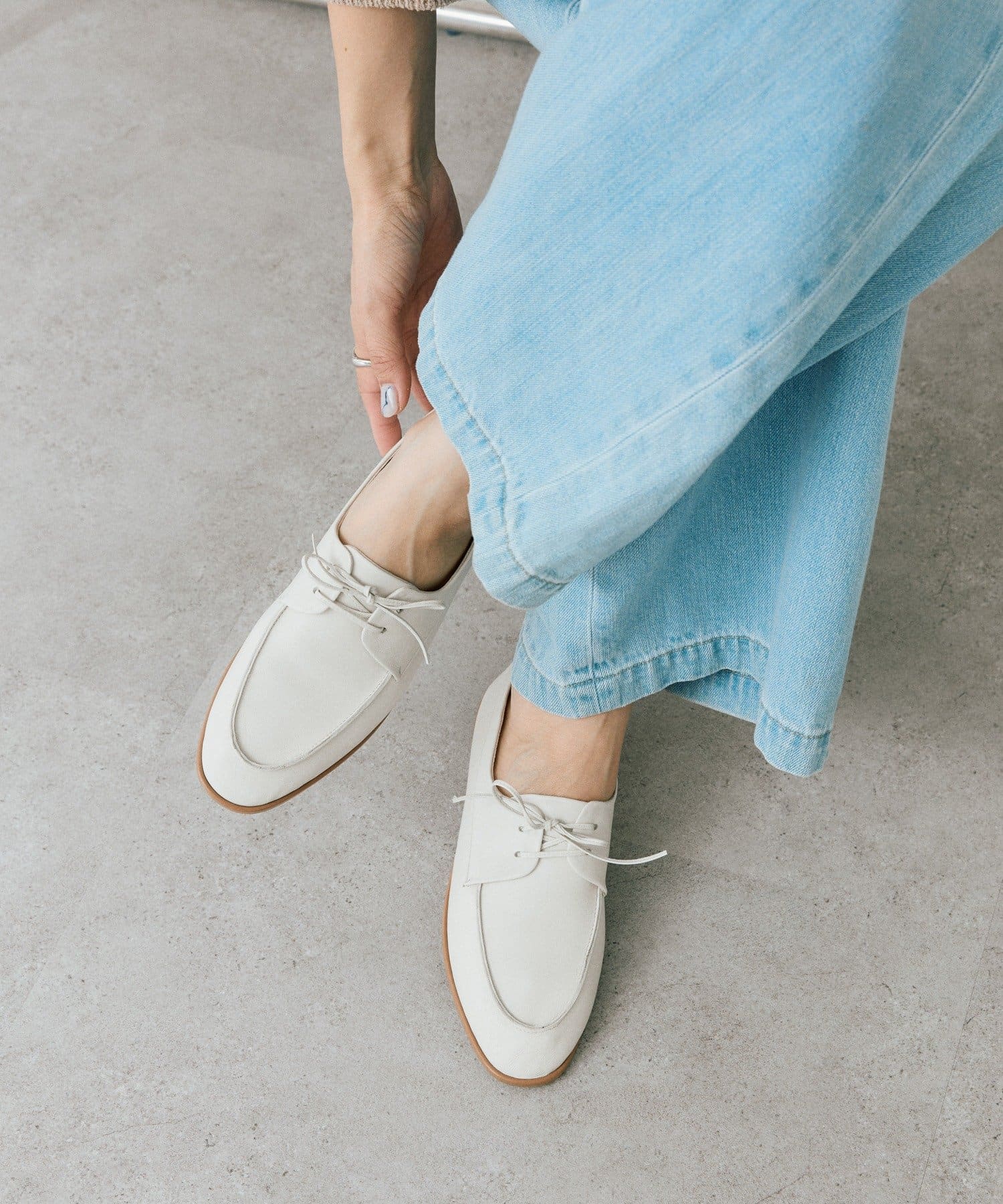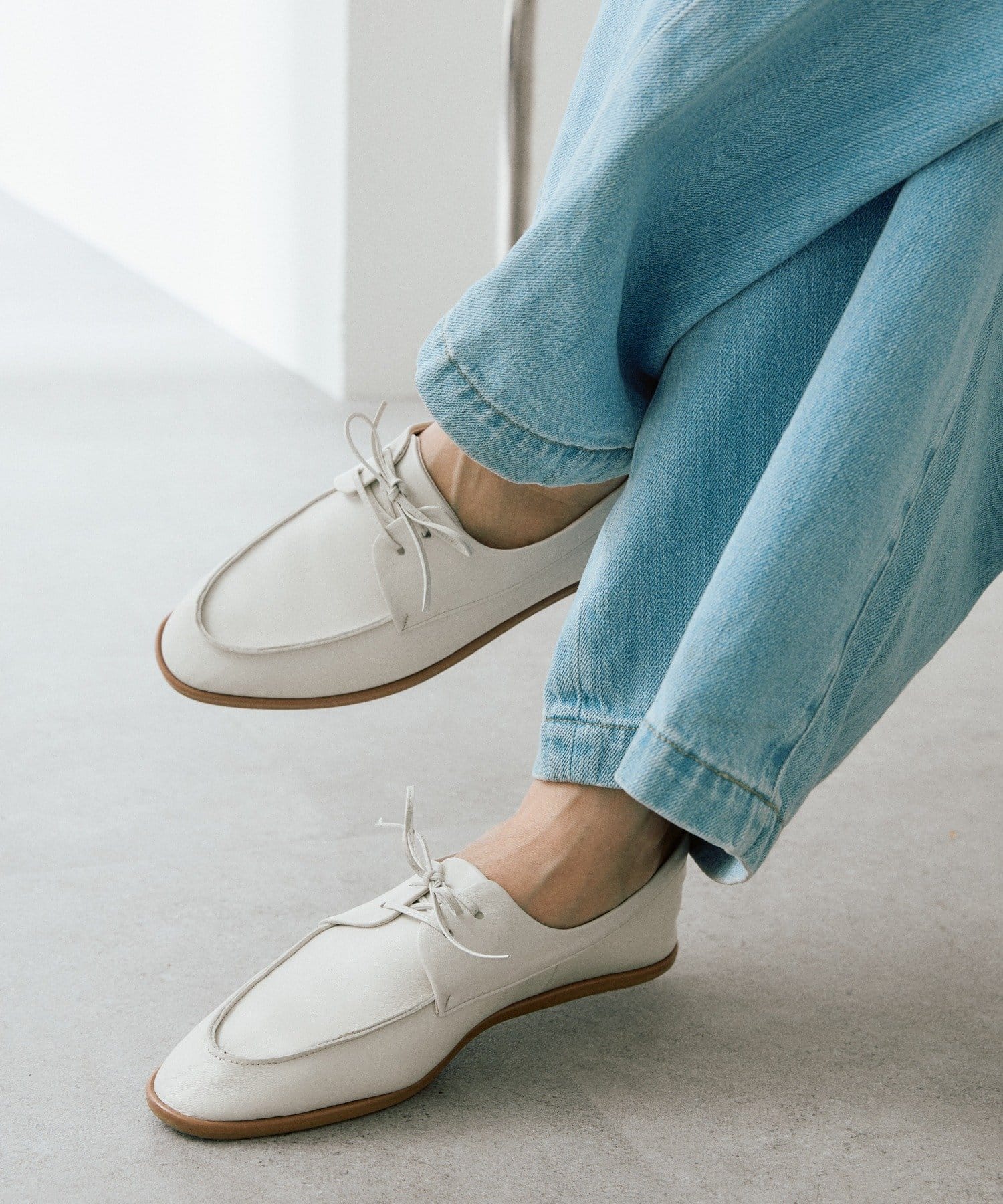 ・フラットなソールがモードでハンサムな印象