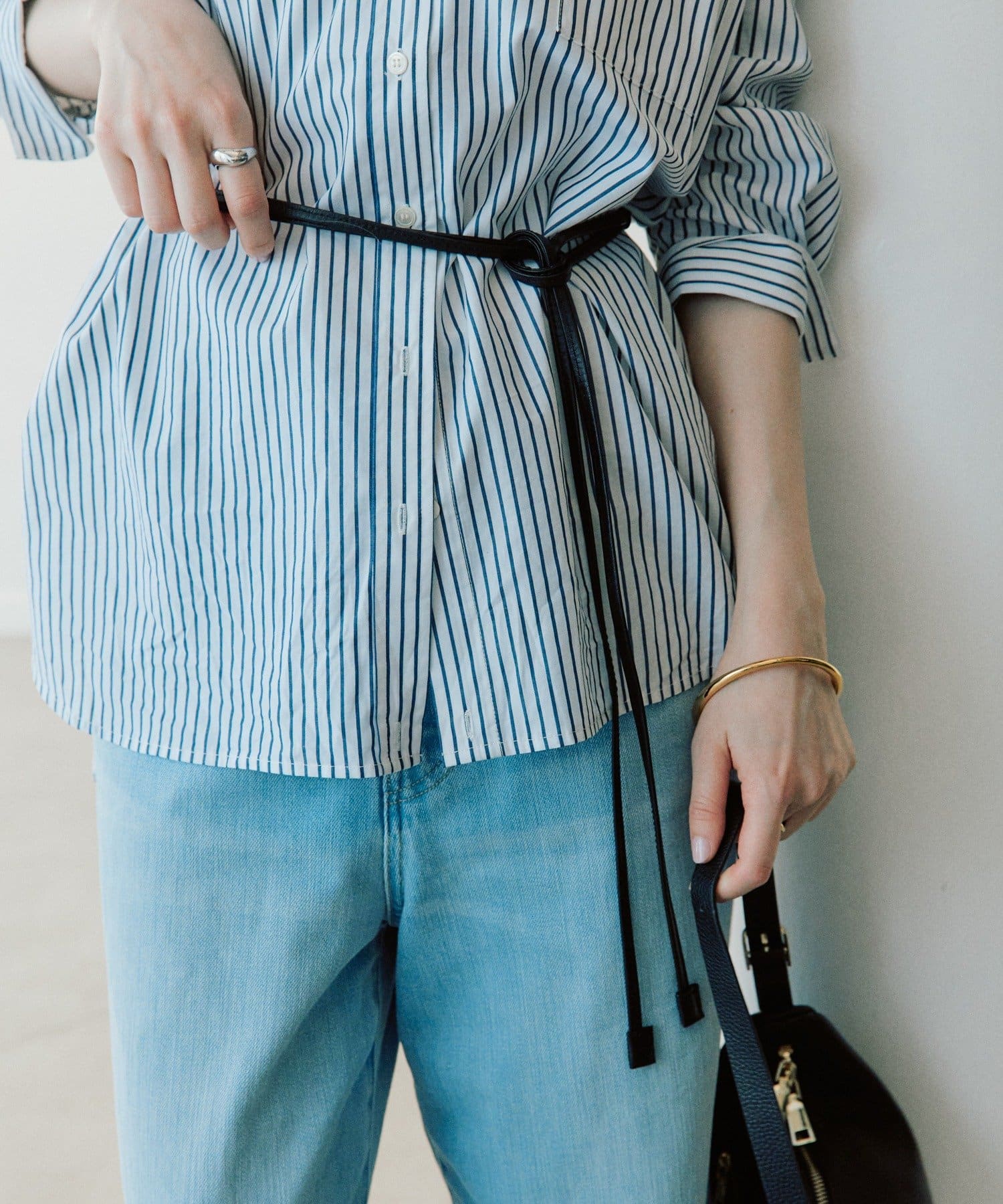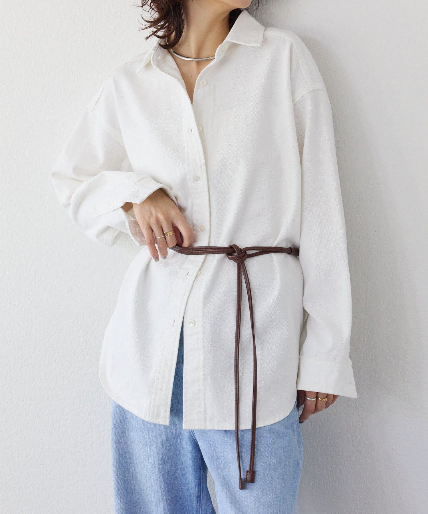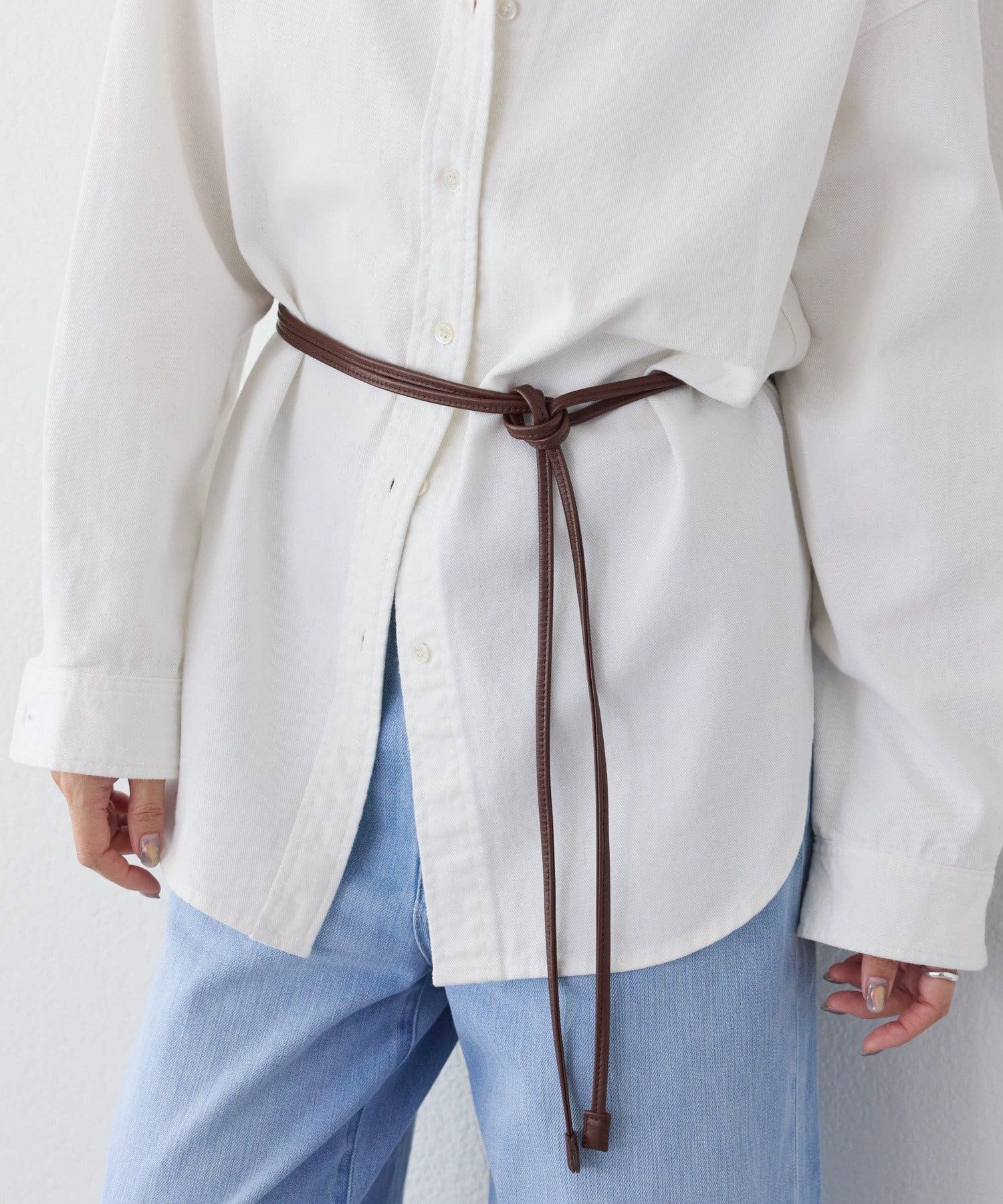 ・長めの丈のトップスやジャケットの上からウエストマークして使用頂くのもおすすめ