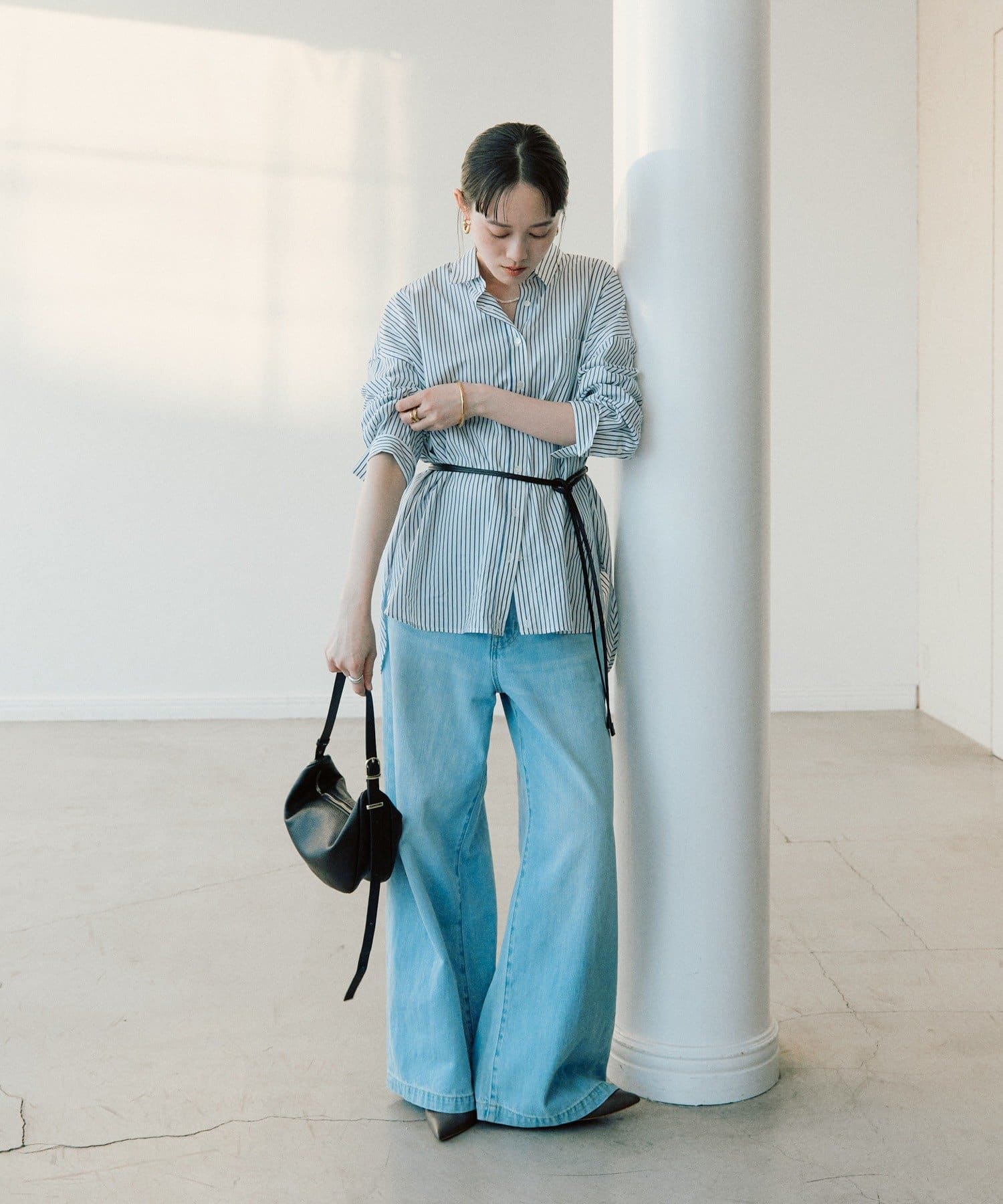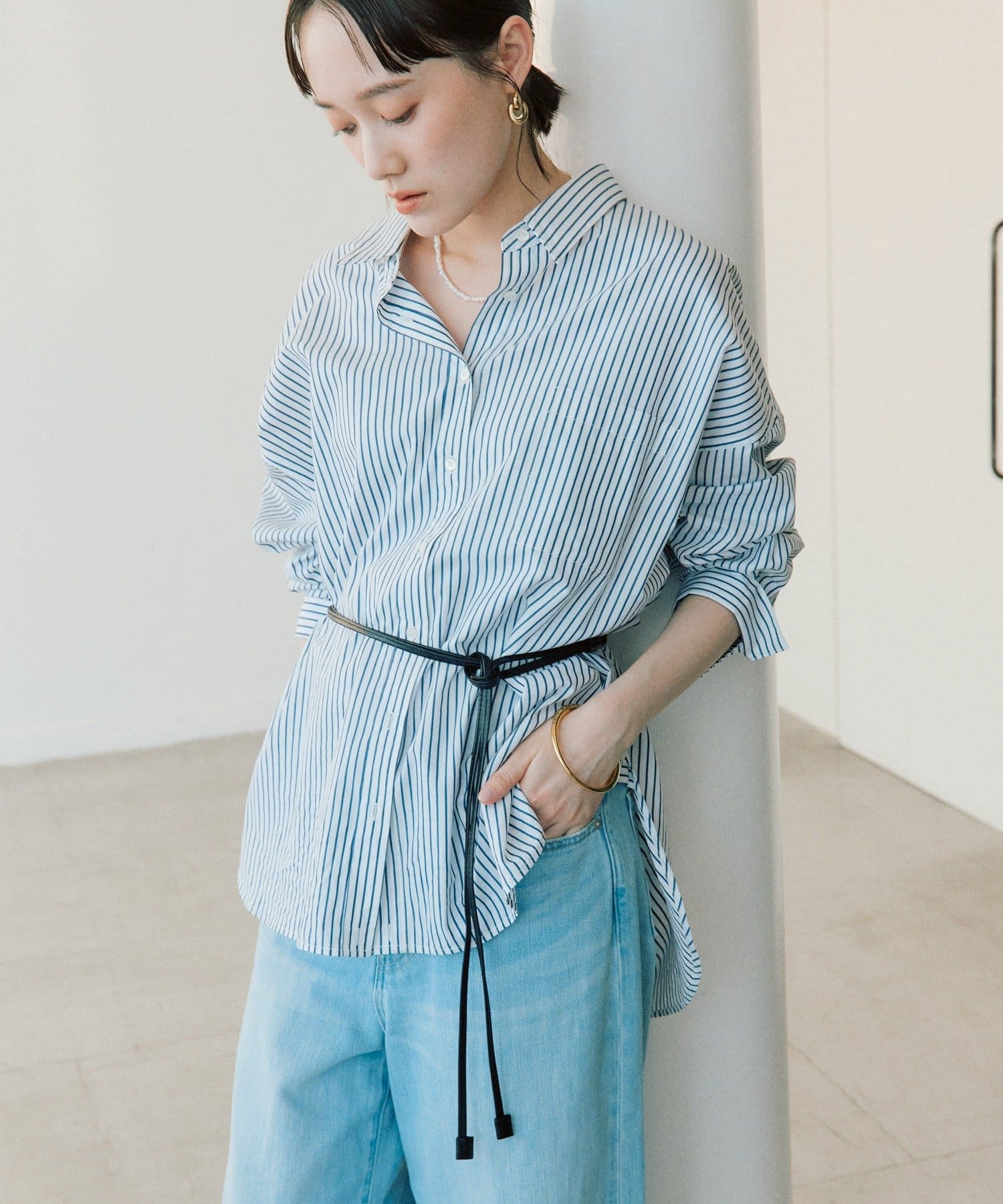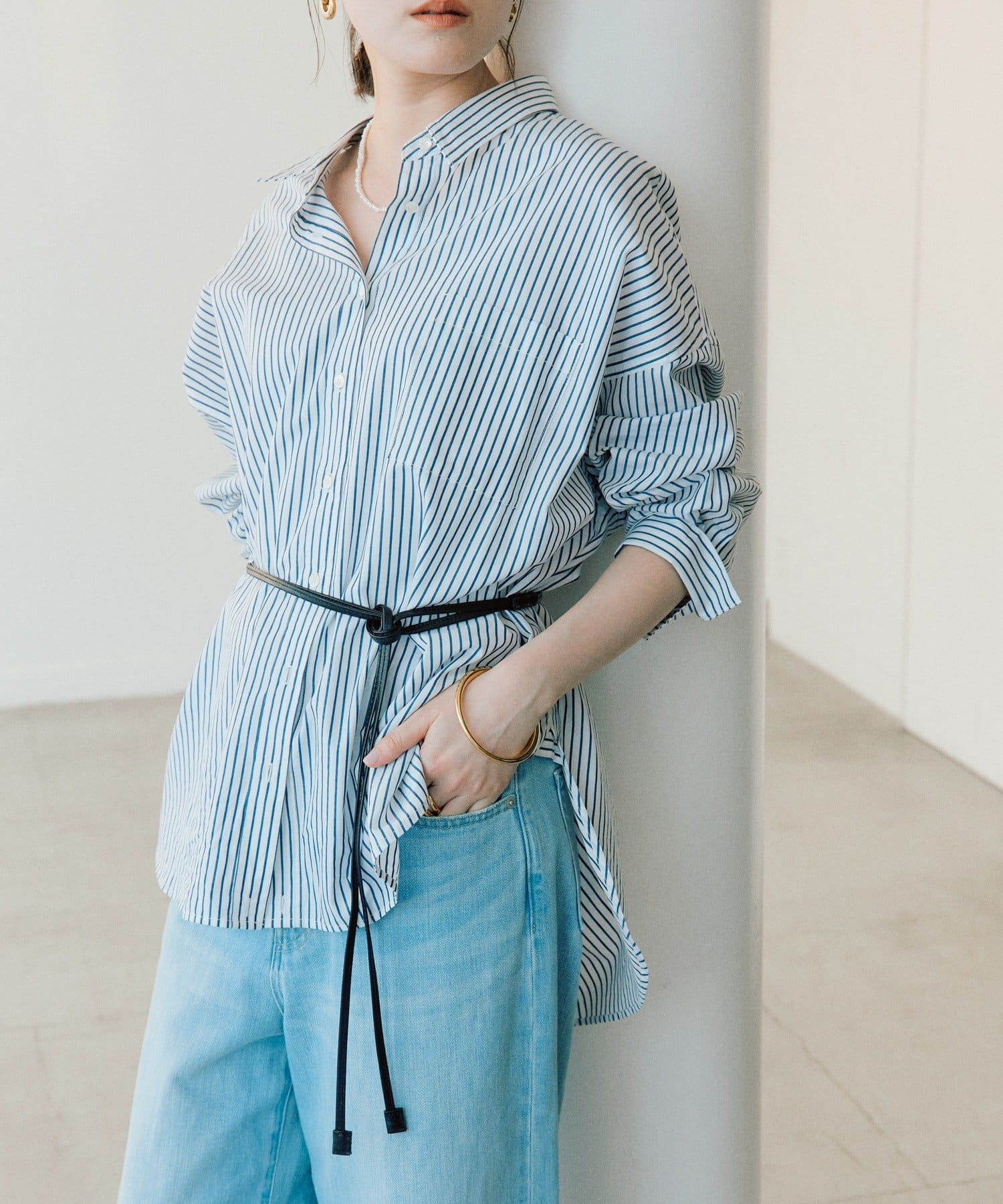 ・長めの丈のトップスやジャケットの上からウエストマークして使用頂くのもおすすめ