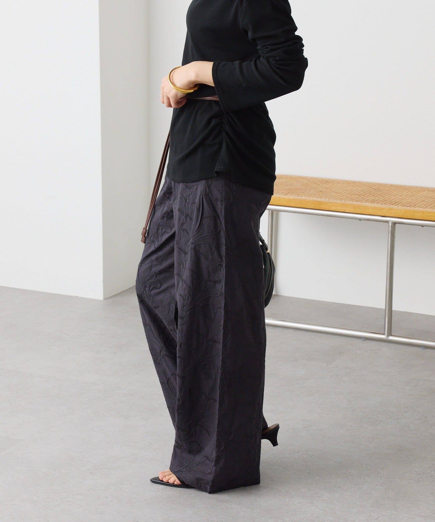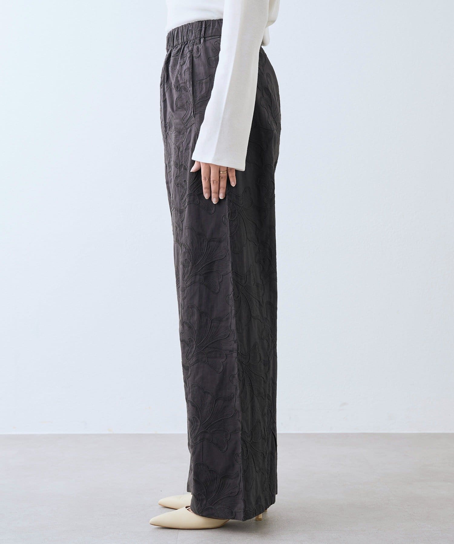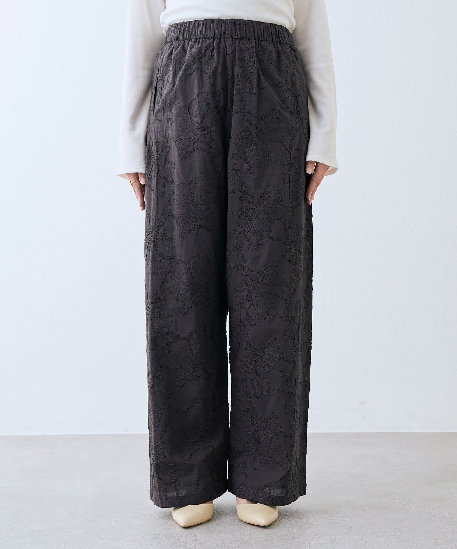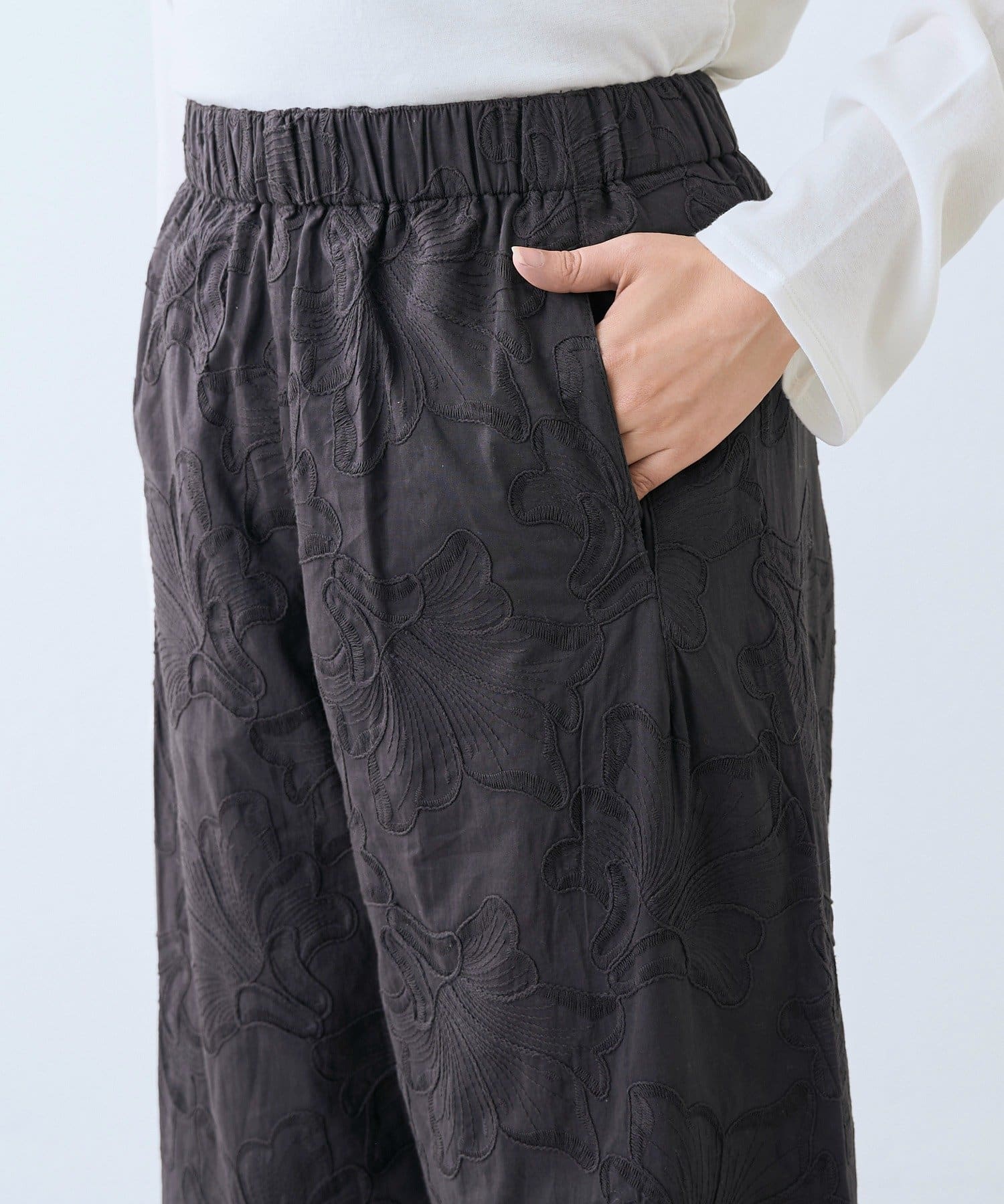 デザイン性も着心地も兼ね備えた刺繍イージーパンツ
