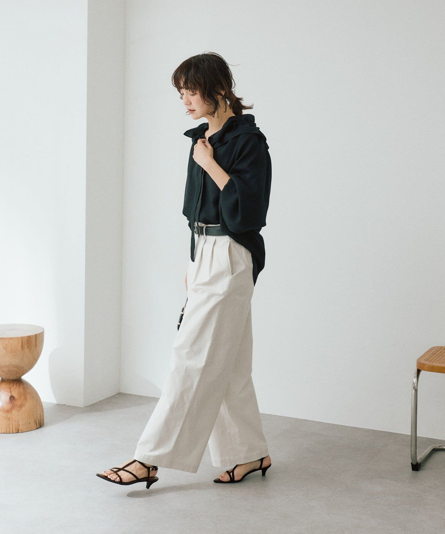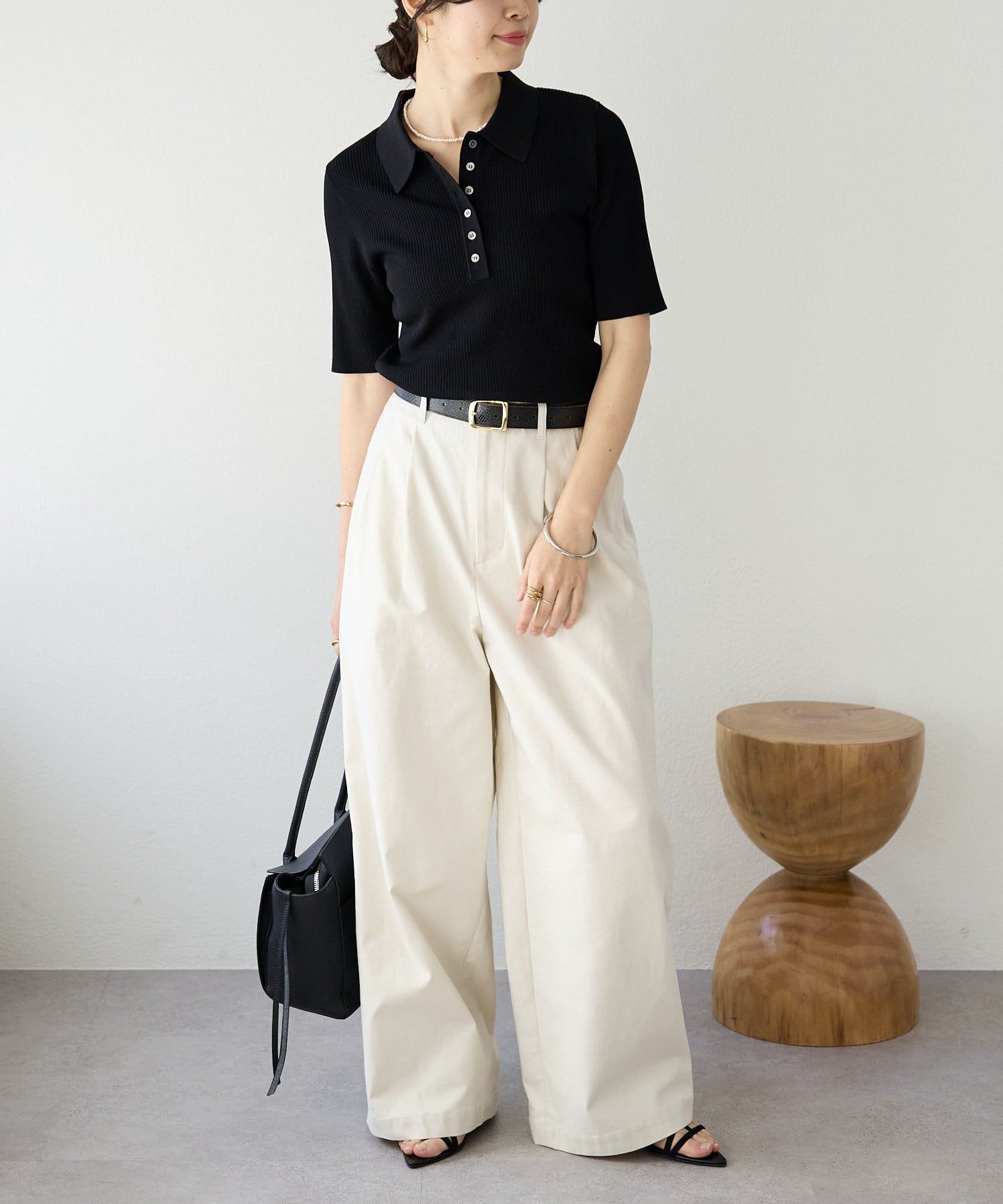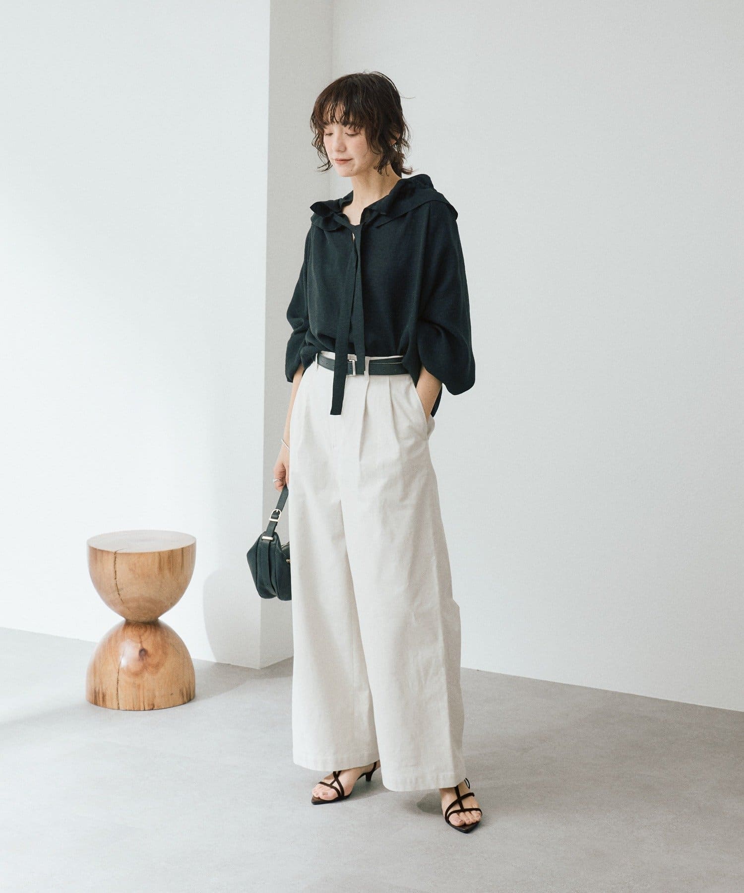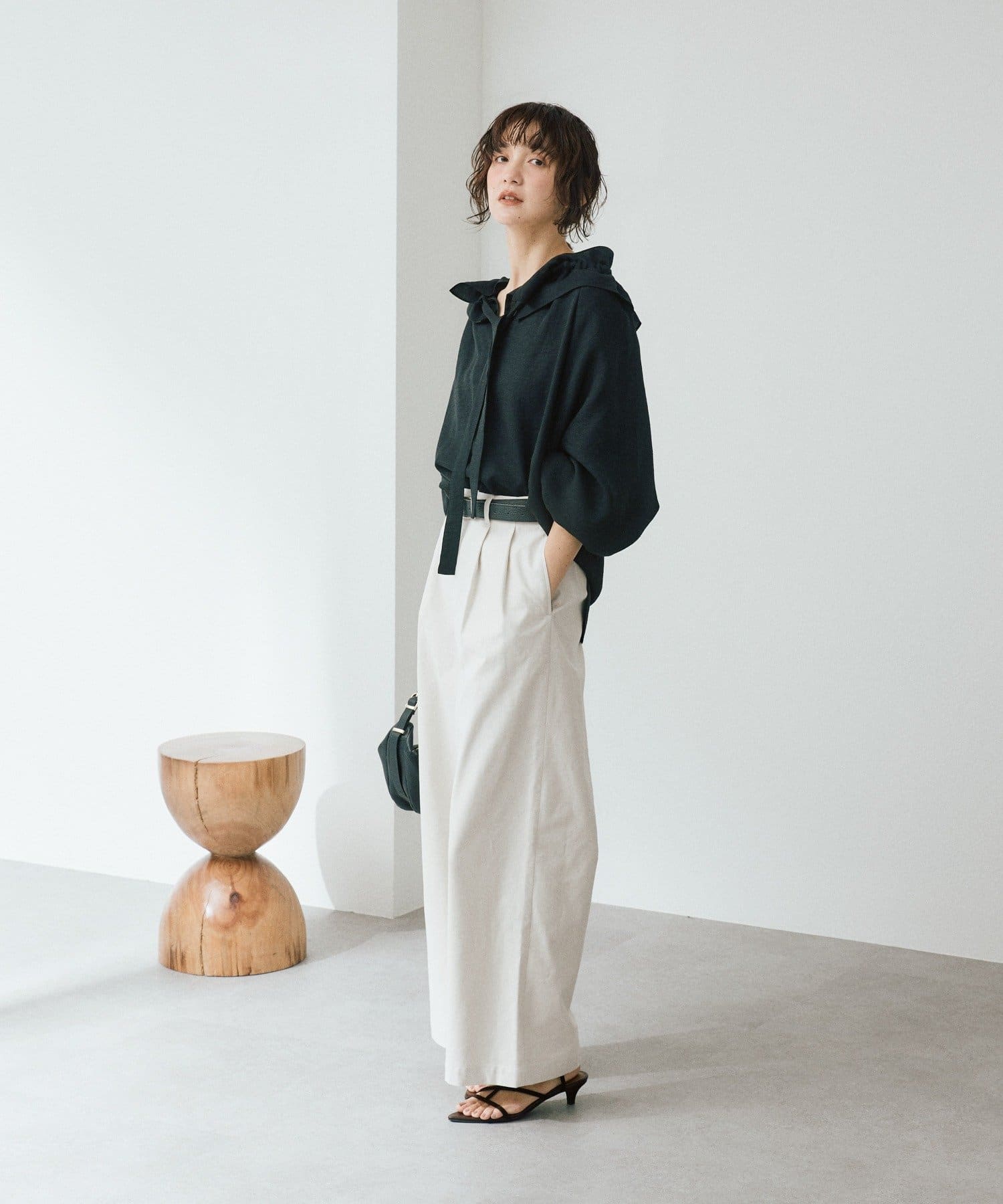 ・ツヤのある生地感でカジュアル過ぎず、大人なムードで着用いただけます。