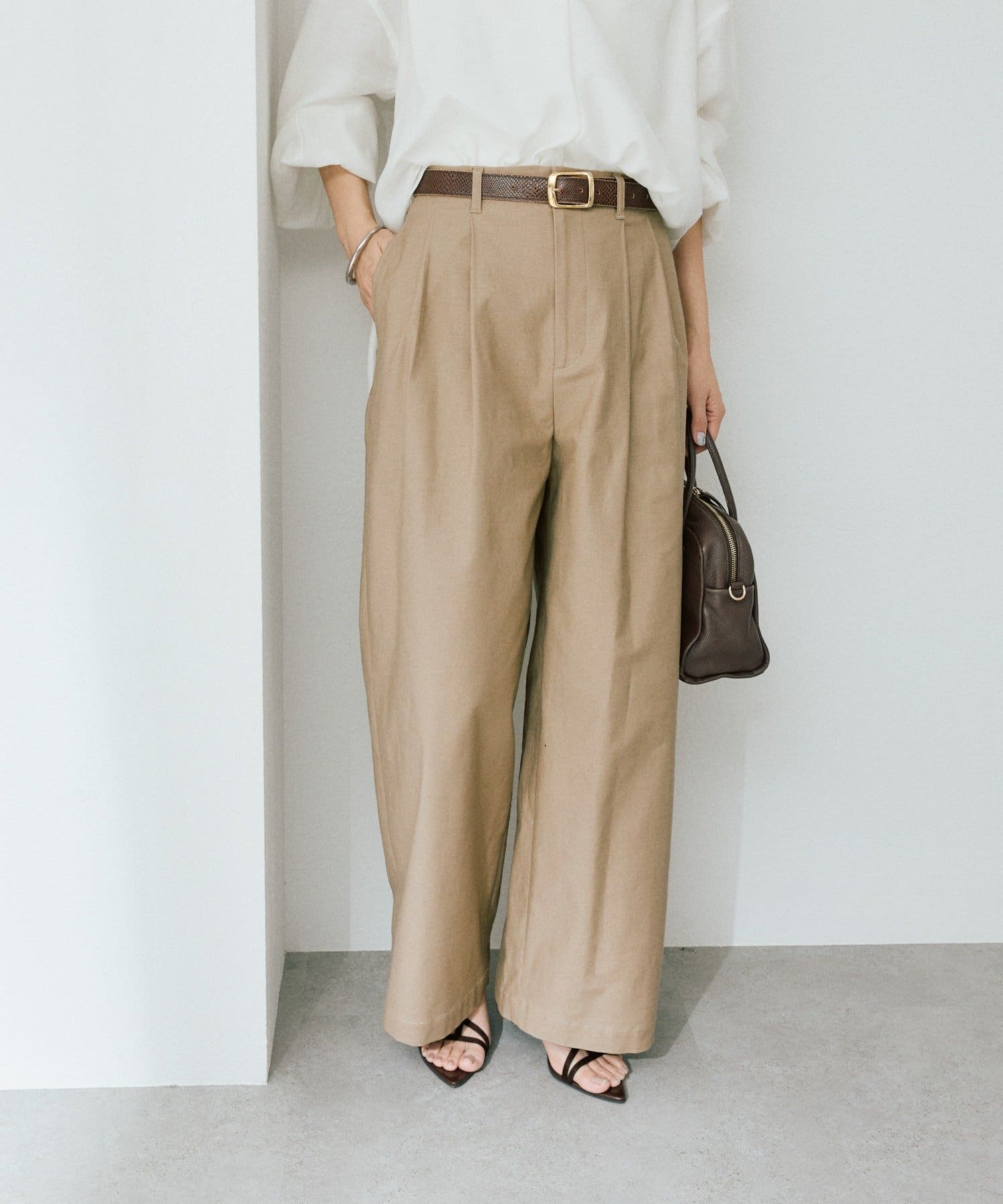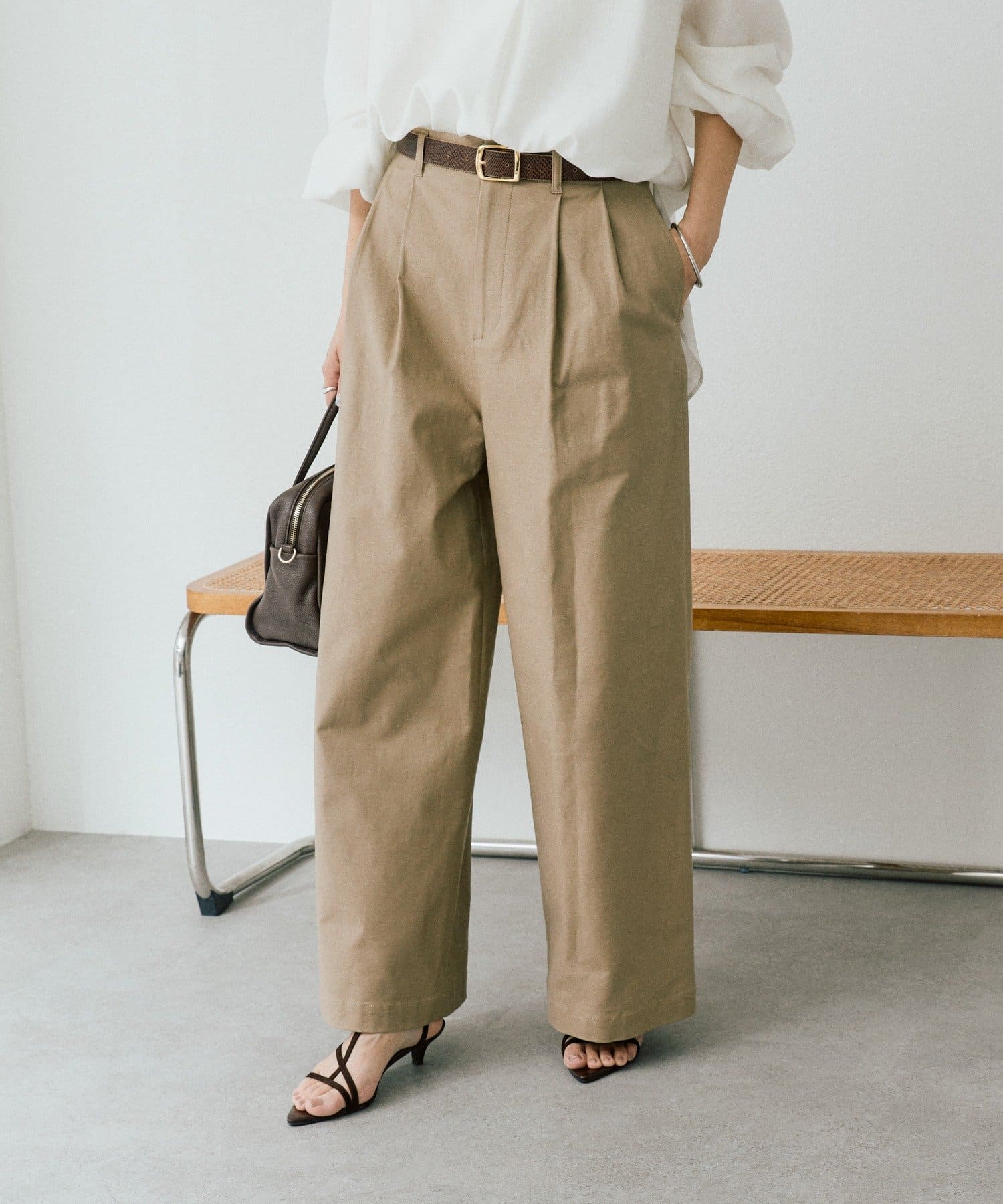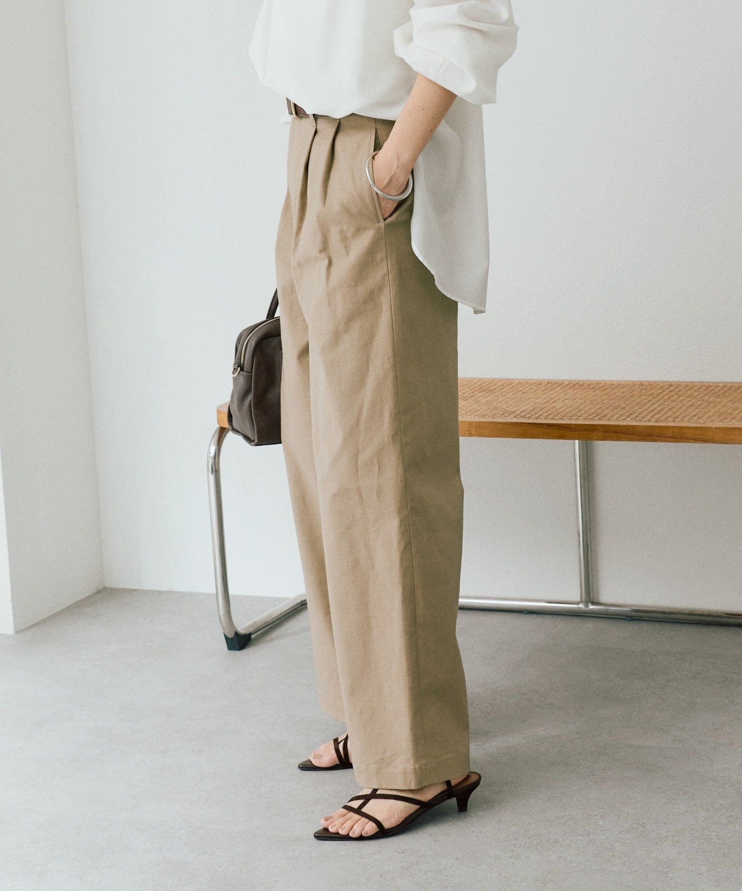 • トレンド感のある、タック入りのバギーチノ