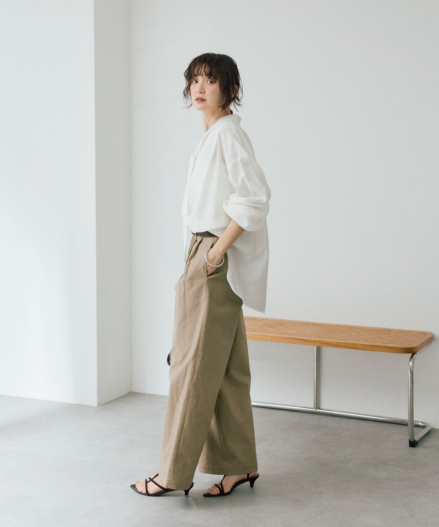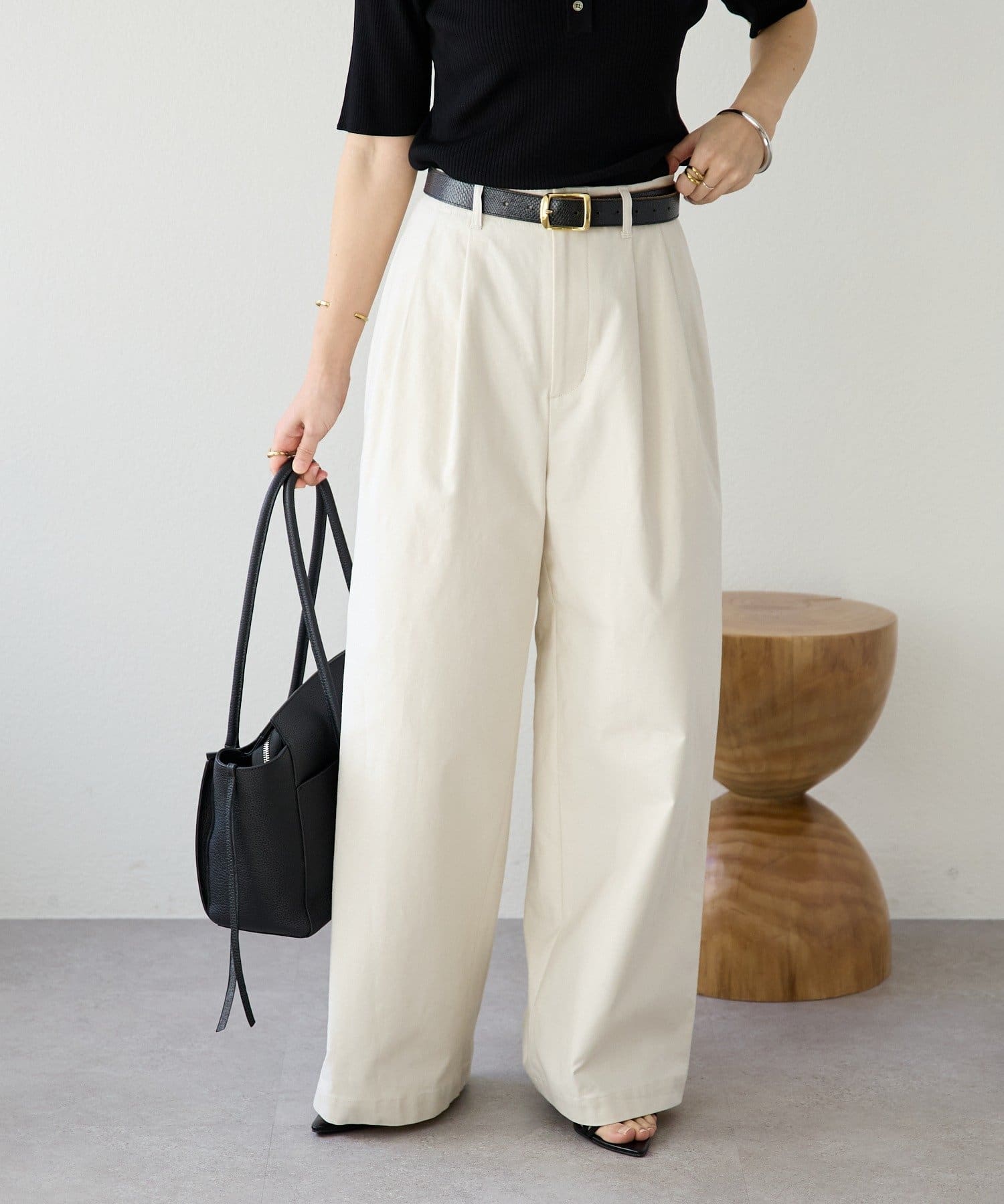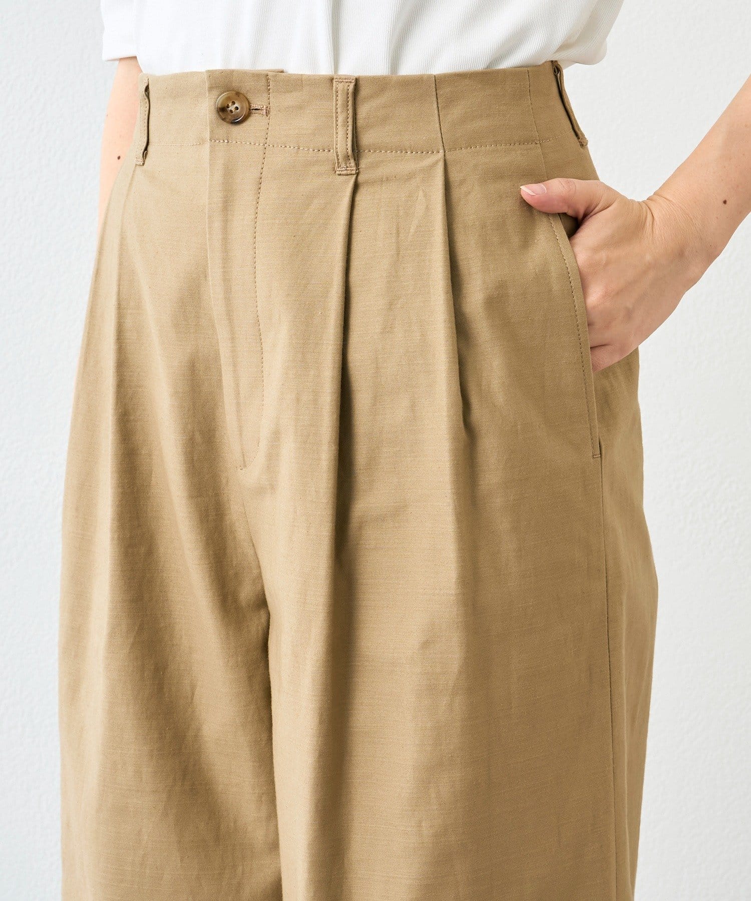 • トレンド感のある、タック入りのバギーチノ