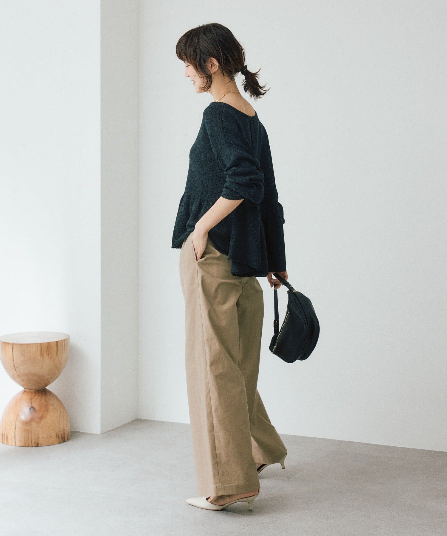 ・腰まわりをスッキリとさせたシルエットがポイントです。