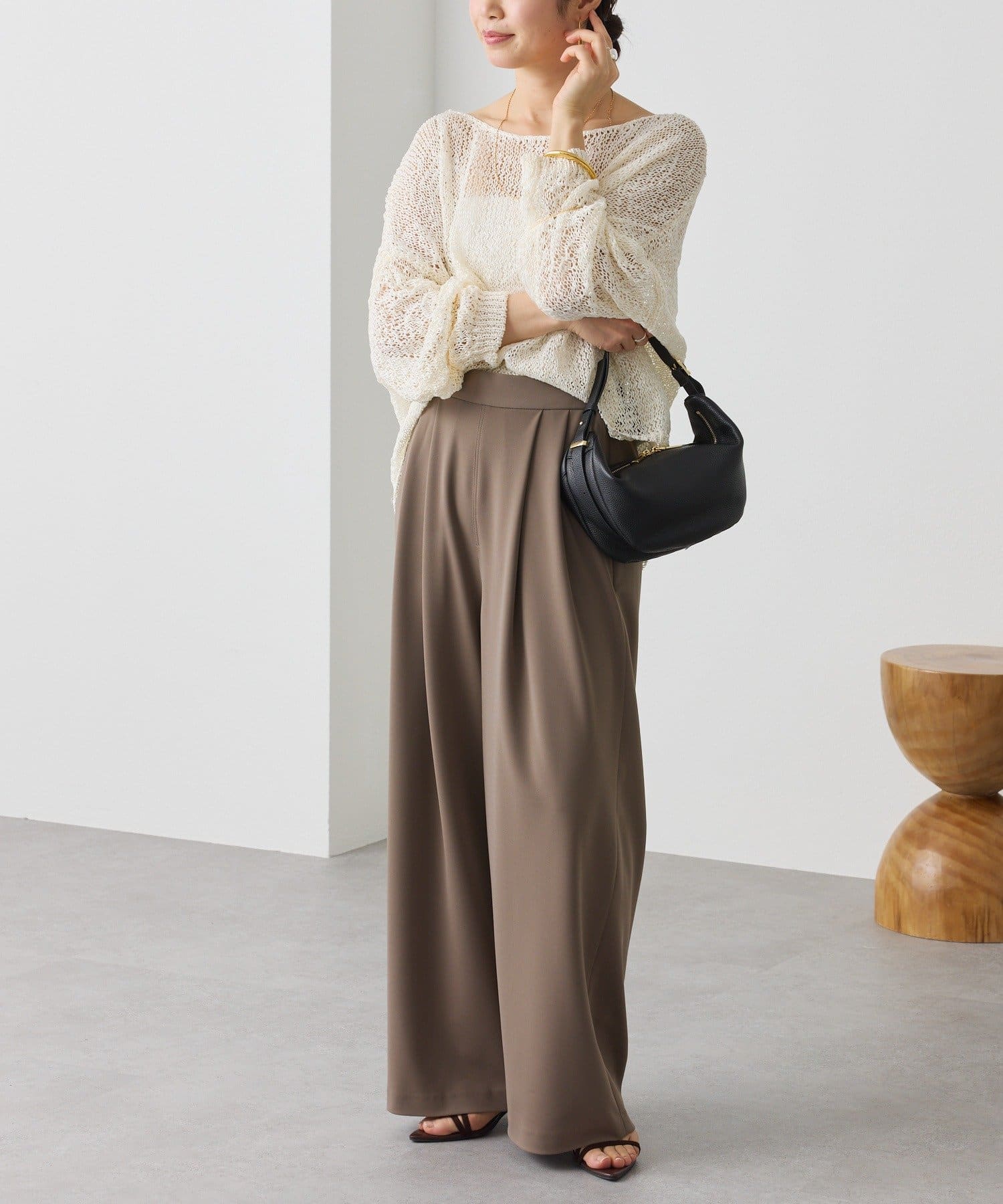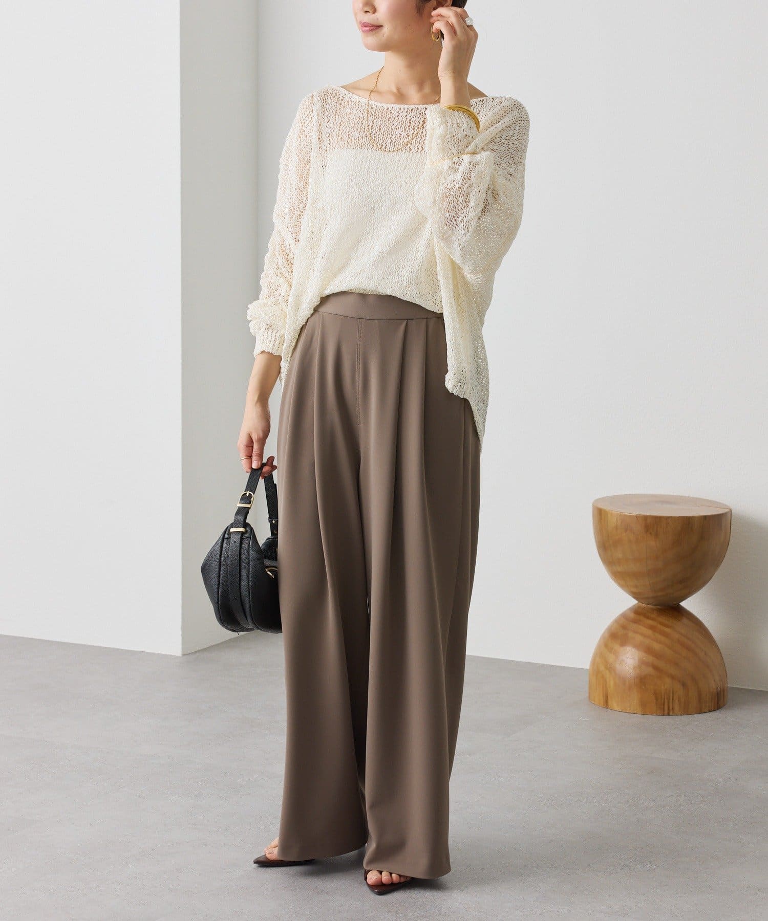 TOP > RIVE DROITE > レディース > パンツ > その他パンツ > 予約【ノンストレスな穿き心地/細見え/3サイス展開】ジャージータックワイドスラックス