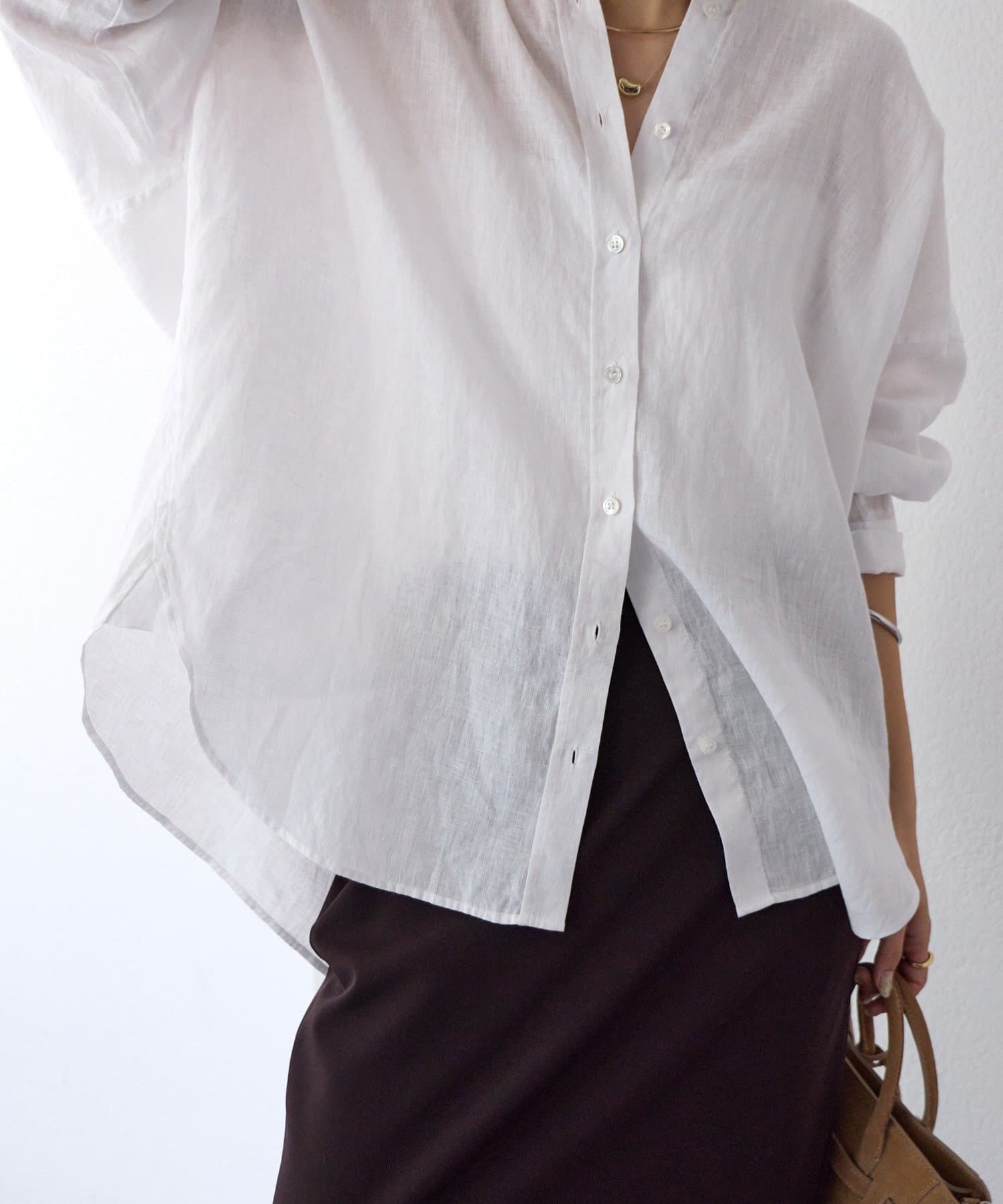 ・定番のリネンワイドシャツの形をそのままに、よりシャリ感がありリネンの風合いを楽しんでいただける素材にリニューアルしました