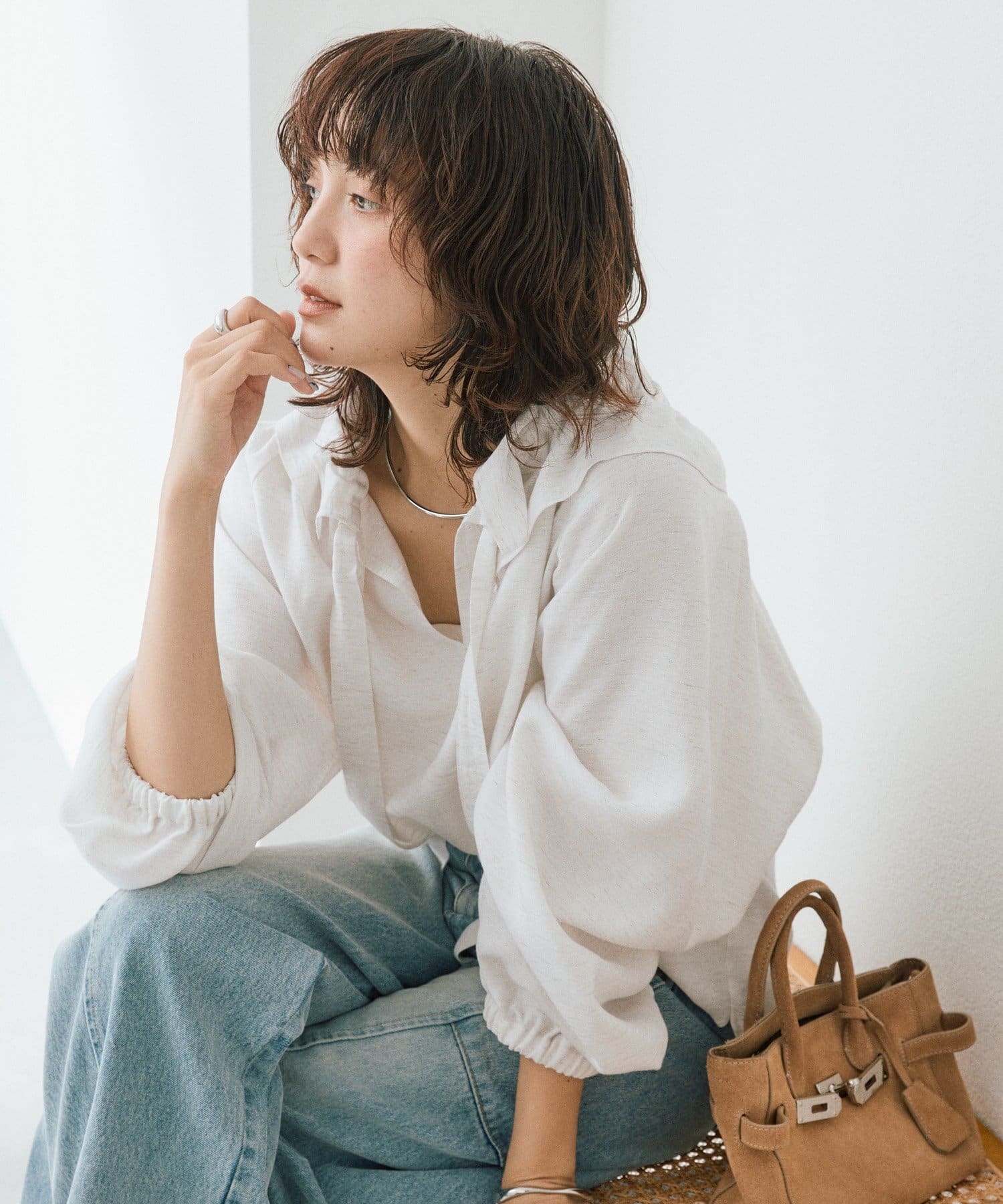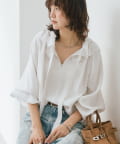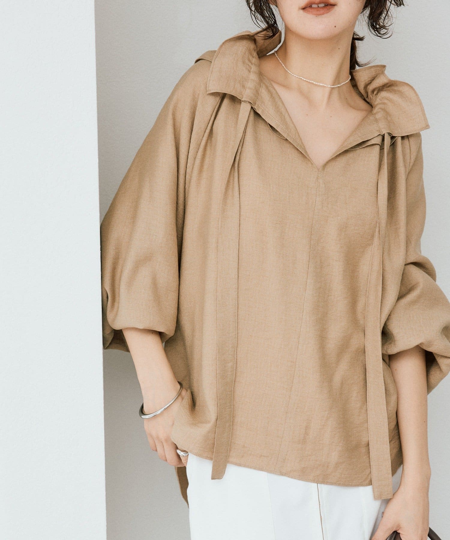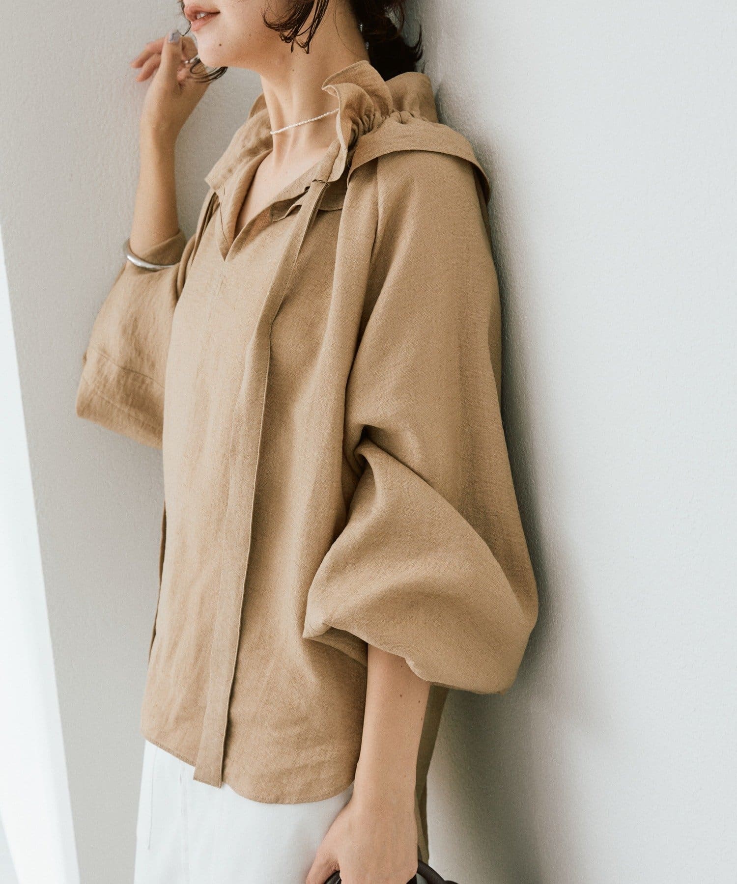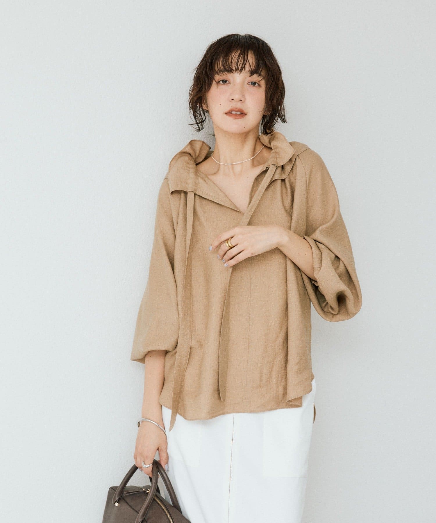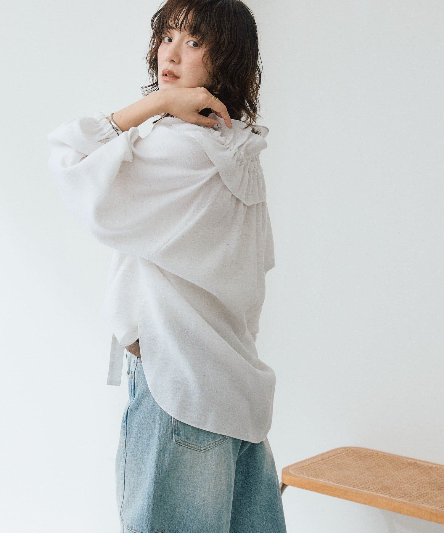 TOP > RIVE DROITE > レディース > トップス > シャツ/ブラウス(プルオーバー) > 予約【顔まわり華やか】リネンライクフリルカラーブラウス