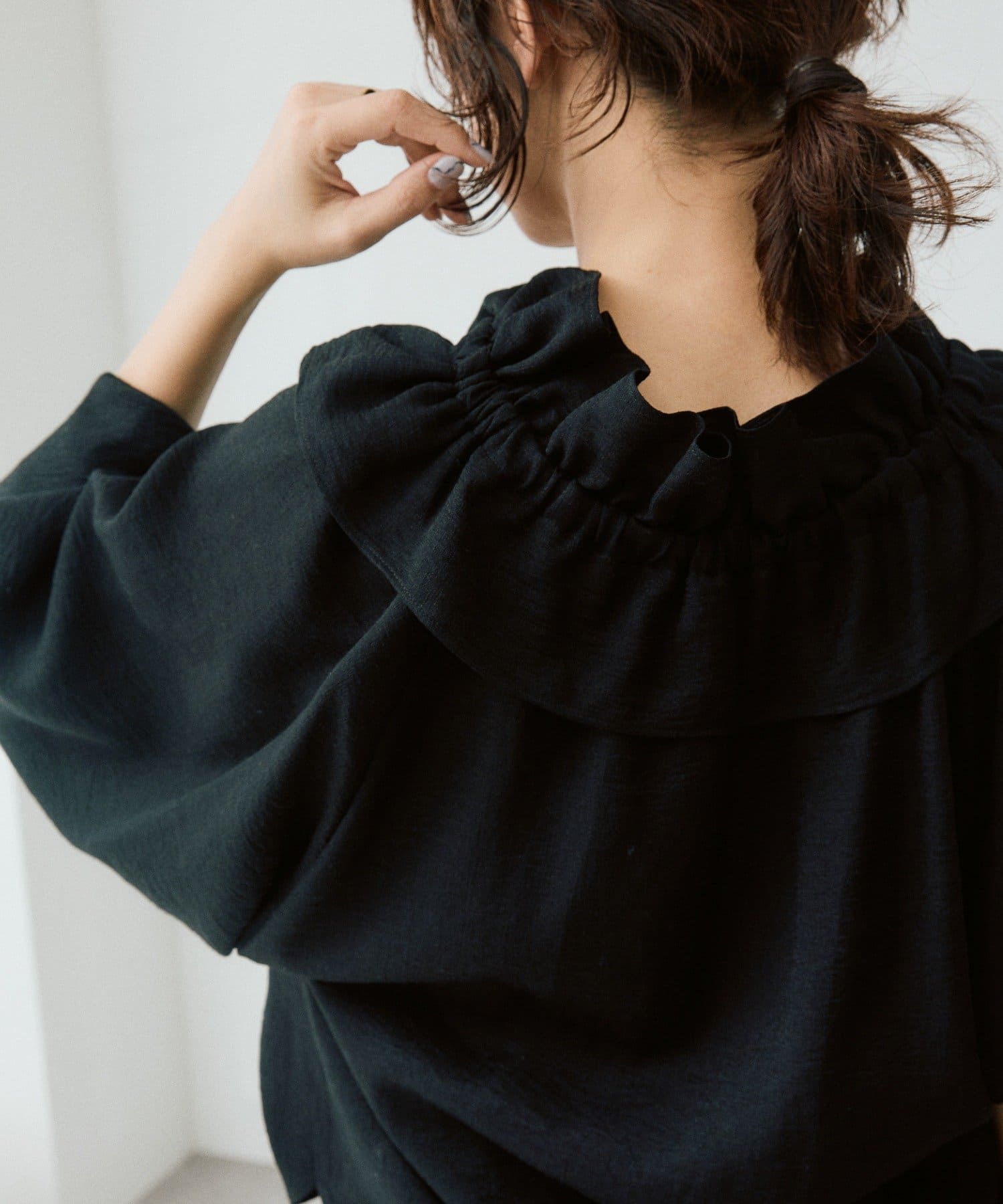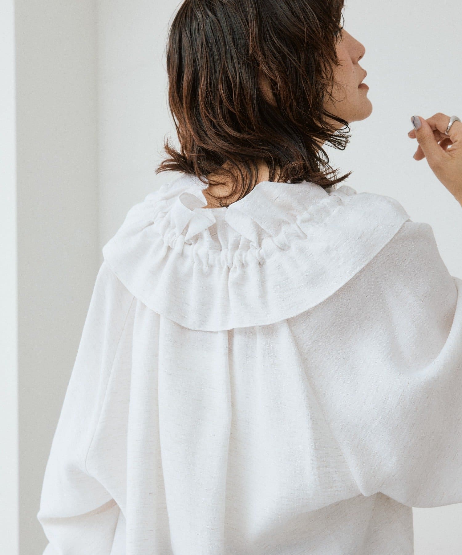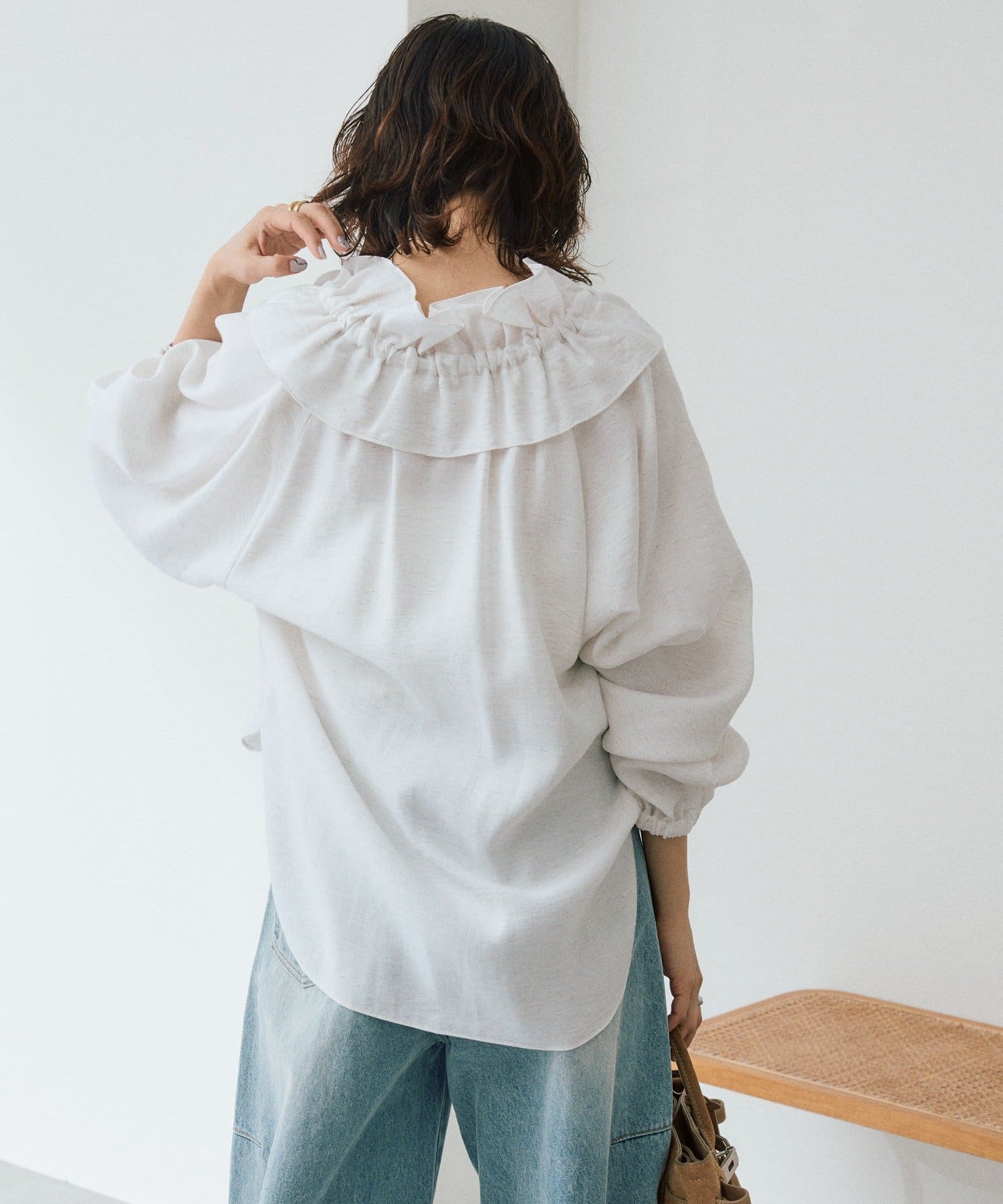 RIVE DROITE(リヴドロワ) 予約【顔まわり華やか】リネンライクフリルカラーブラウス