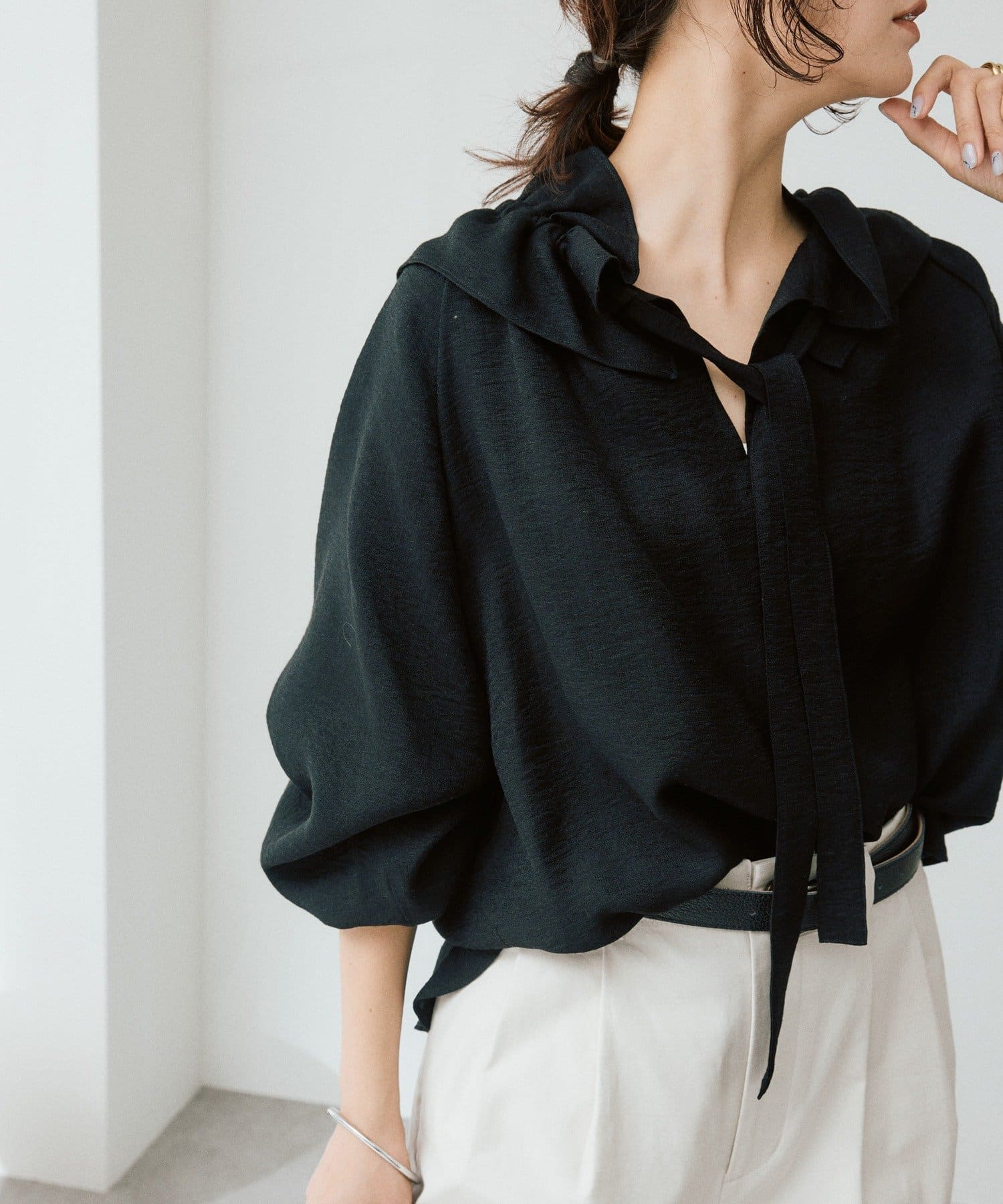・程よく落ち感があるので、フリルディテールも甘くなりすぎずに取り入れていただけます