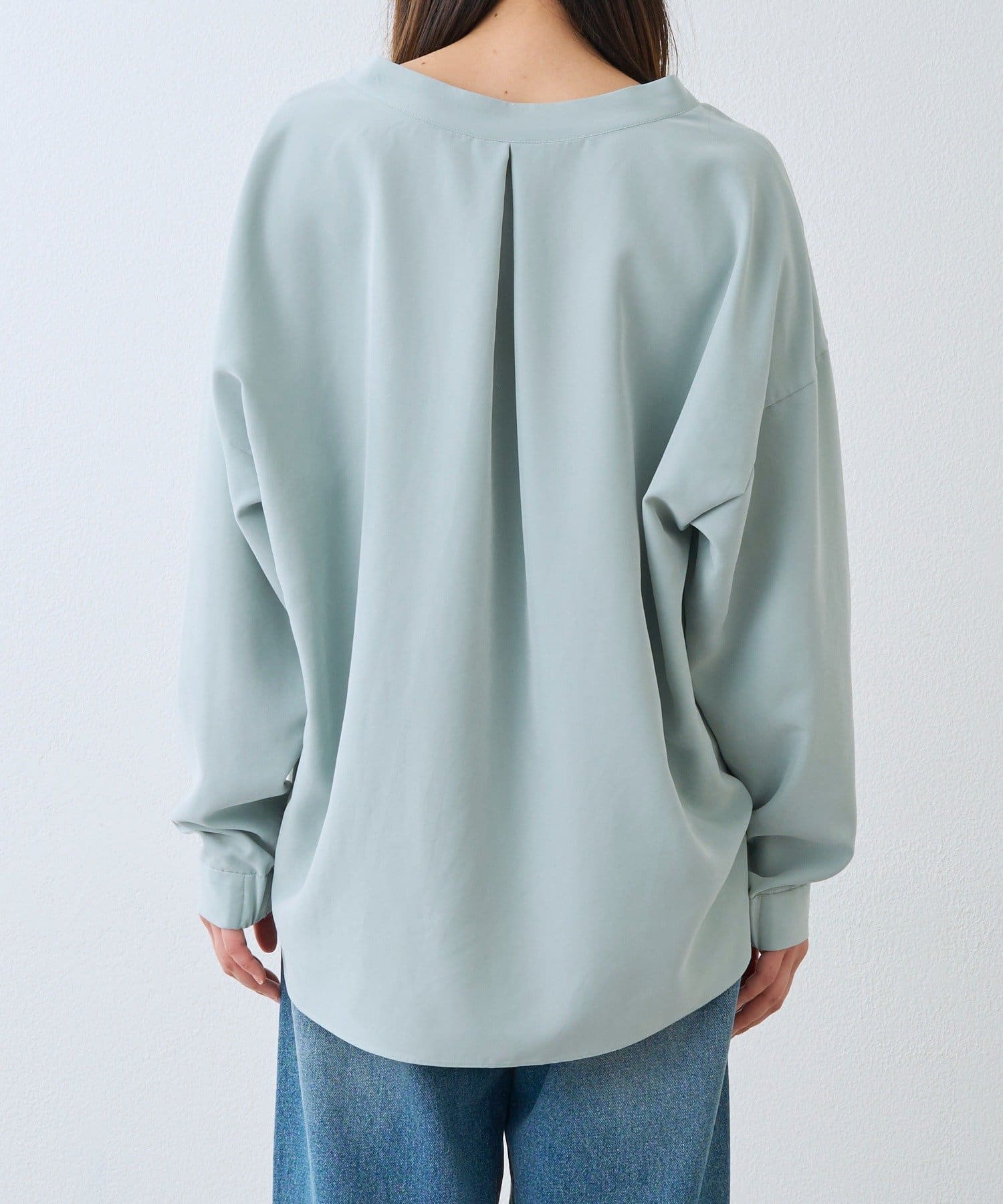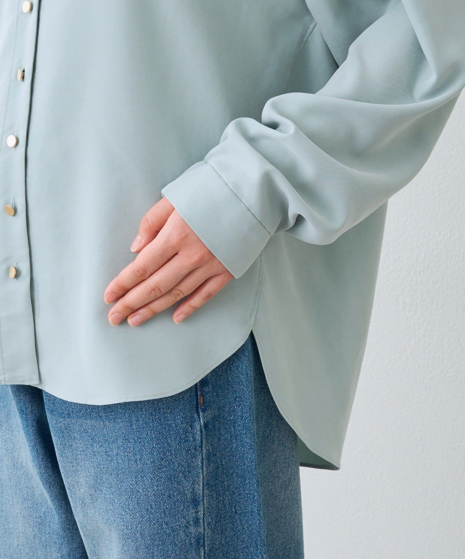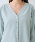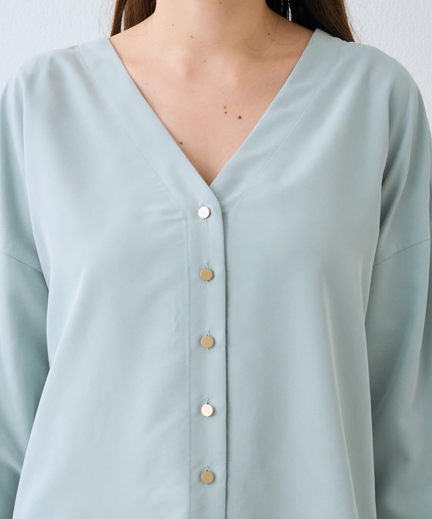 予約【女性らしい抜け感】メタルボタンノーカラーブラウス