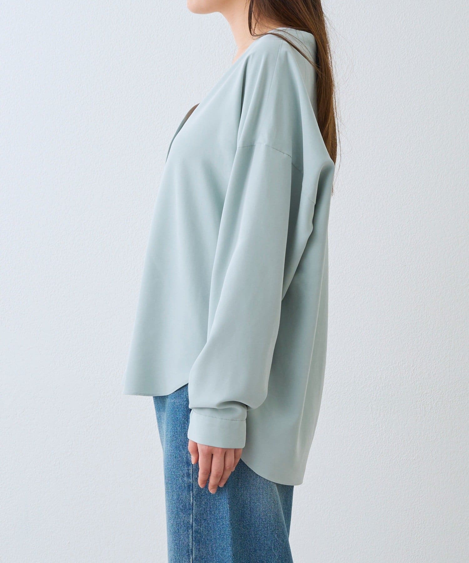 ・着るだけでこなれたムードを演出できる、エフォートレスなVネックブラウス。