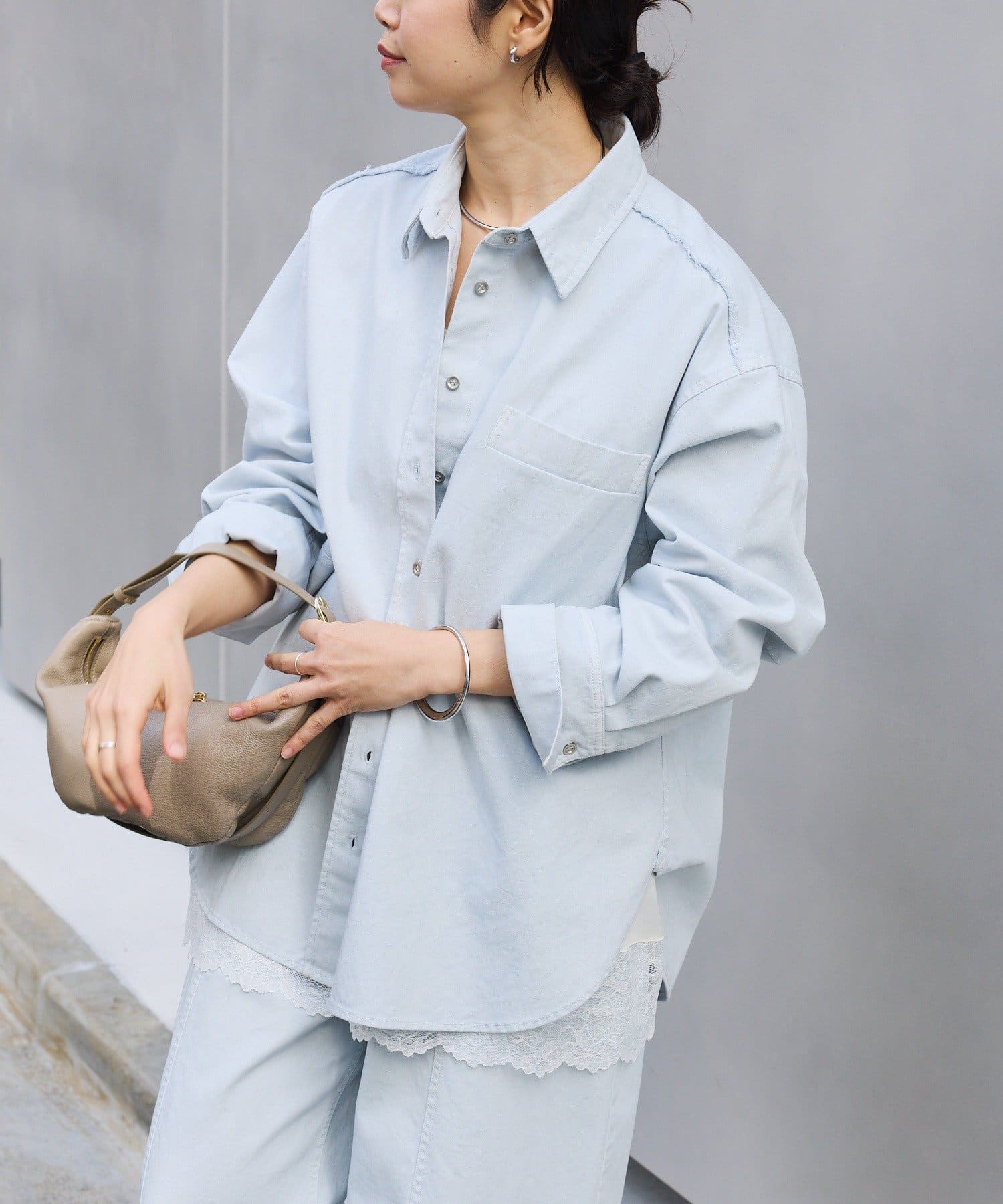 春を感じさせるカラーデニムシャツ