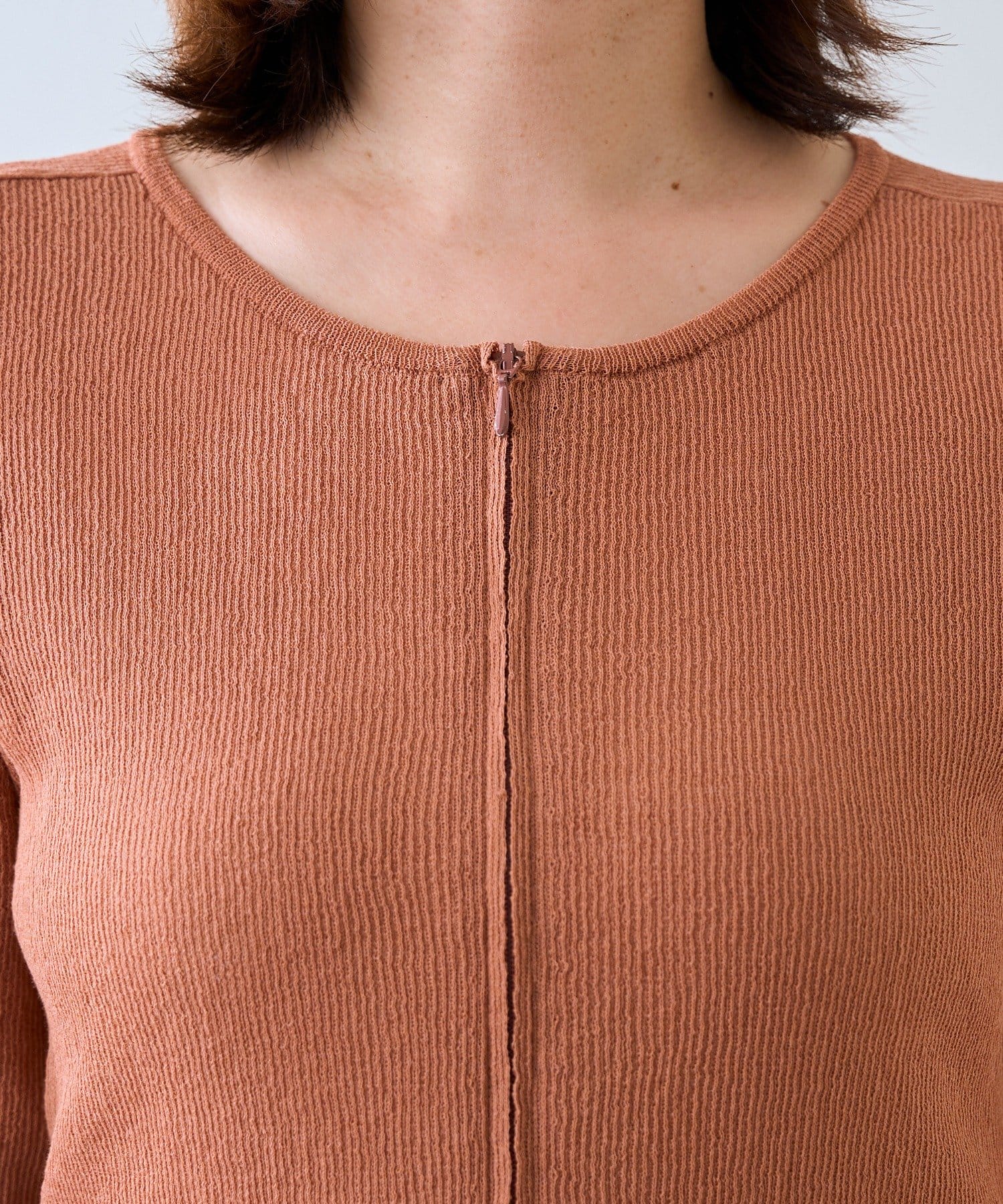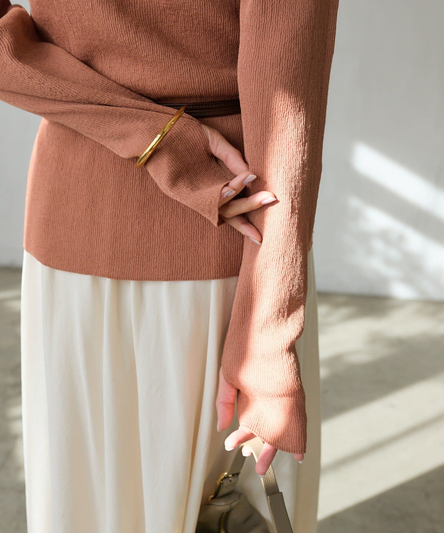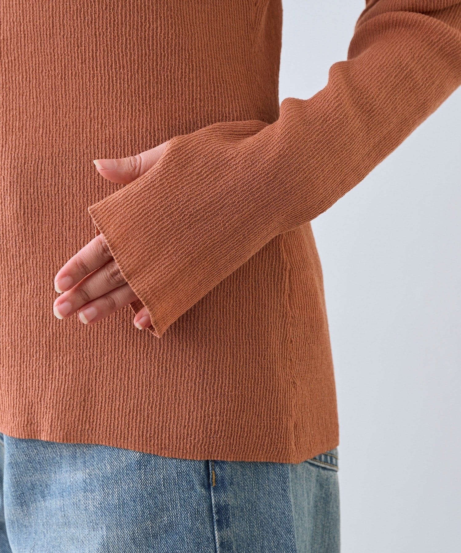 ・シアーなニュアンスのあるリブの表面感で、タイトながらも着やすさもある1枚です