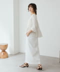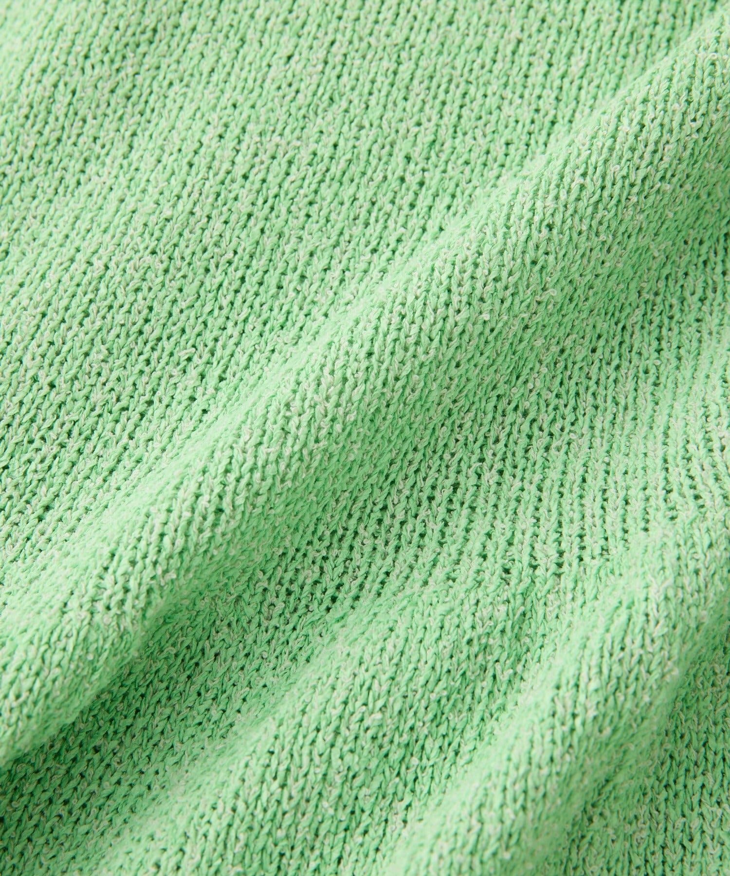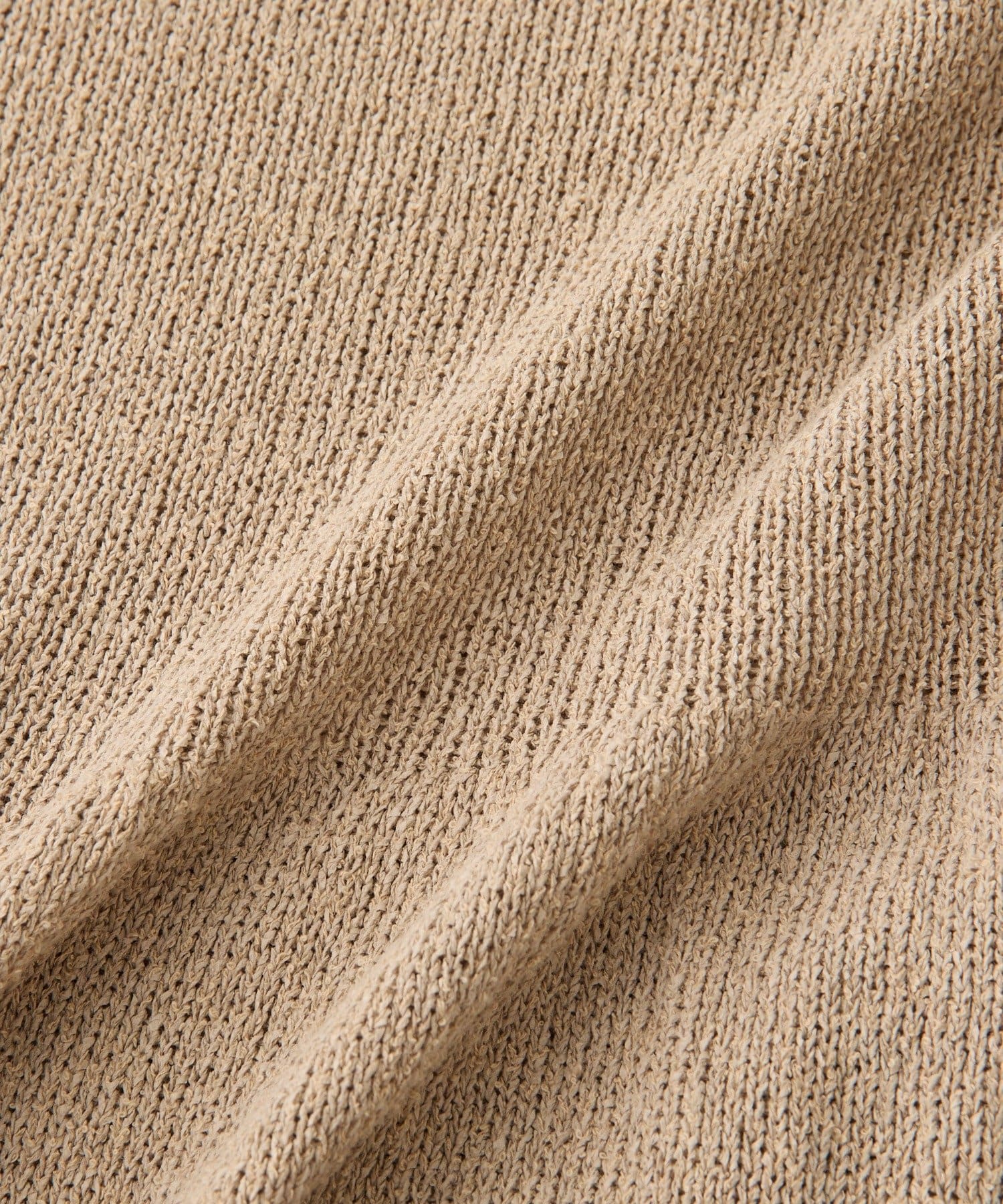 ・ペーパーヤーンにコットンナイロンのリングブークレーを撚糸した、ドライタッチで表情豊かな素材を使用。