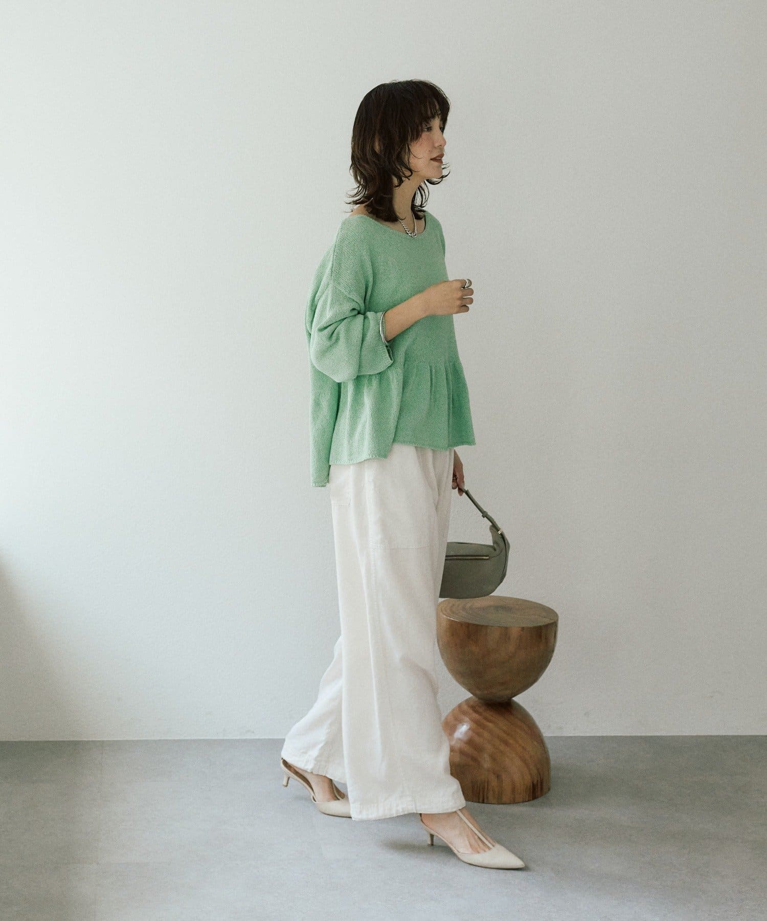 ・ペプラム部分はざっくりとした編地とほんのりとした透け感で、軽やかな印象に仕上げました。
