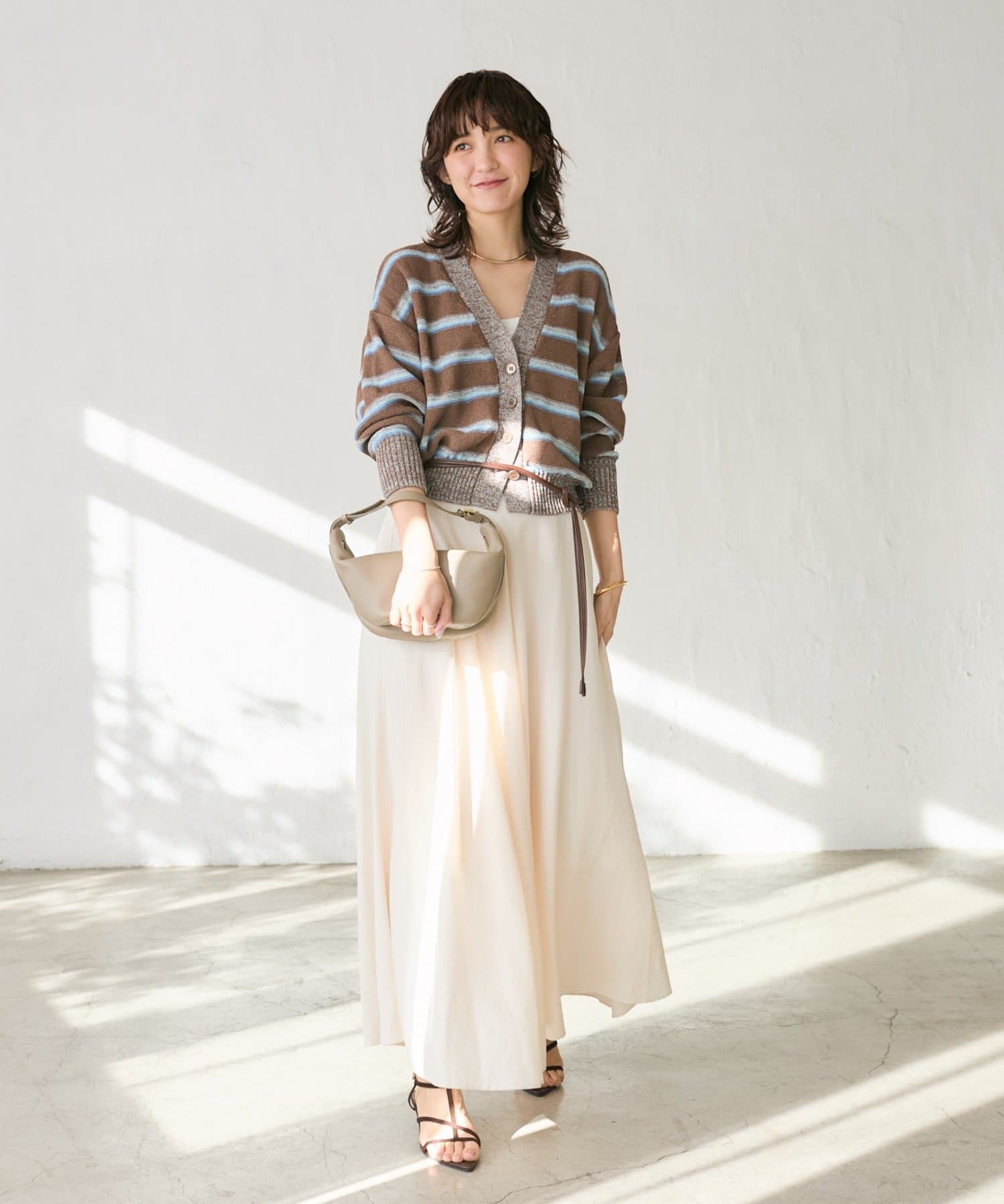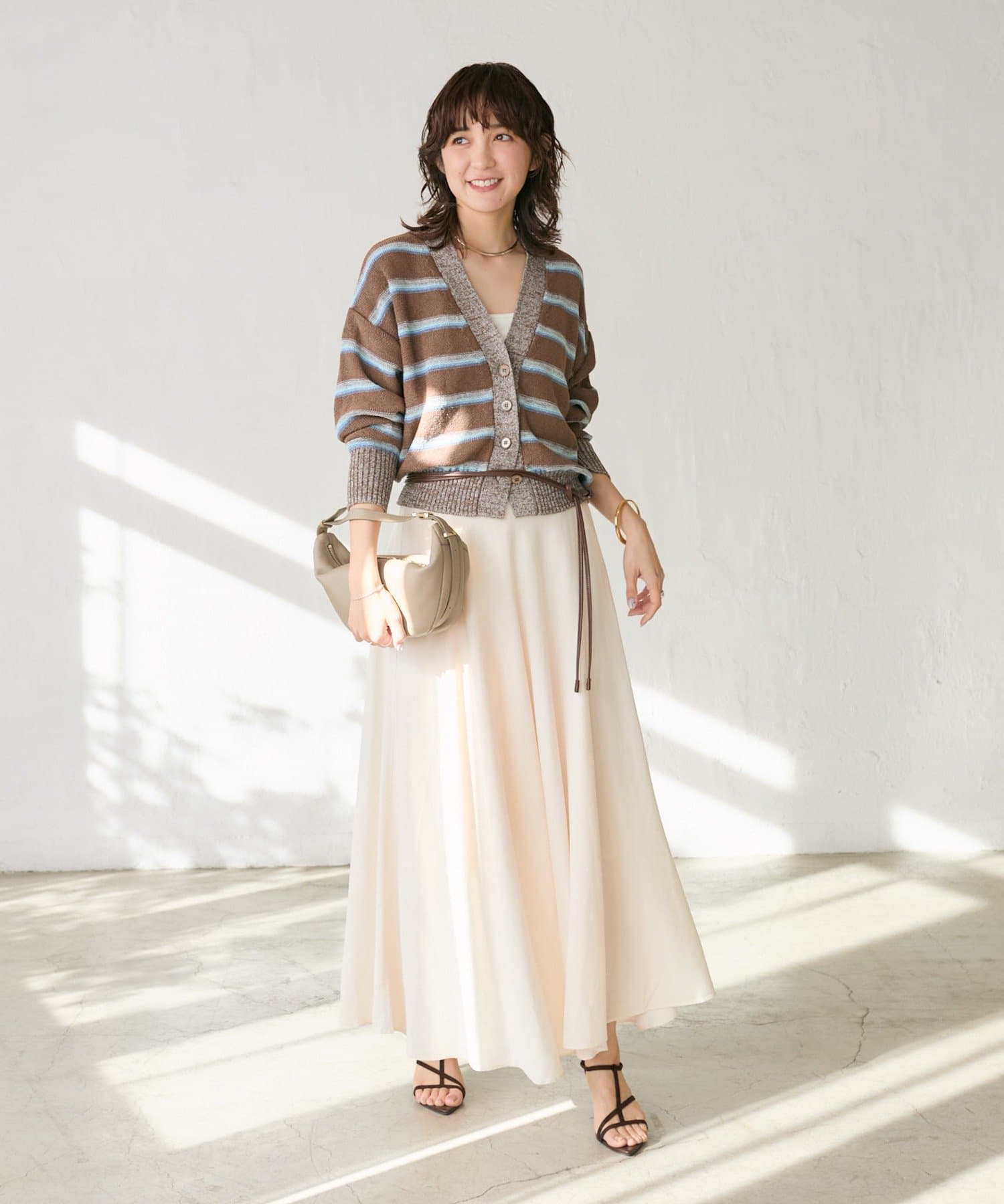 キャッチーなマルチボーダーが着こなしのアクセントに