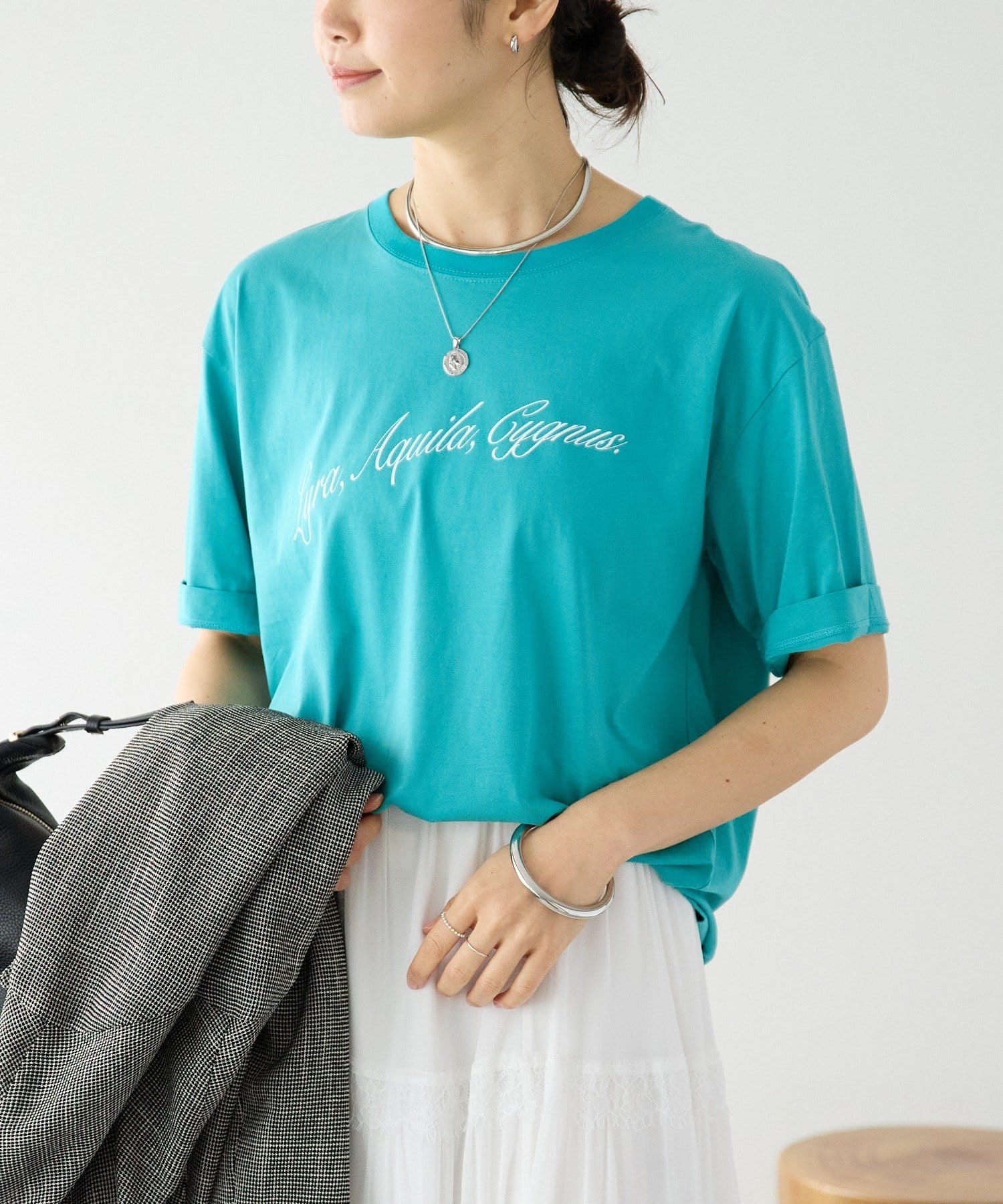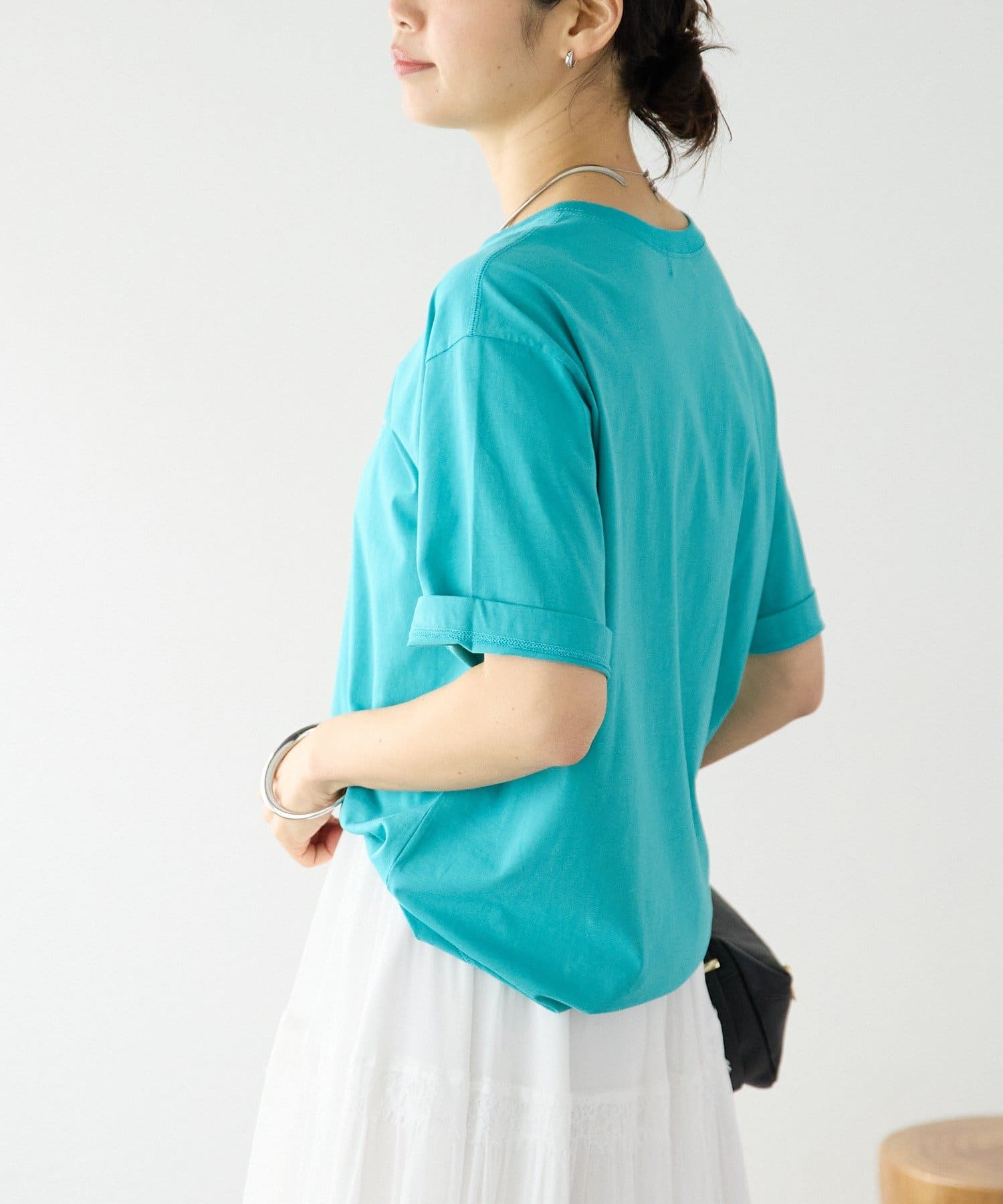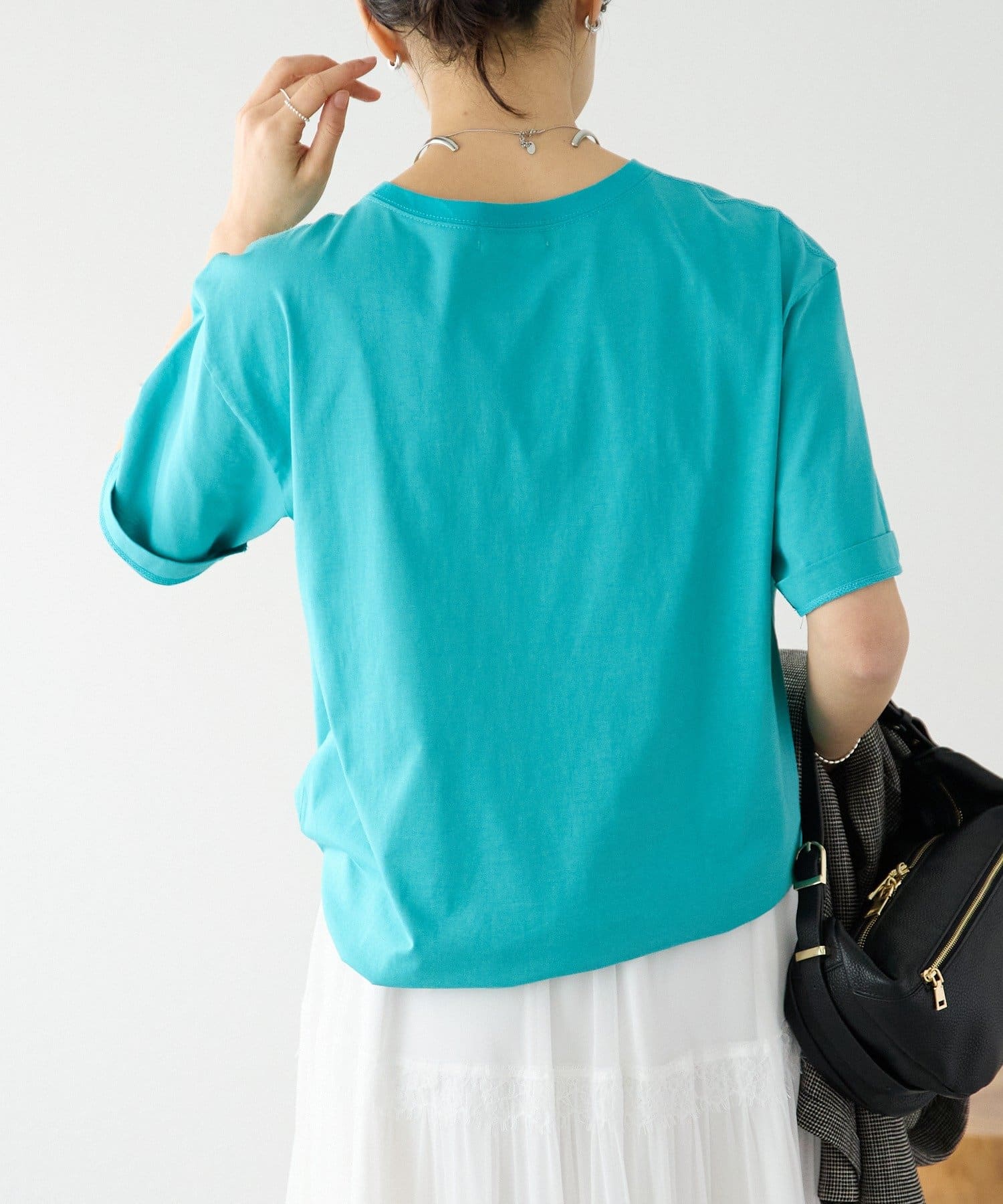 ・大きすぎず小さすぎないサイズ感で、ジャケットなどのインナーとしても使いやすい1枚