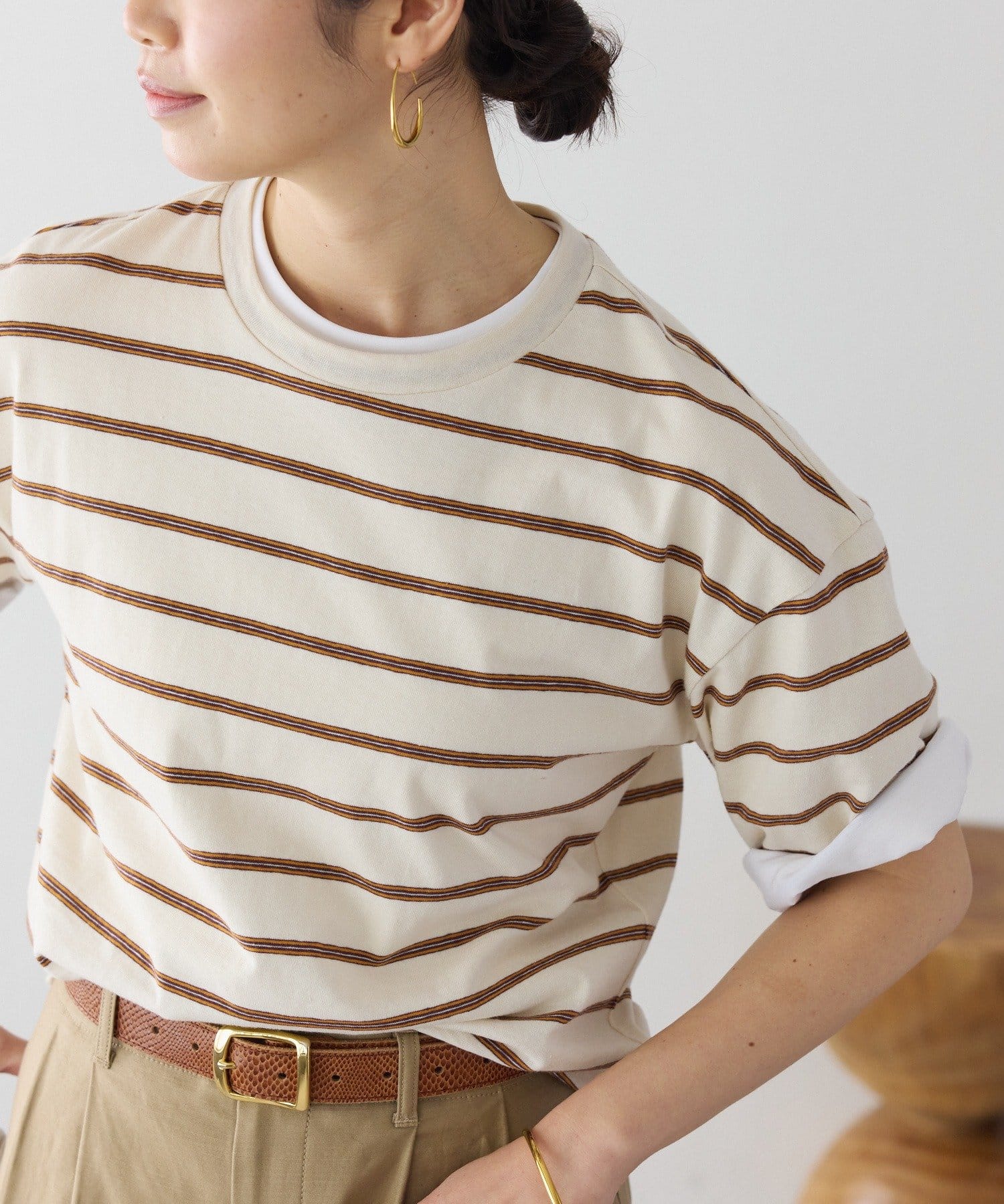 ・素材違いでお作りしたマルチボーダーゴブソデTee(RDZ1061206A0003)との重ね着もおすすめ。