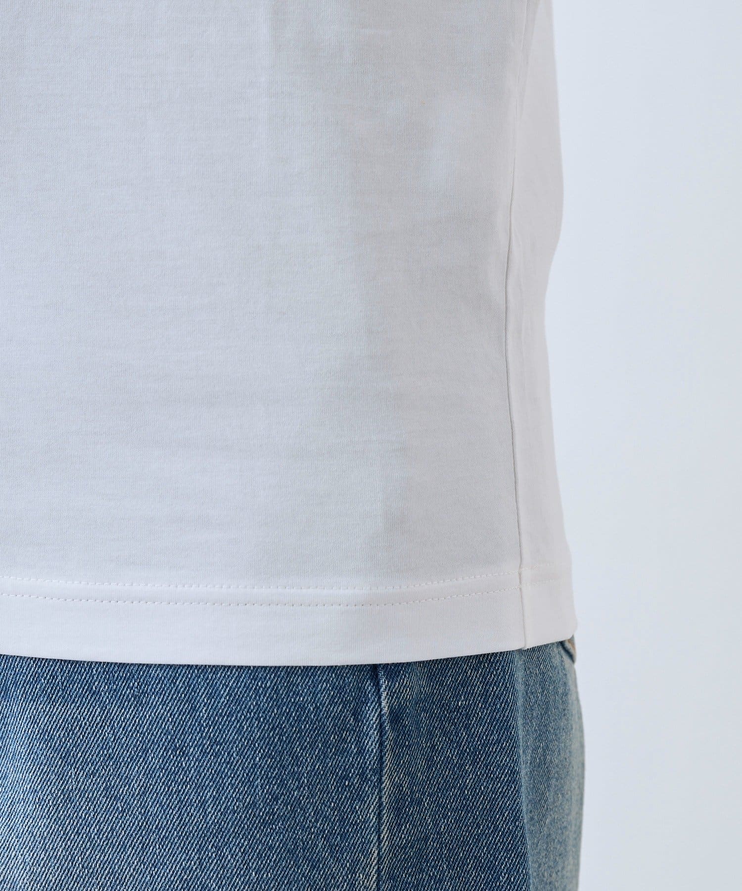 ・クリアな表面、きれいな表情のハイゲージ天竺でお作りしたクルーネックTシャツ。