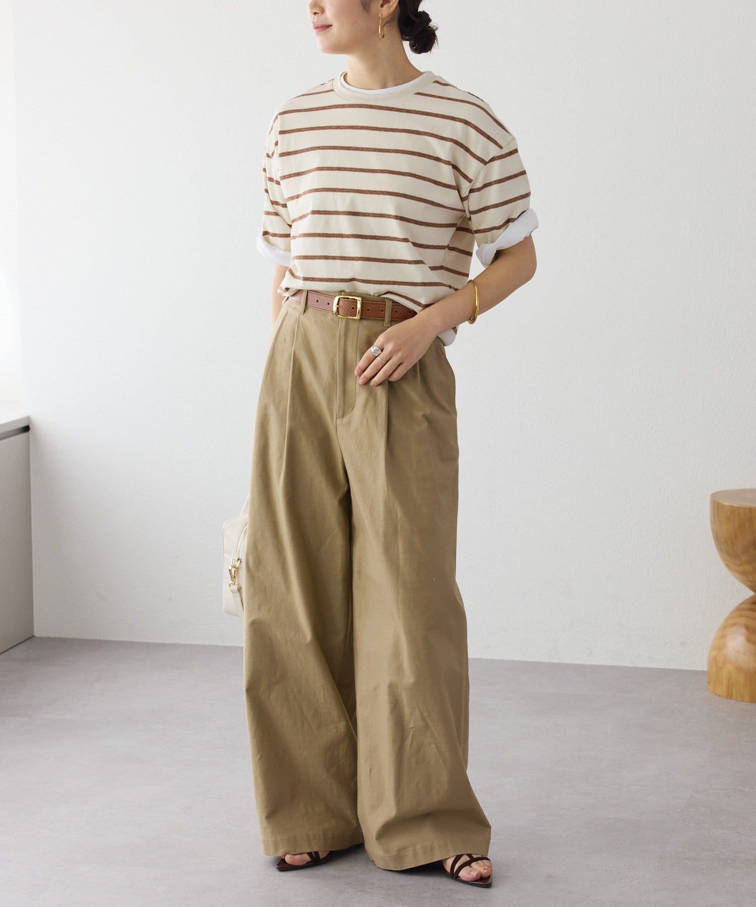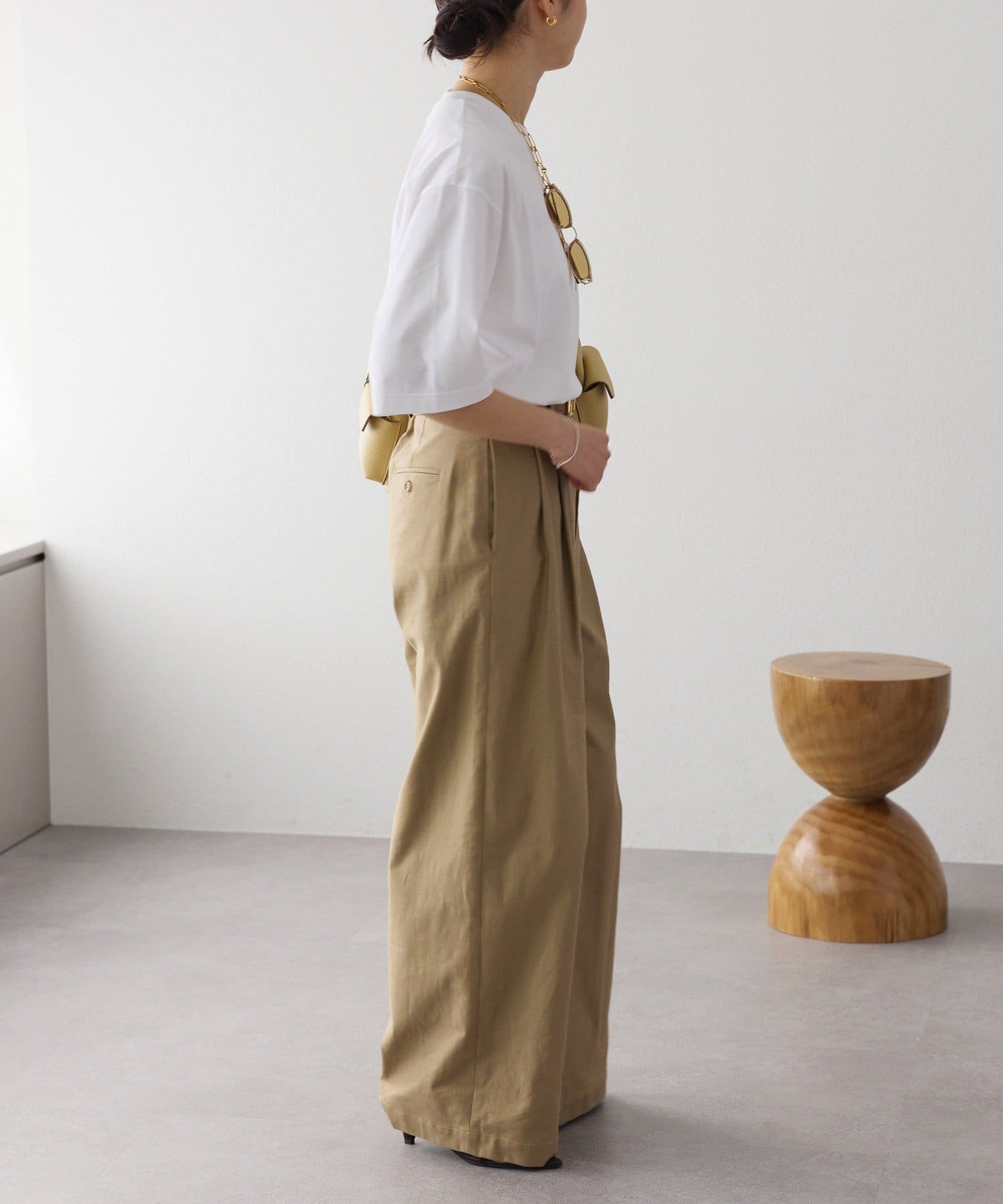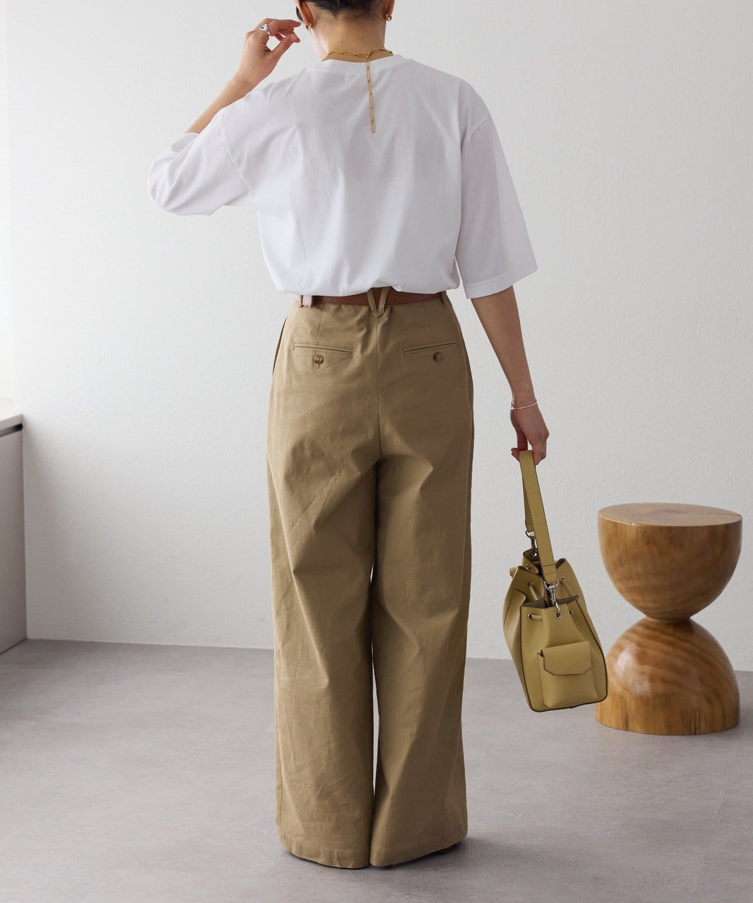 ウエストインしなくても決まりが良く、腰まわりにクシュッとしたニュアンスを付けて着こなしていただけます。