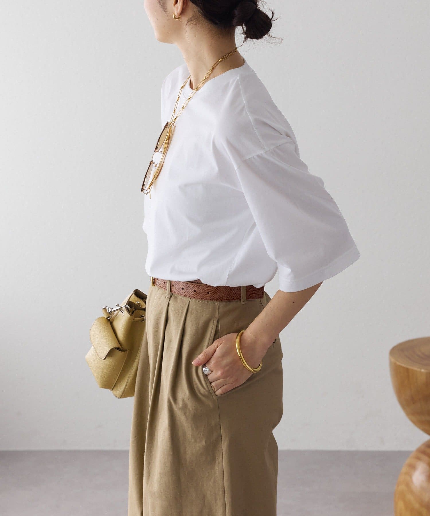 ・敢えて太く作ったスリーブでエフォートレスなムードもプラスした、大人のベーシックTシャツです。