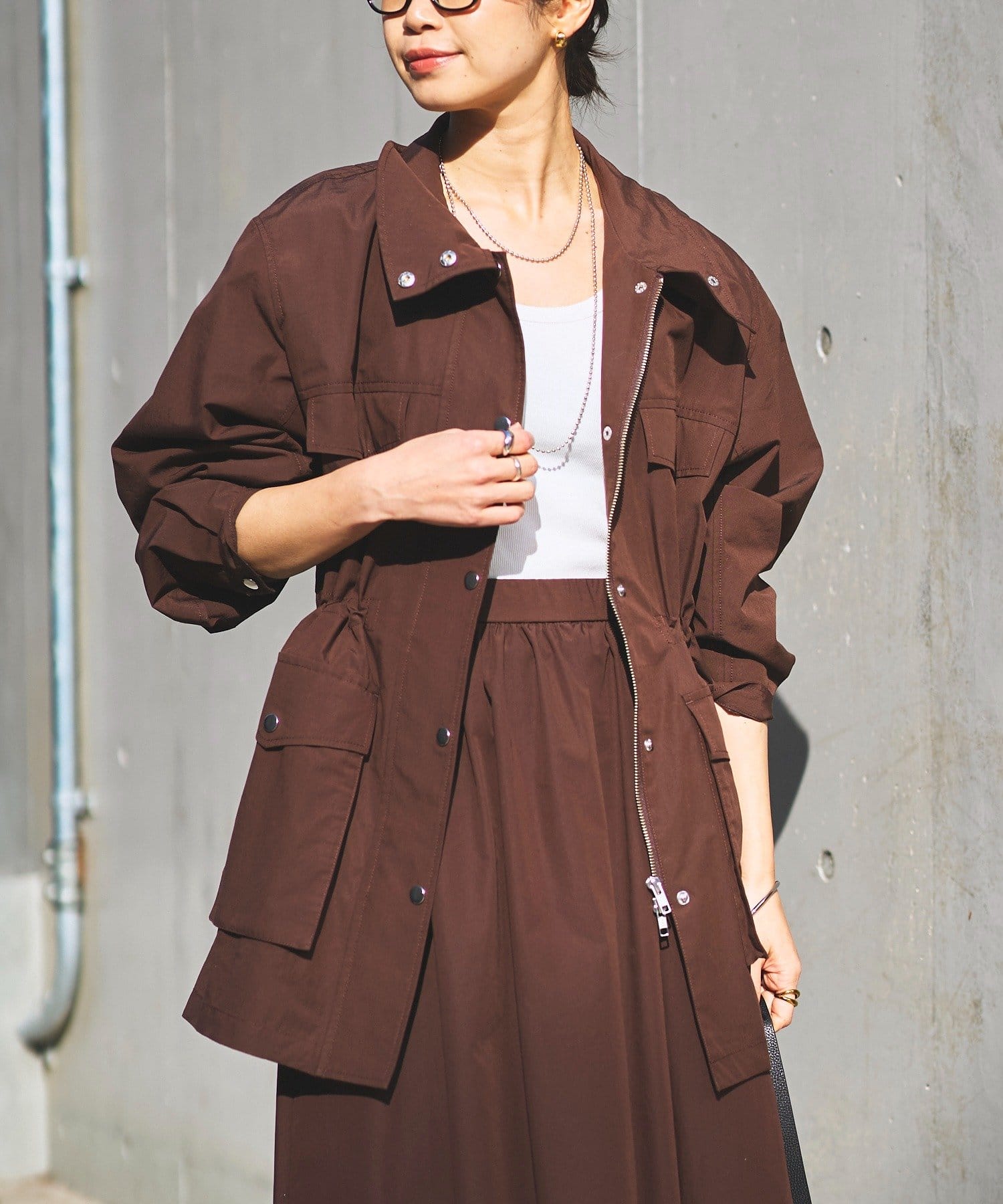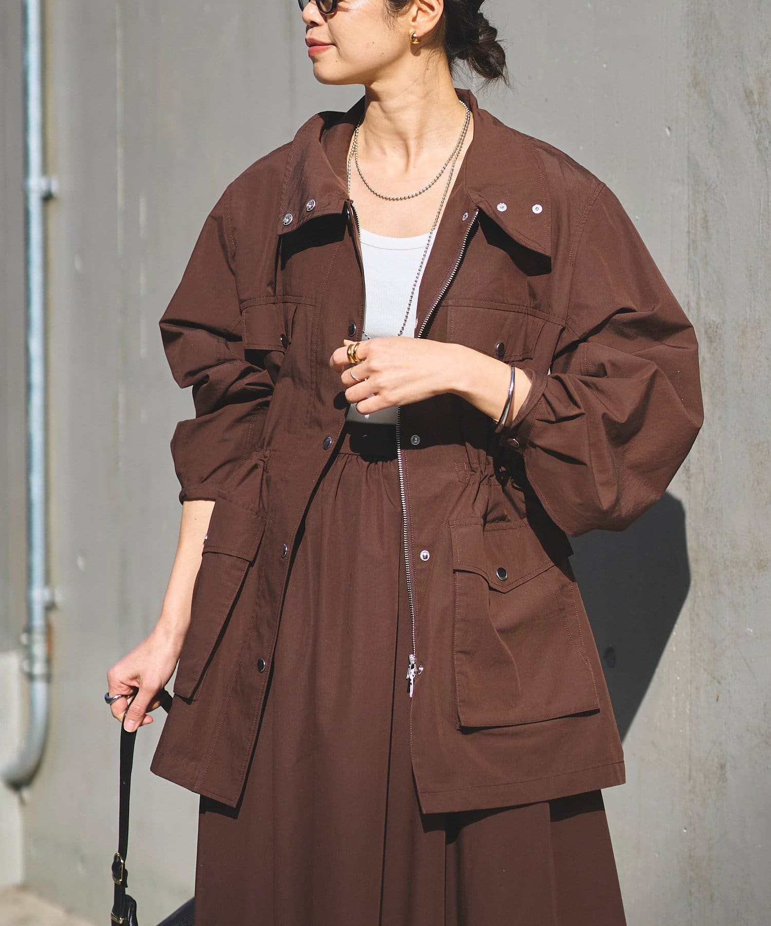 ・ダブルジップとウエストのドロスト、袖口のスナップでシルエットや着こなしのアレンジも可能