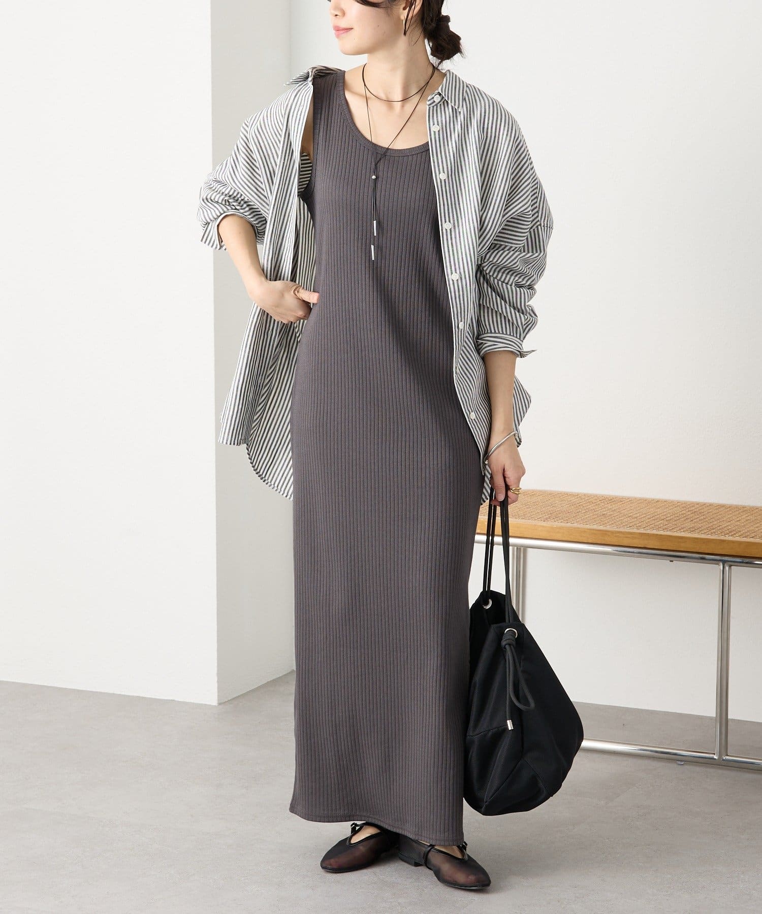 予約【接触冷感・UVカット機能付き/シリーズ累計販売数10000枚突破!/全骨格細見え/レビュー高評価☆】2WAYリブタンクワンピース/3月下旬お届け予定