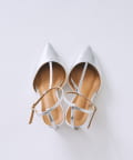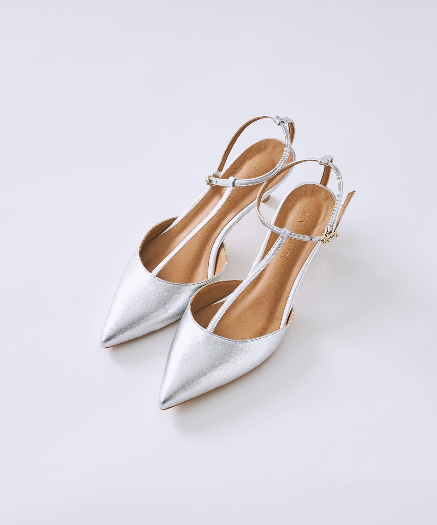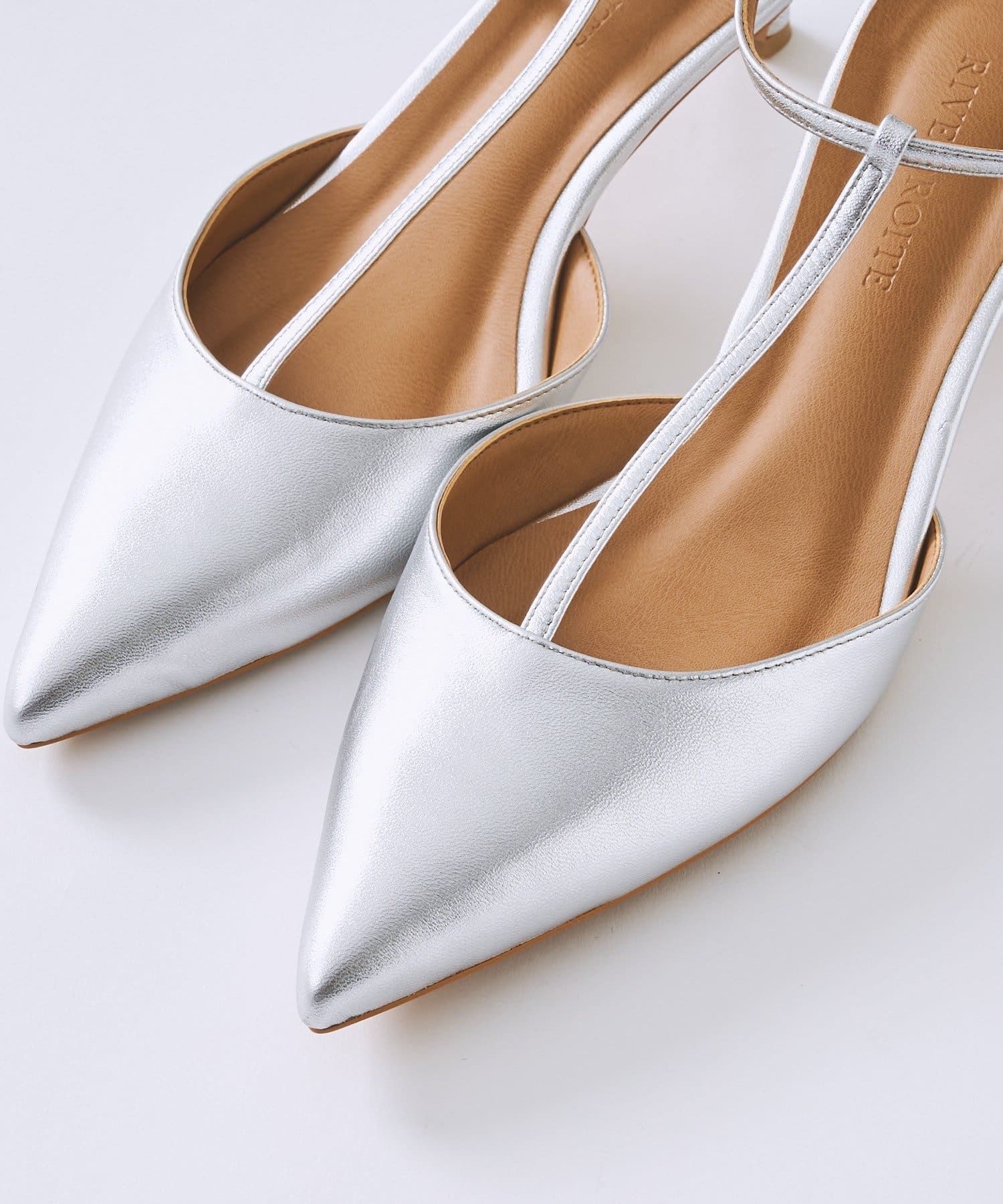 シルバーカラーとT字ストラップが女性らしい抜け感を演出