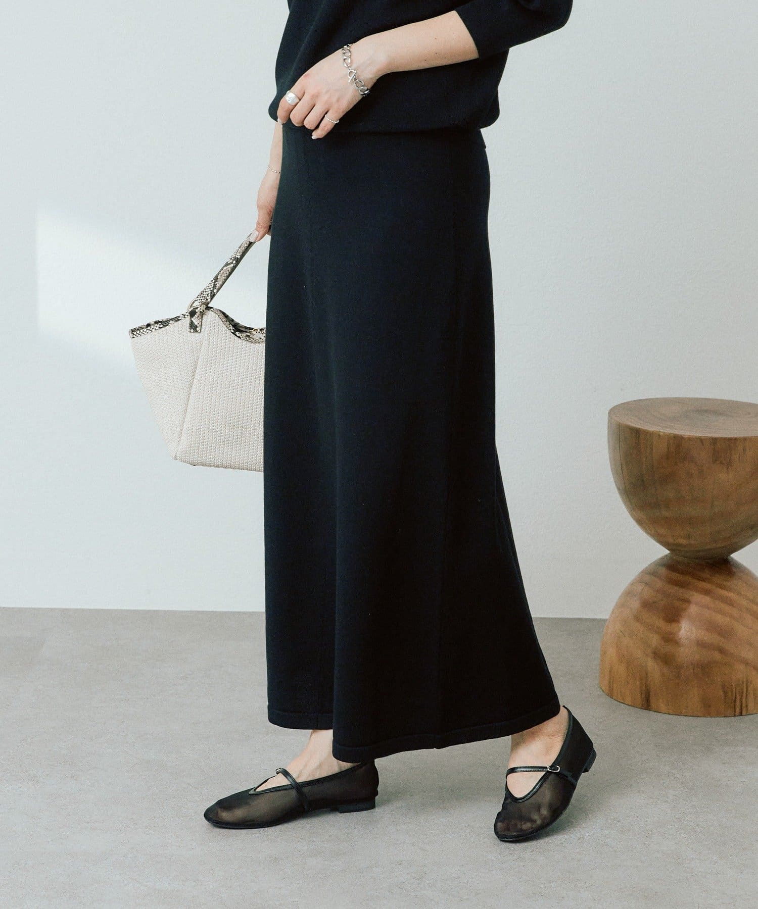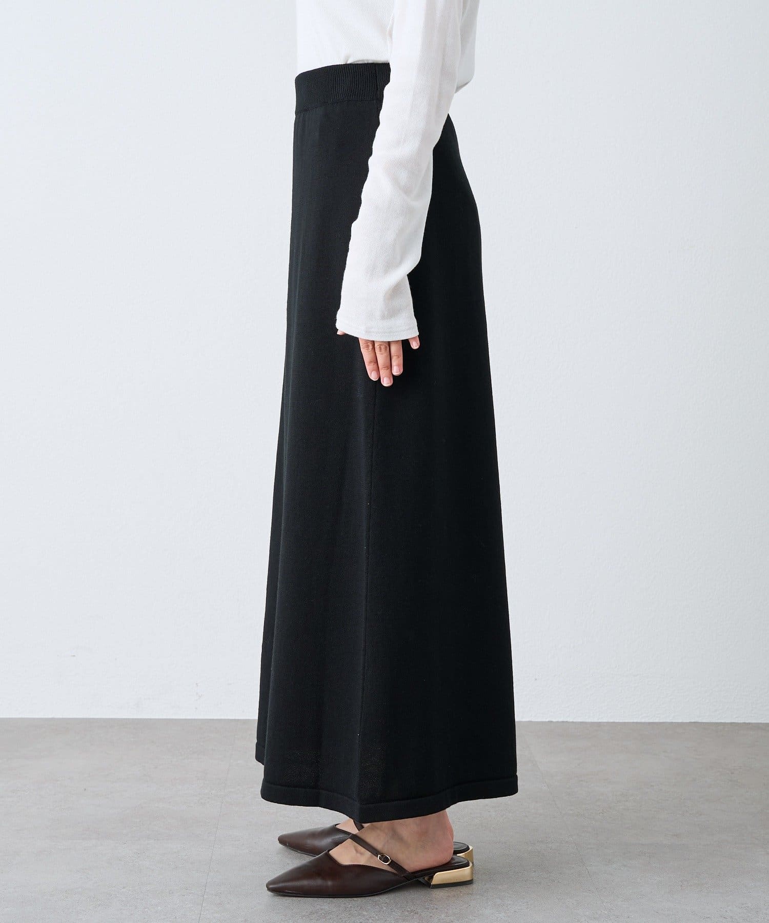 ・ハイゲージの天竺を4枚ハギにしたセミマーメイドシルエット。