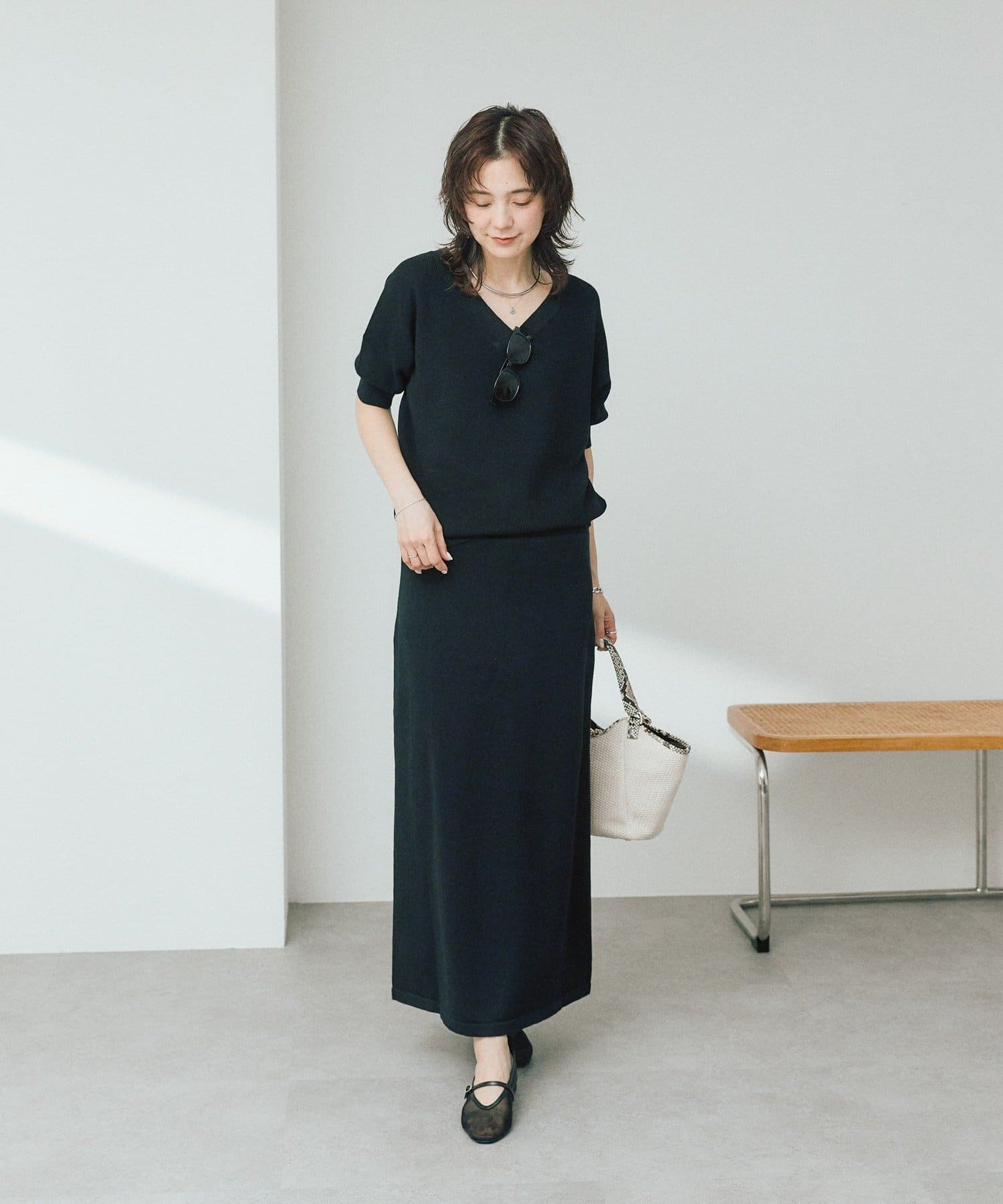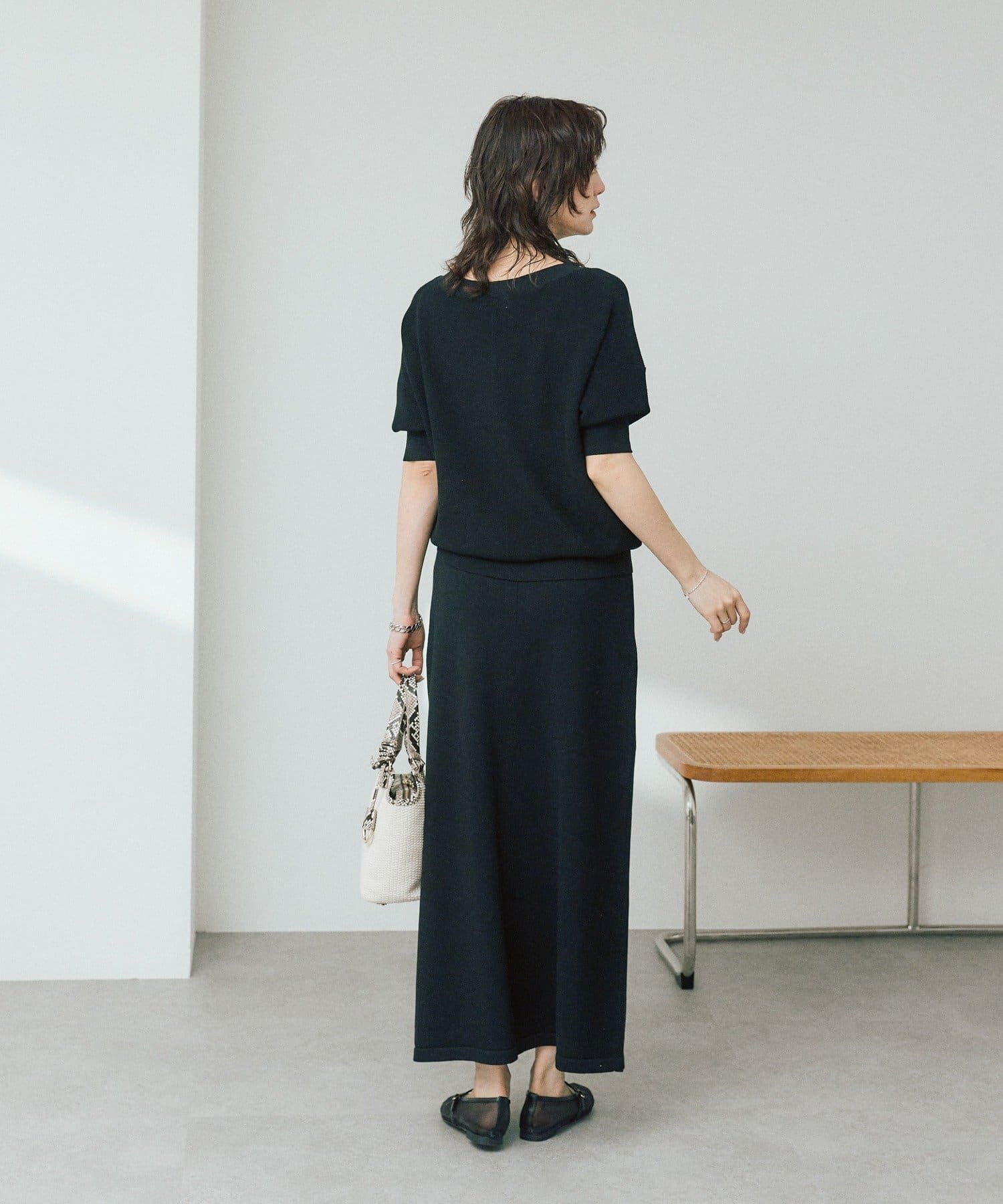 • 同素材でお作りしたニットとセットアップで着用可能