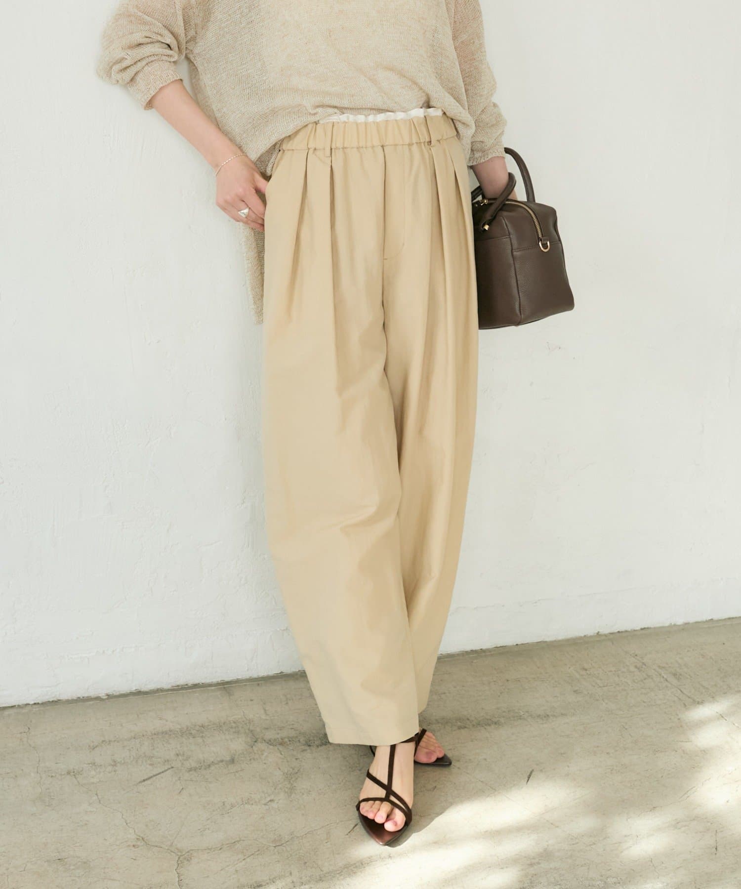 トレンド感のある大人のバレルパンツ