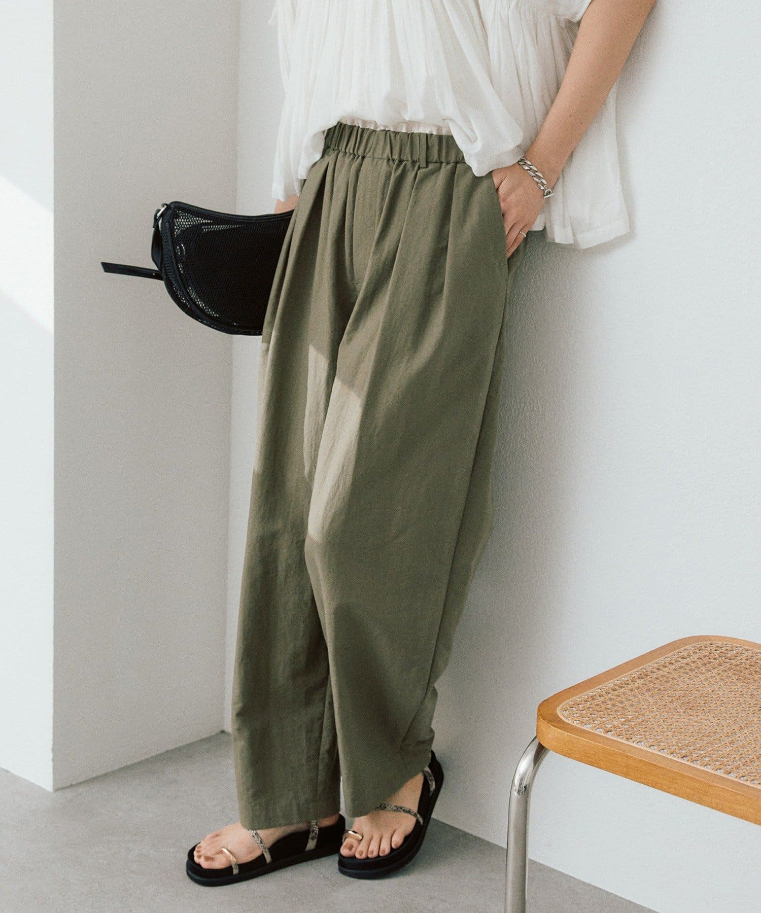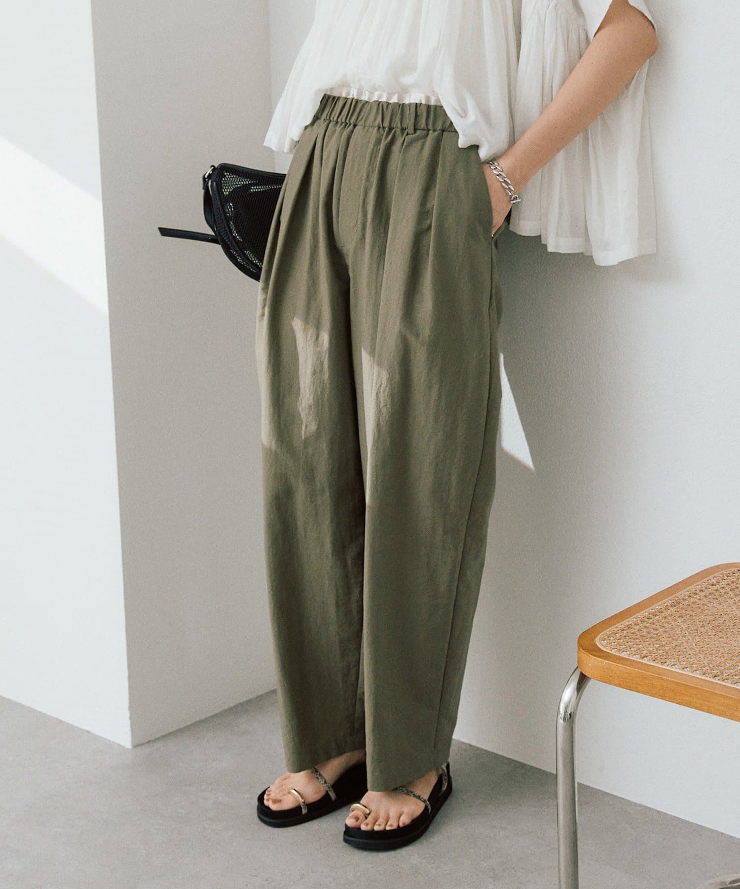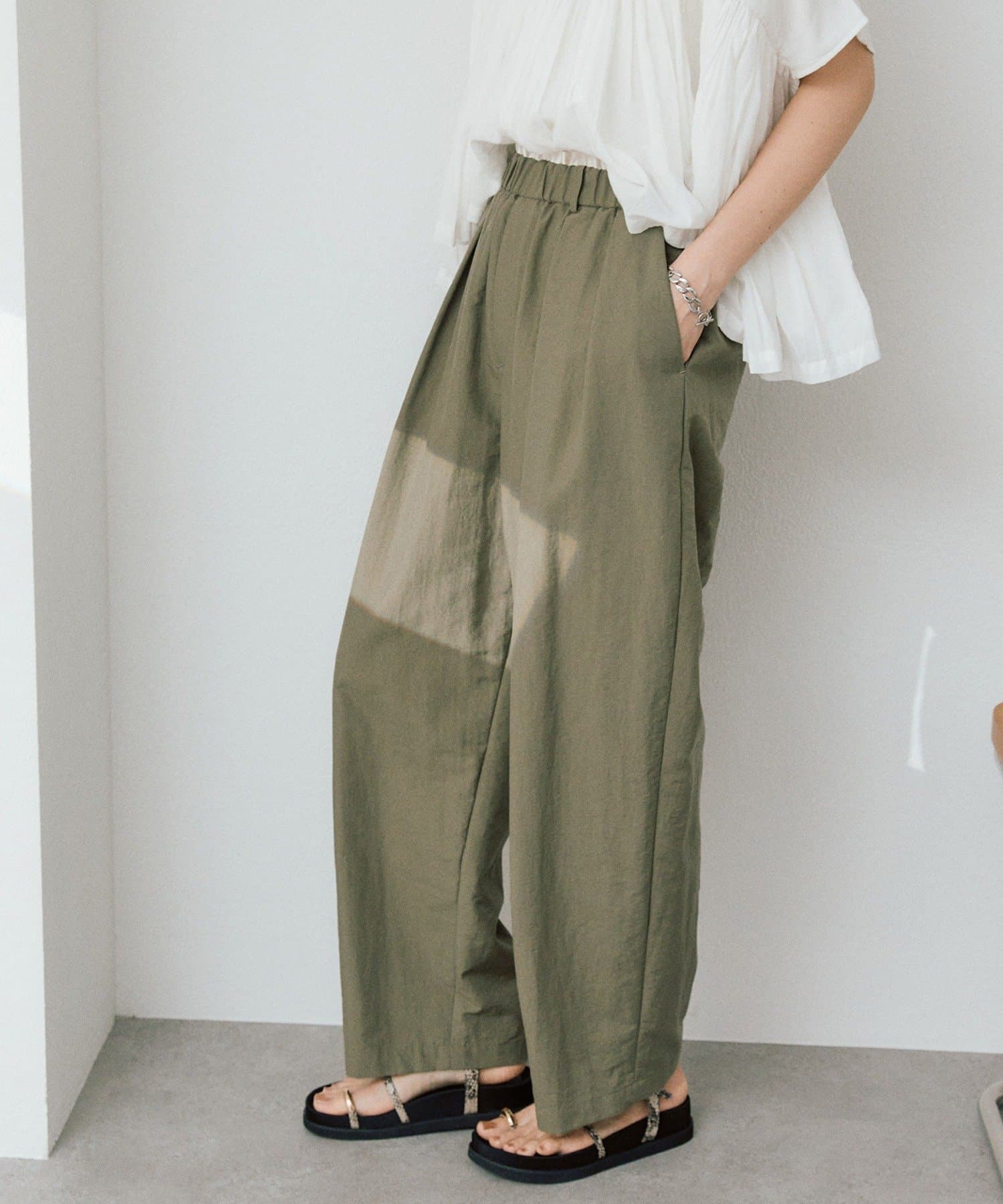 ・ウエストギャザーでイージーな履き心地