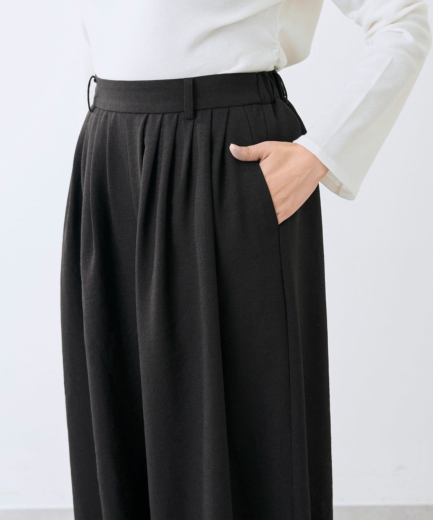 ・後ろゴムでイージーに履いていただけて、ベルトループもあるのでウエストマークもしていただけます