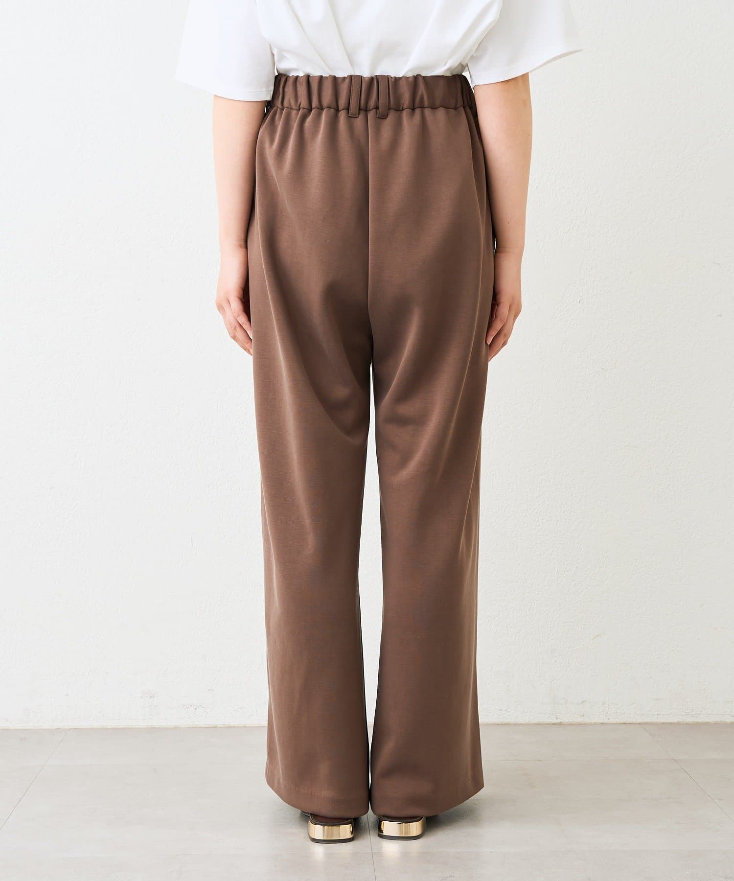 ・ウエストゴムでイージーな履き心地のタックワイドパンツ