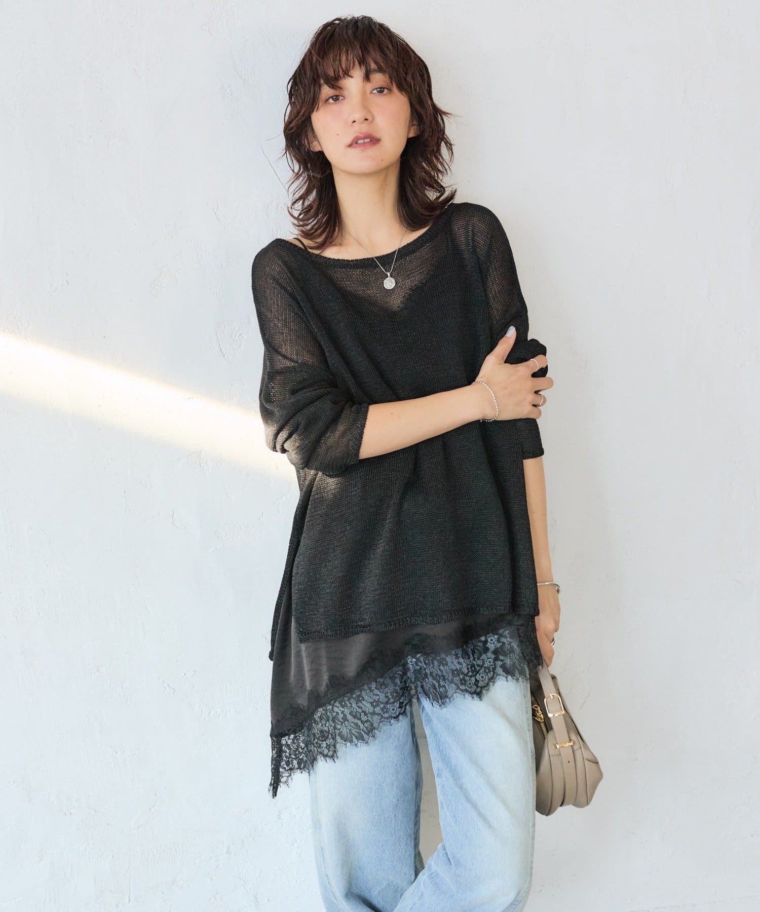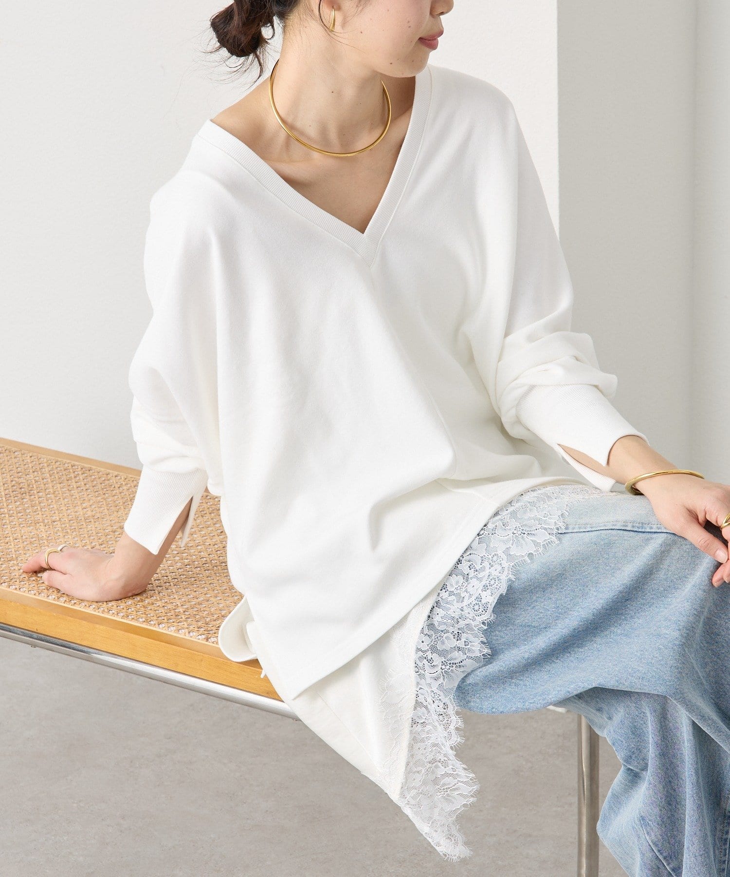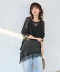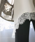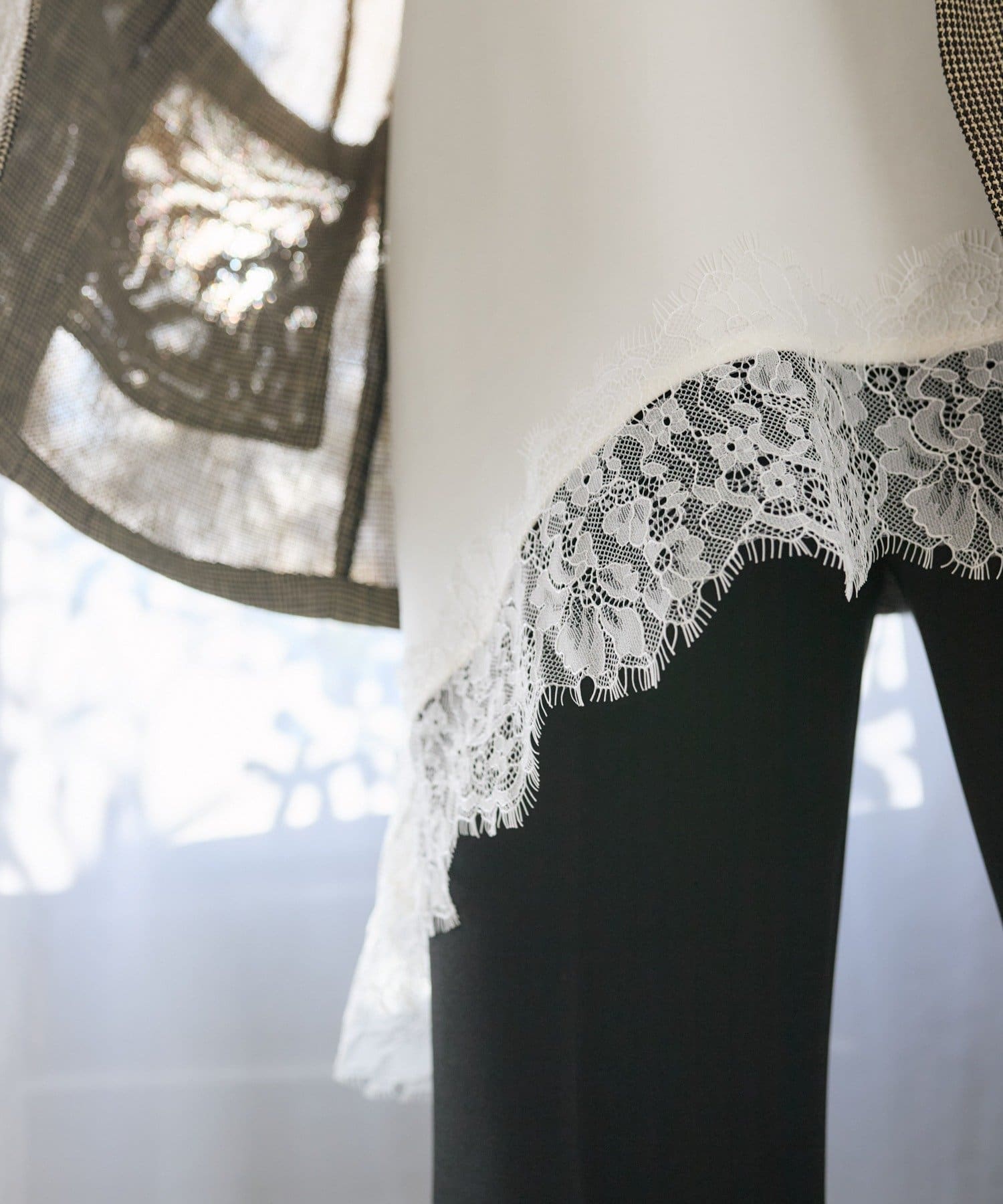 • 斜めになったヘムラインとレースのあしらいがトレンド感たっぷり