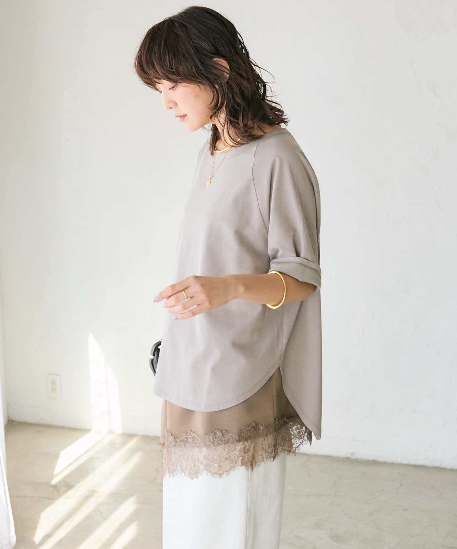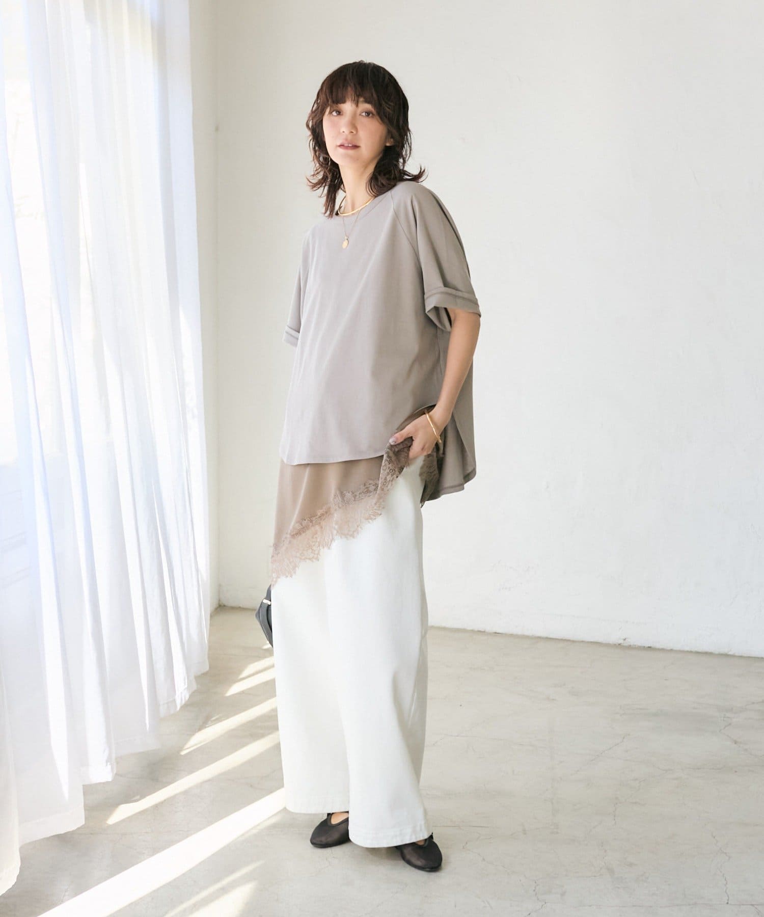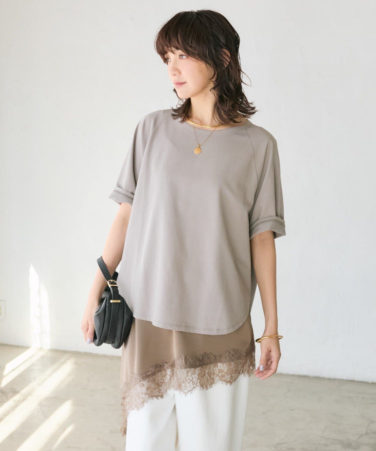 • 斜めになったヘムラインとレースのあしらいがトレンド感たっぷり