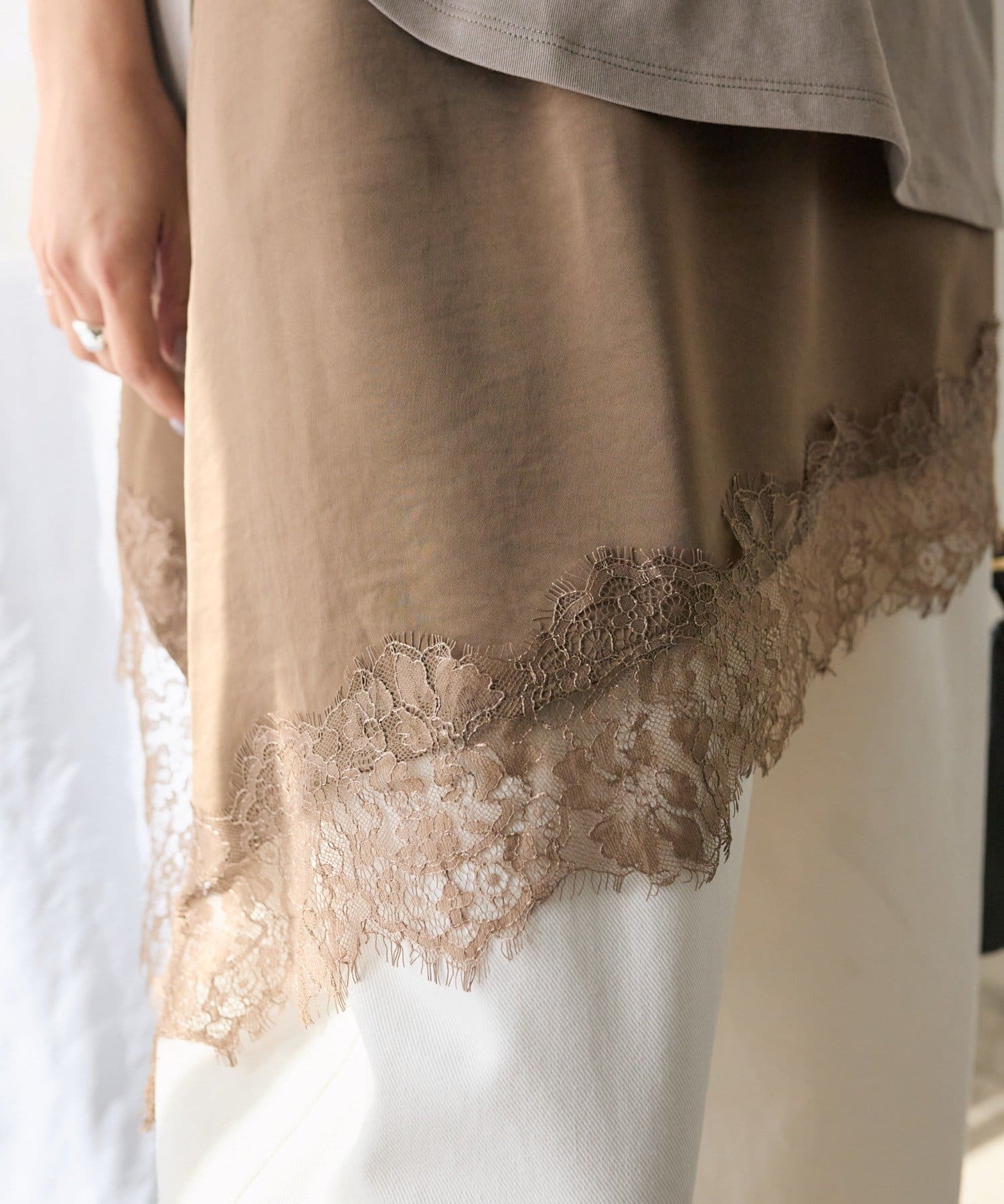 ・斜めになったヘムラインとレースのあしらいがトレンド感たっぷりのキャミソール