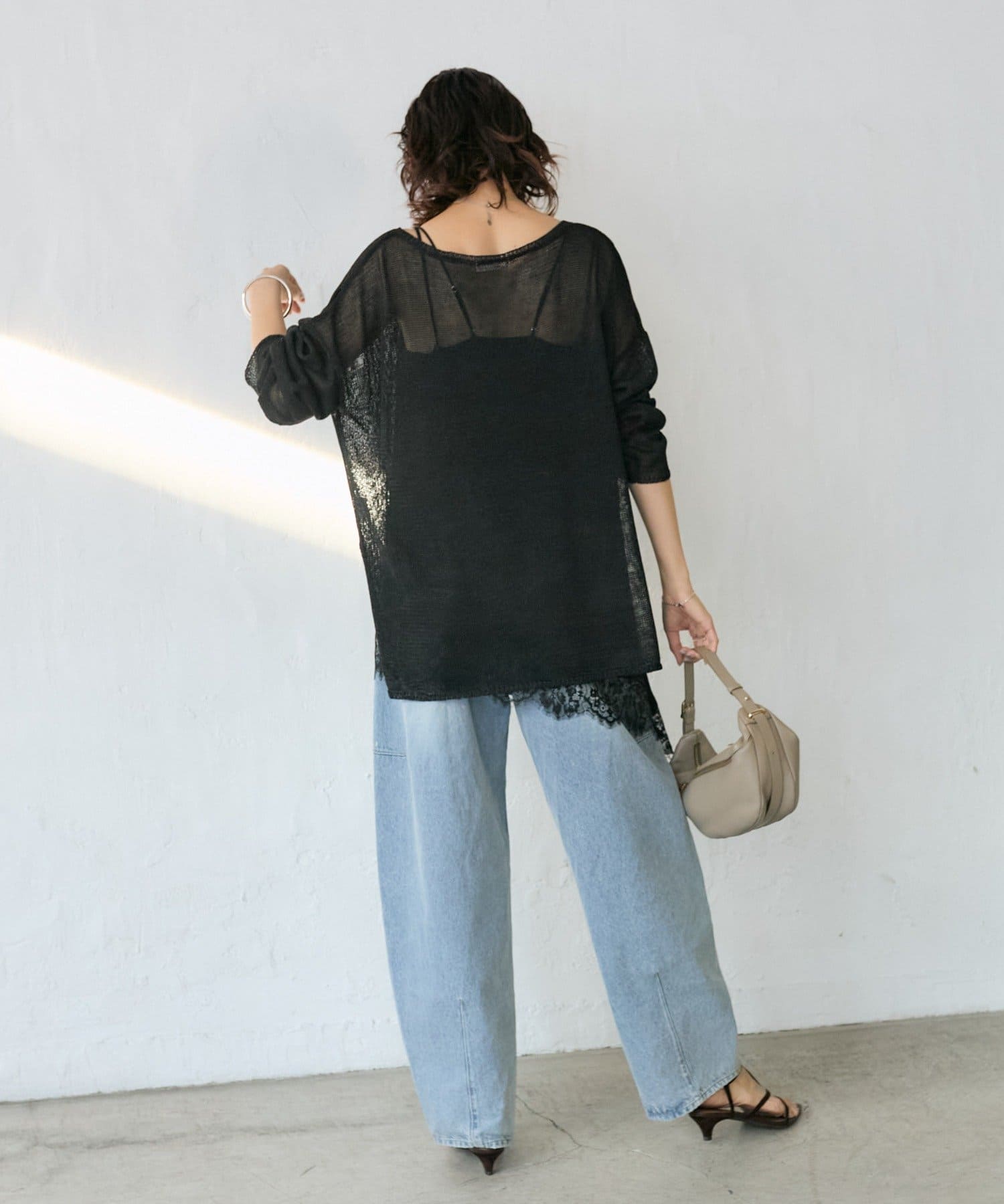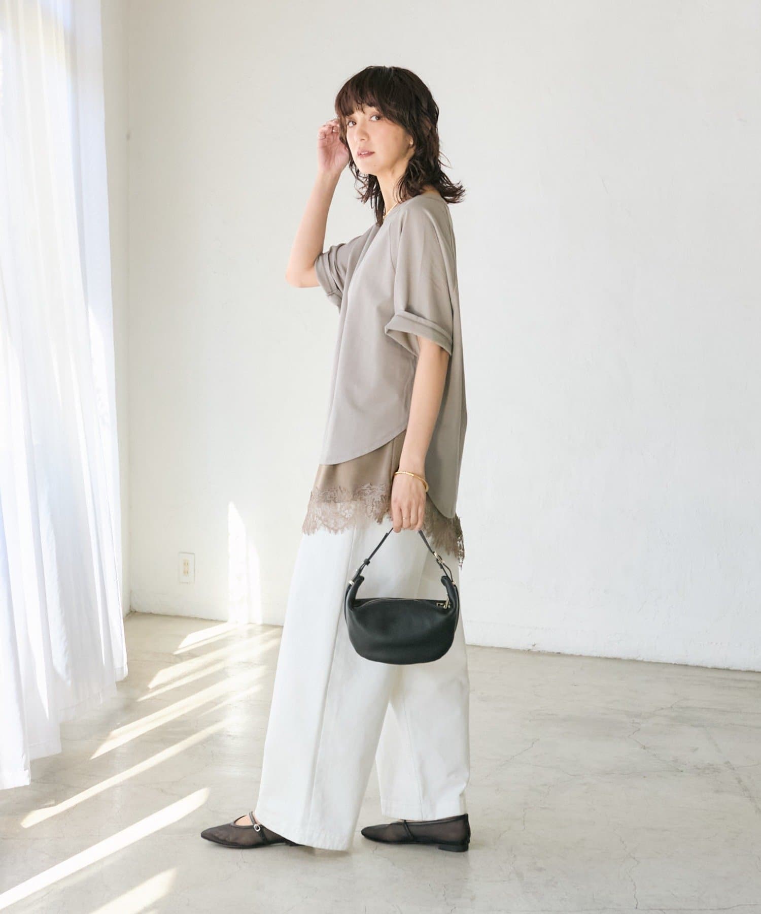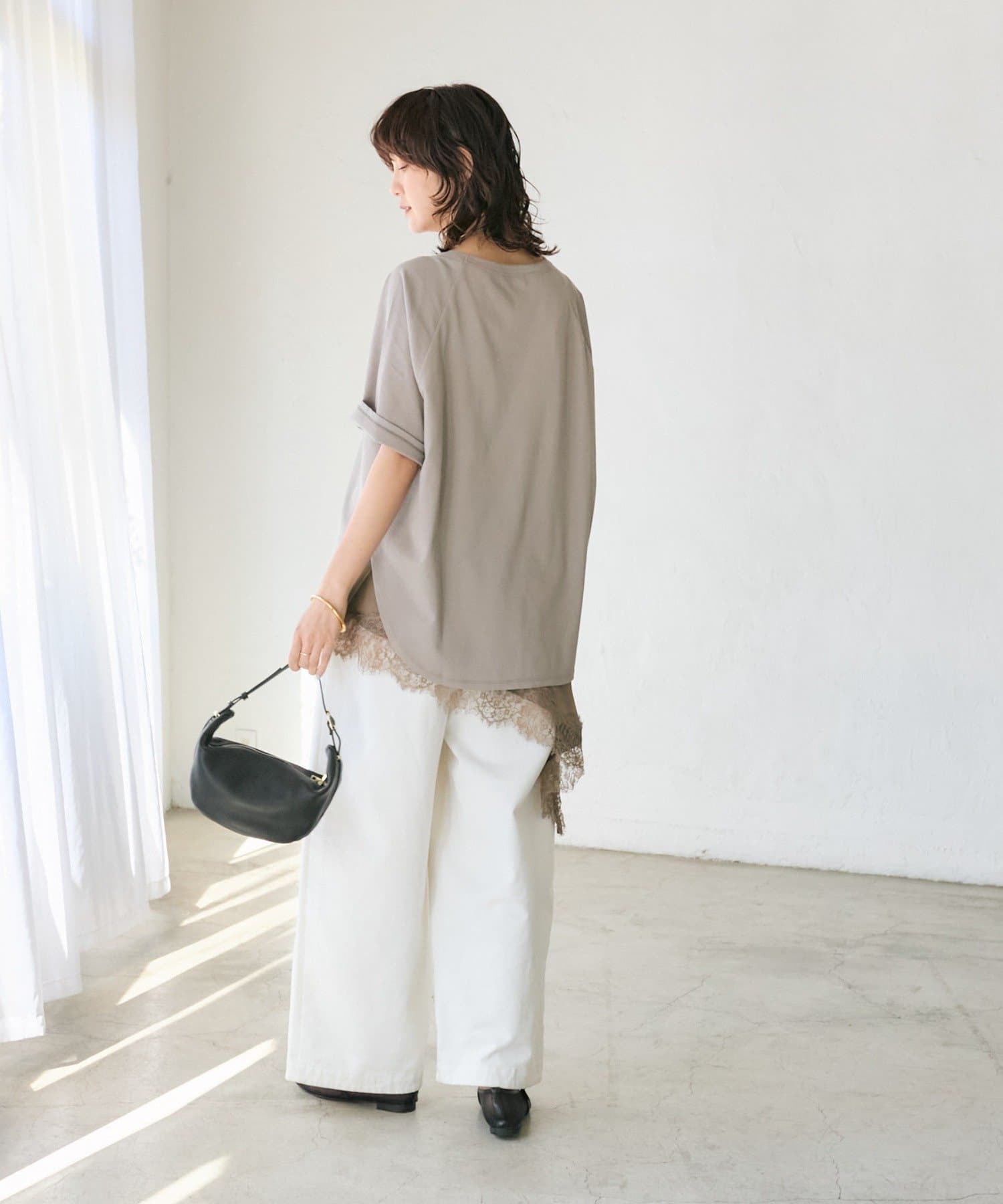 ・Tシャツやタンクトップの上から重ねていただいても様になるように上端にもレースをあしらい華やかな印象に