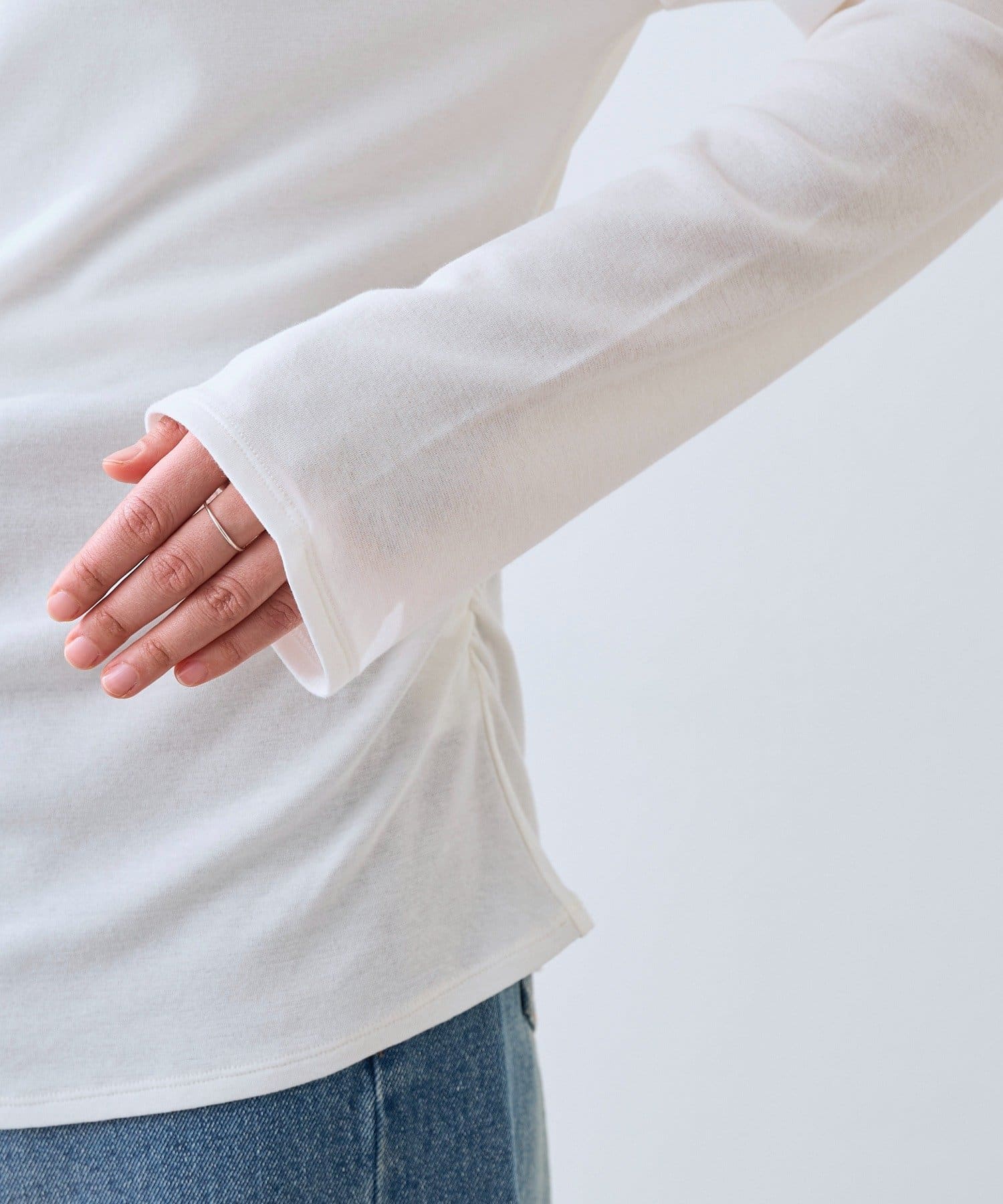 ・高級綿スペリオールピマコットンをハイゲージに編み上げた、透けにくく膨らみのある素材。