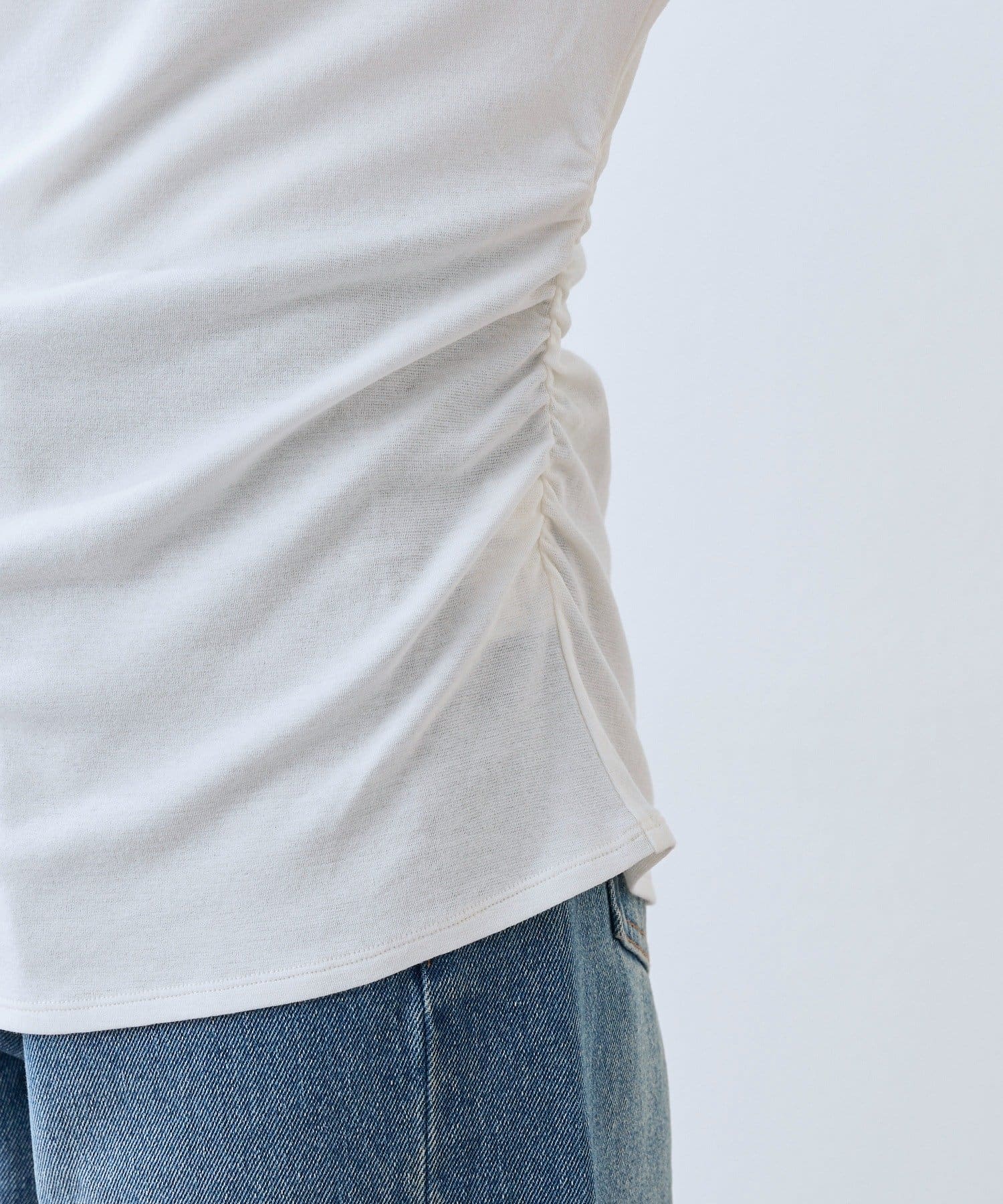 • 脇にはシャーリングをほどこし、ニュアンスのあるウエストラインを表現