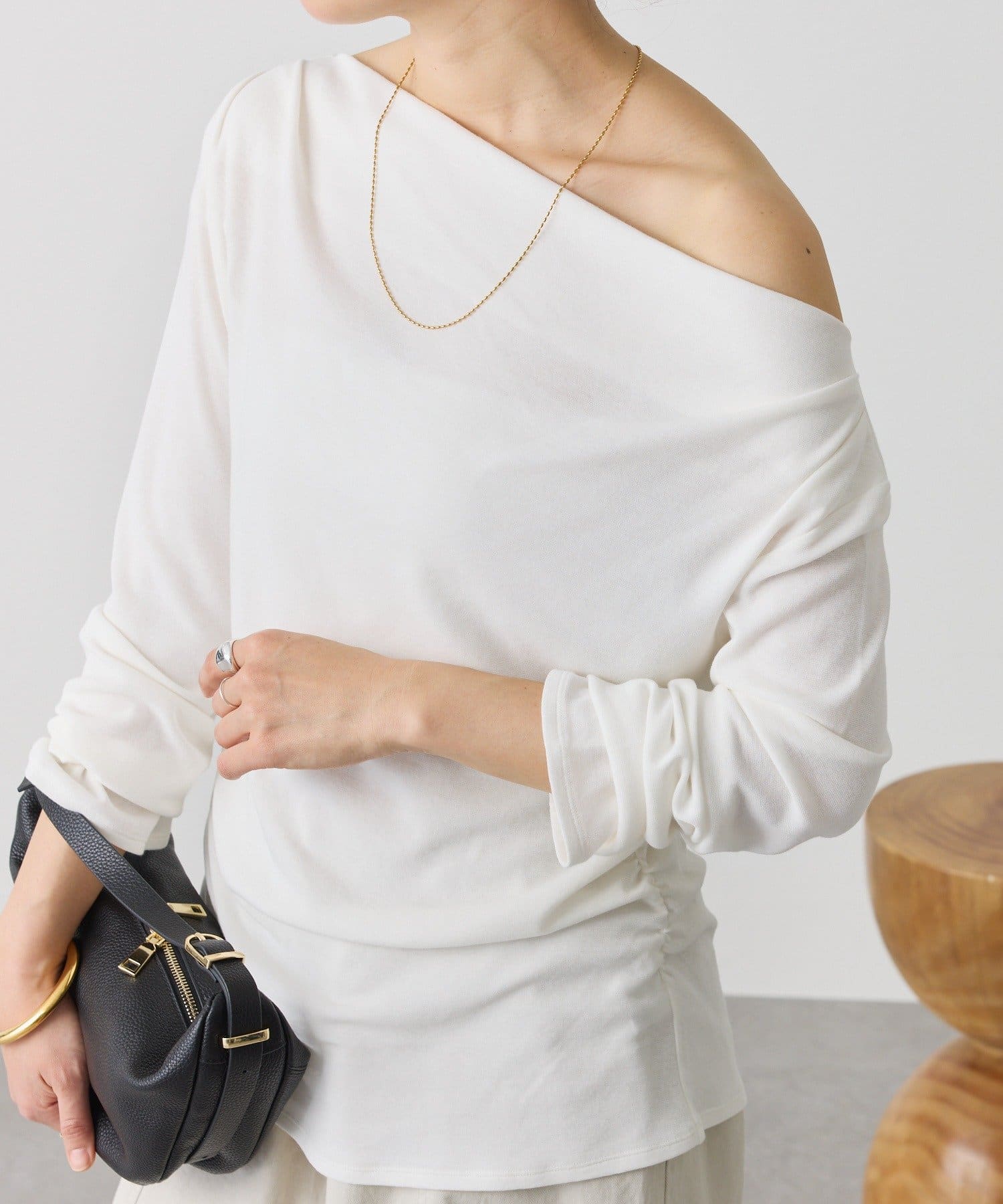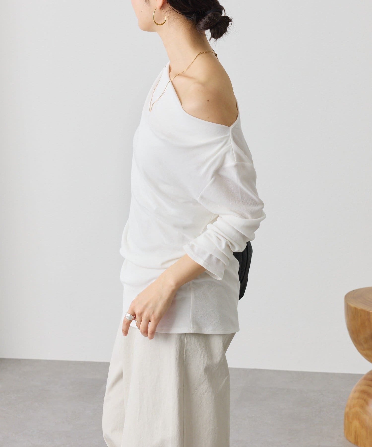 ・ワンショルやオフショルとしても着用いただけるネックコンシャスなデザインです。