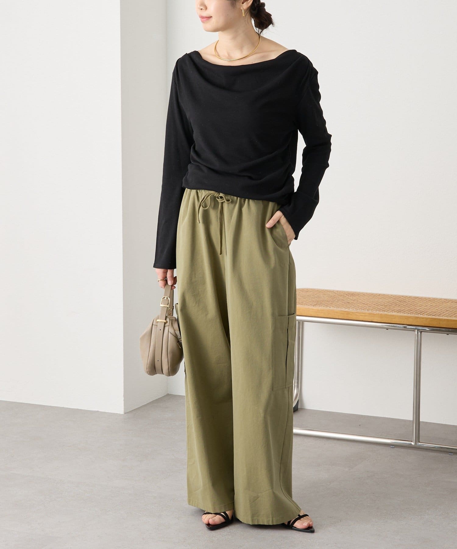 ・ドレーピーな衿元が女性らしさを演出してくれるカットソー。