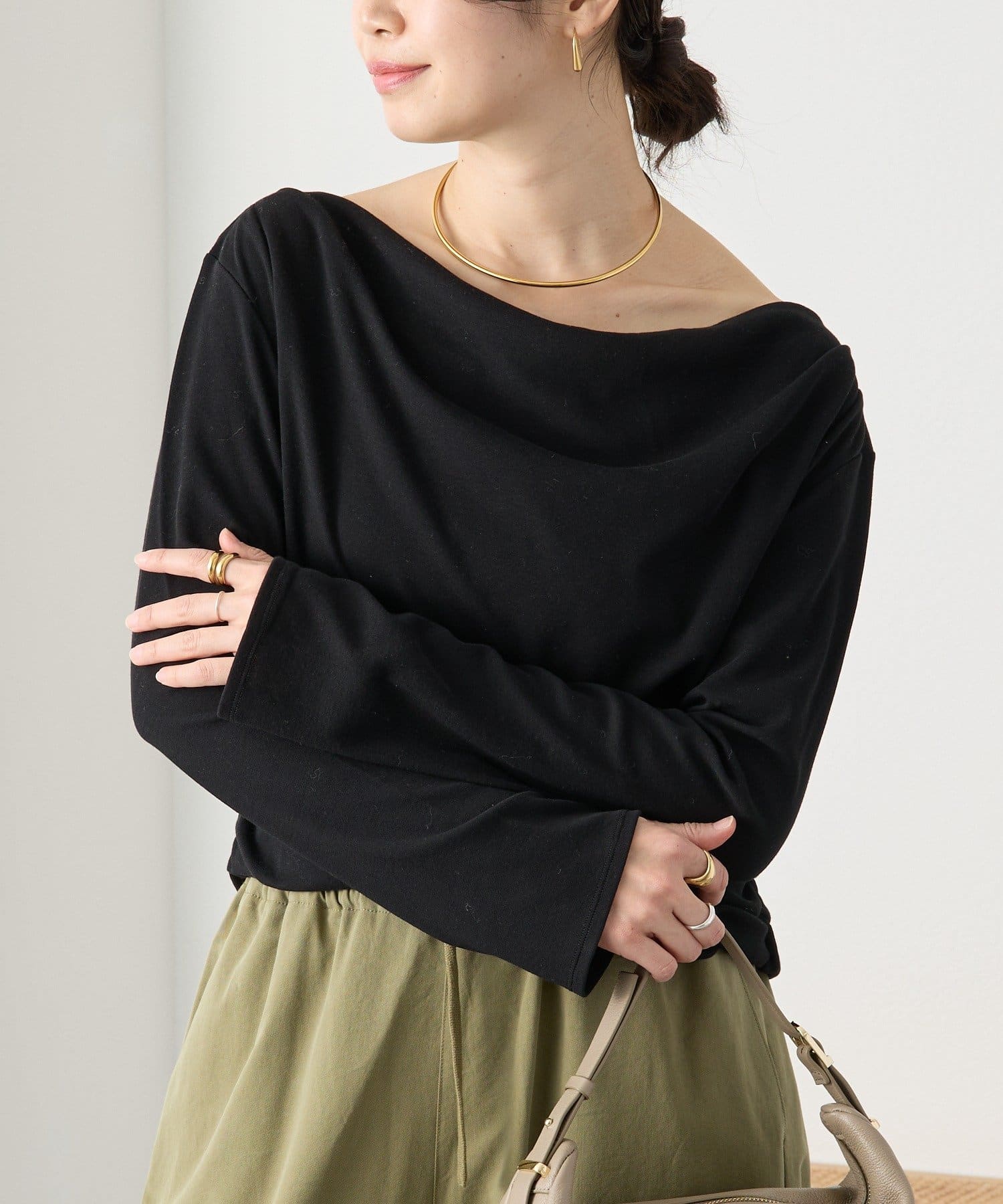 • ドレーピーな衿元が女性らしさを演出してくれるカットソー