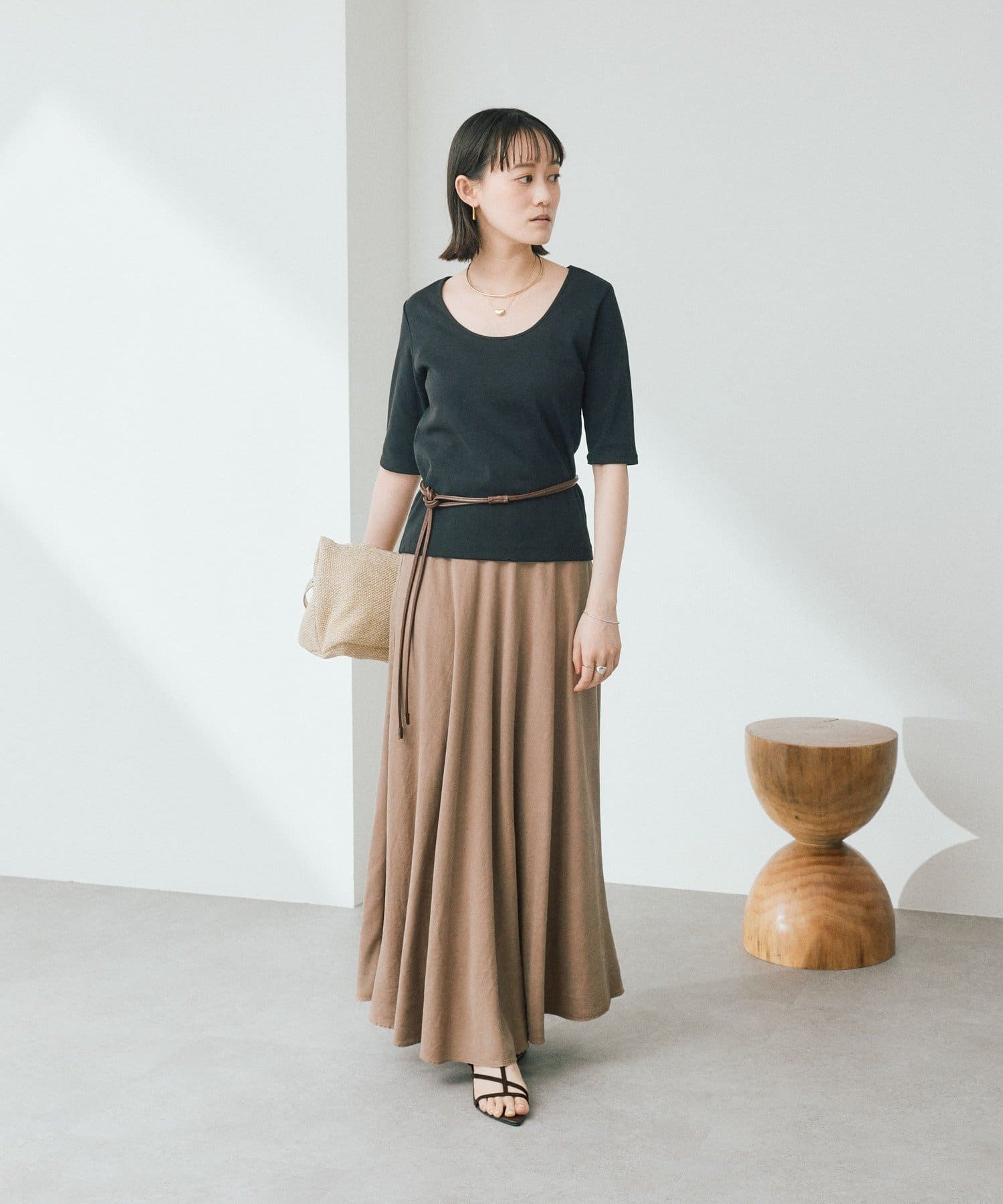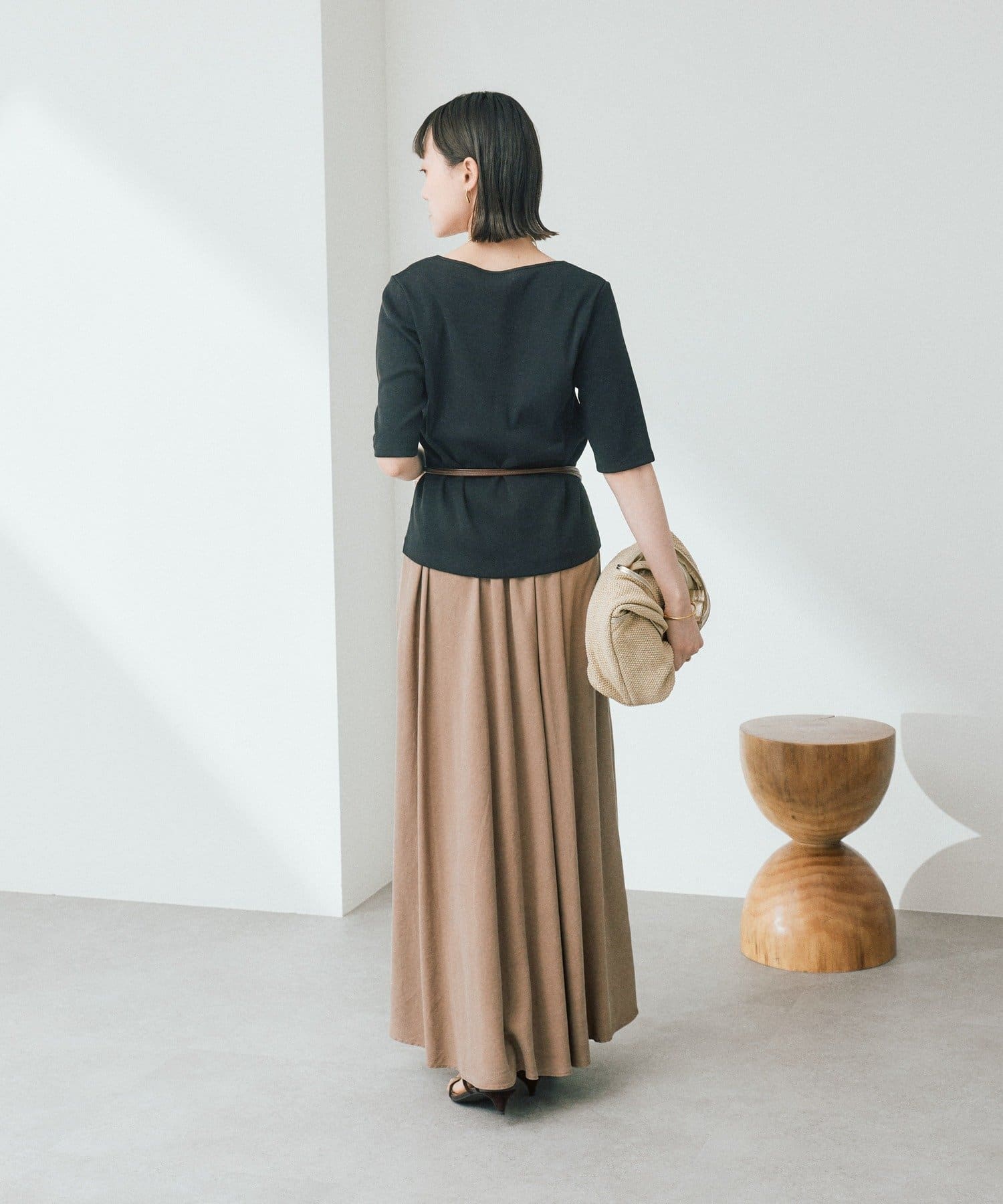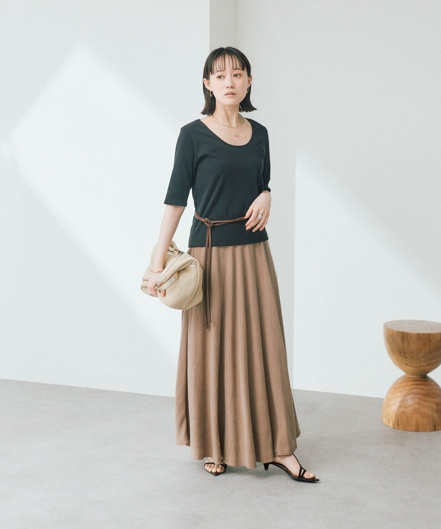 ・体のラインを拾いにくい素材感で、すっきりしながらも安心感のある着心地です