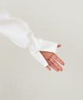 • 袖を捲った時にもアクセントになる長めの袖リブもデザインポイント