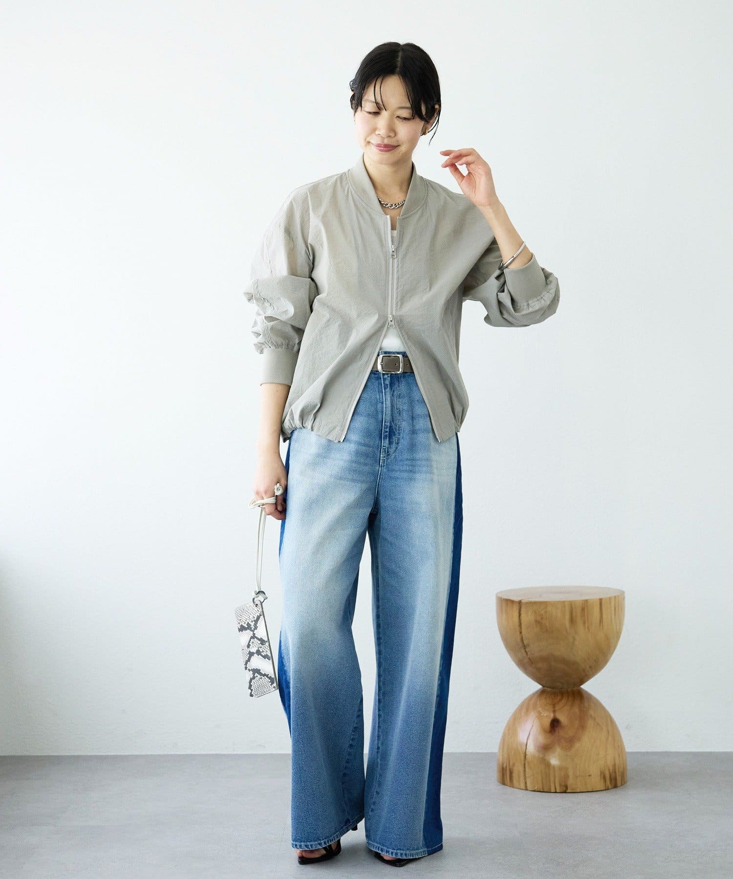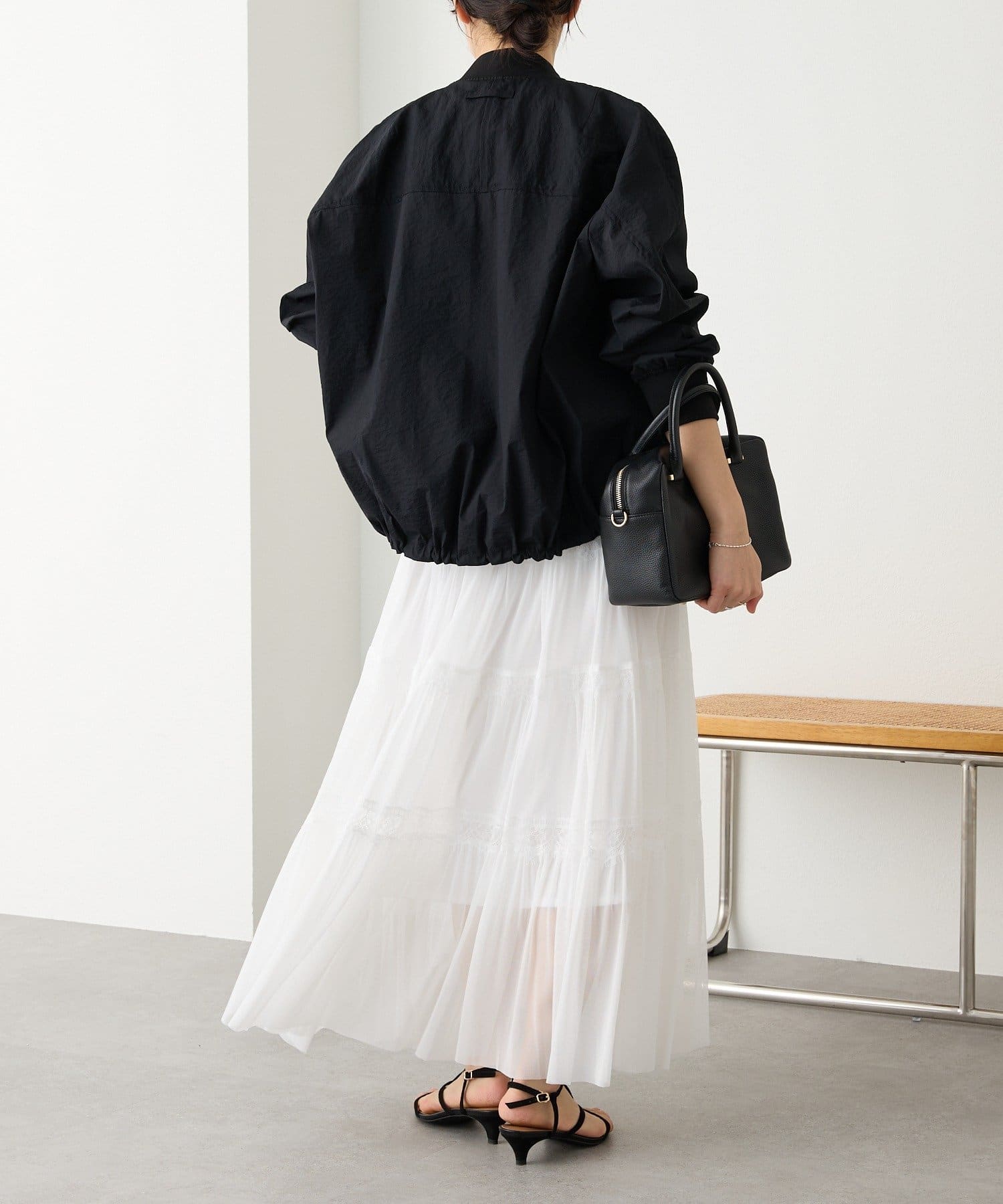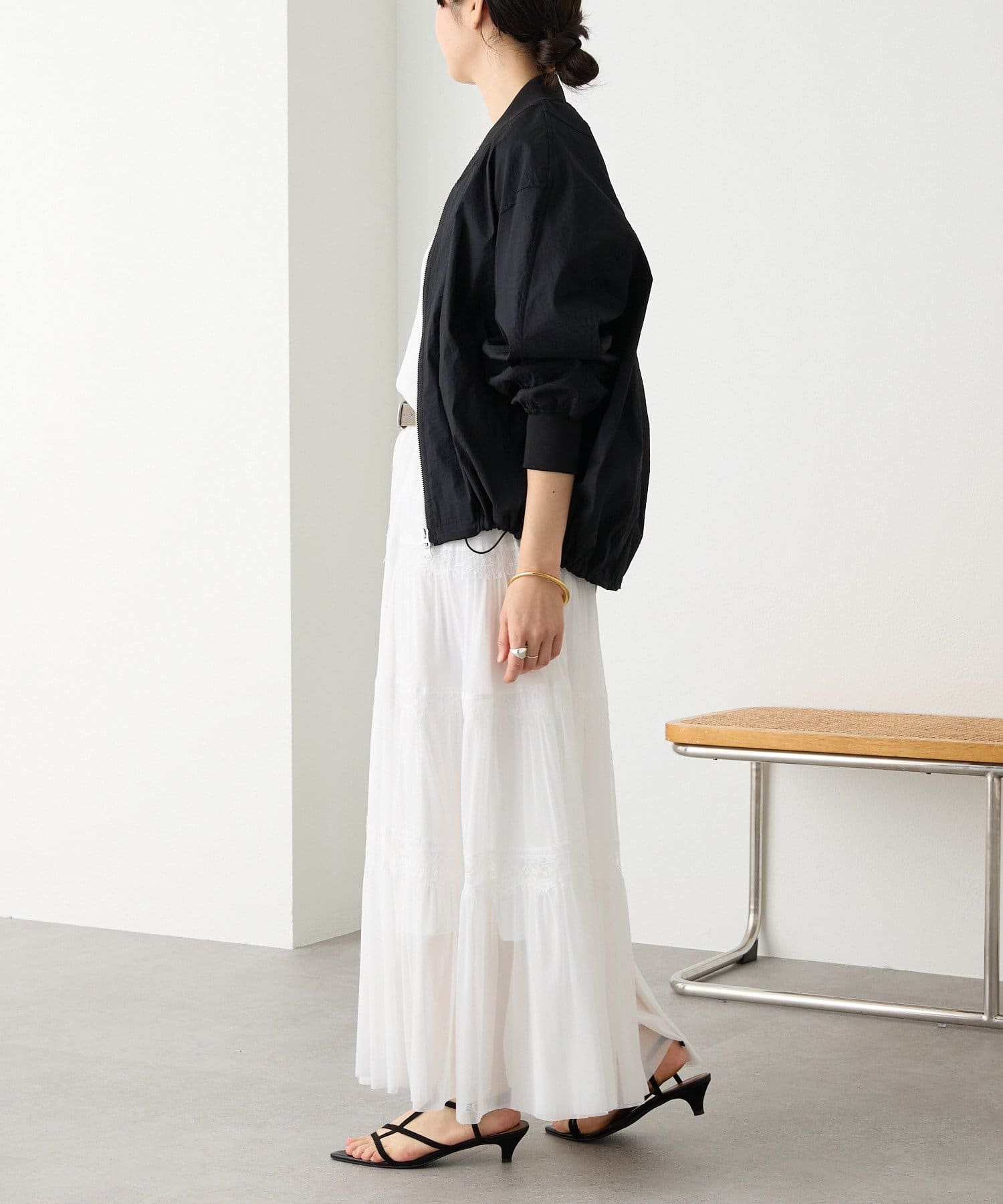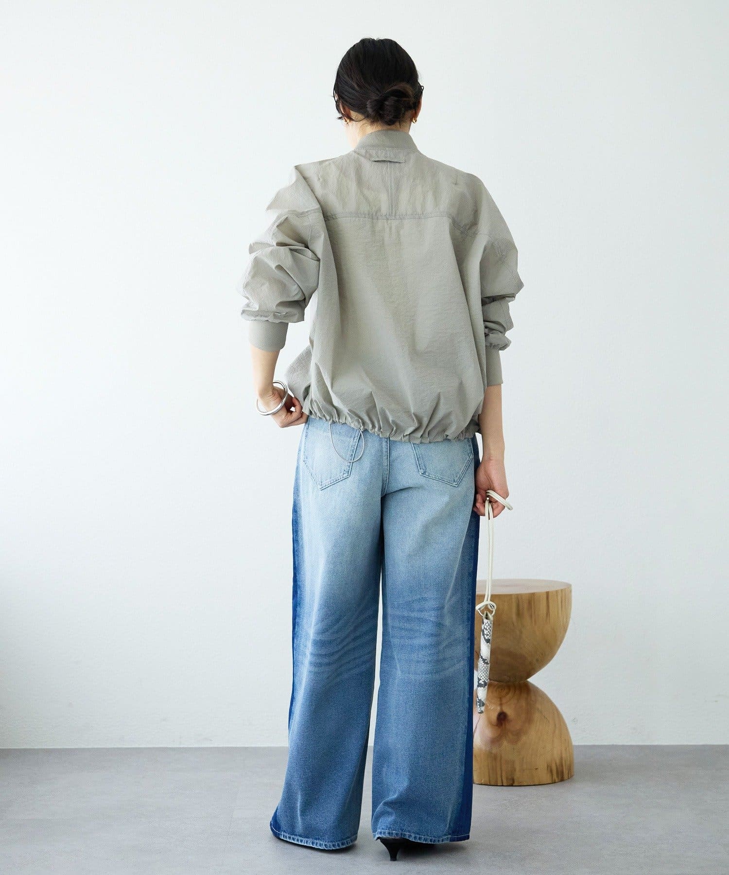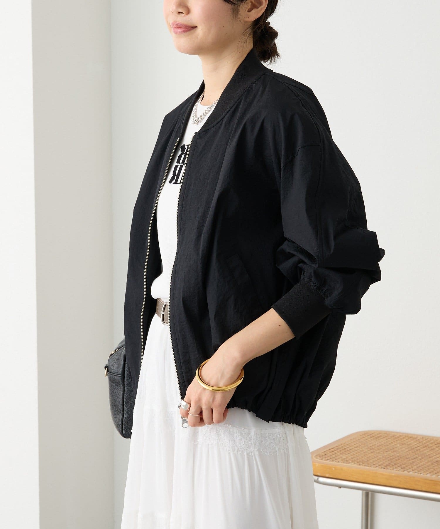 ・袖リブ・衿リブ付きでMA-1のムードを残しつつ、裾はドローコードデザインにアップデート。裾を絞ったバルーンフォルムが目を引く、モードでトレンド感のある一着です。